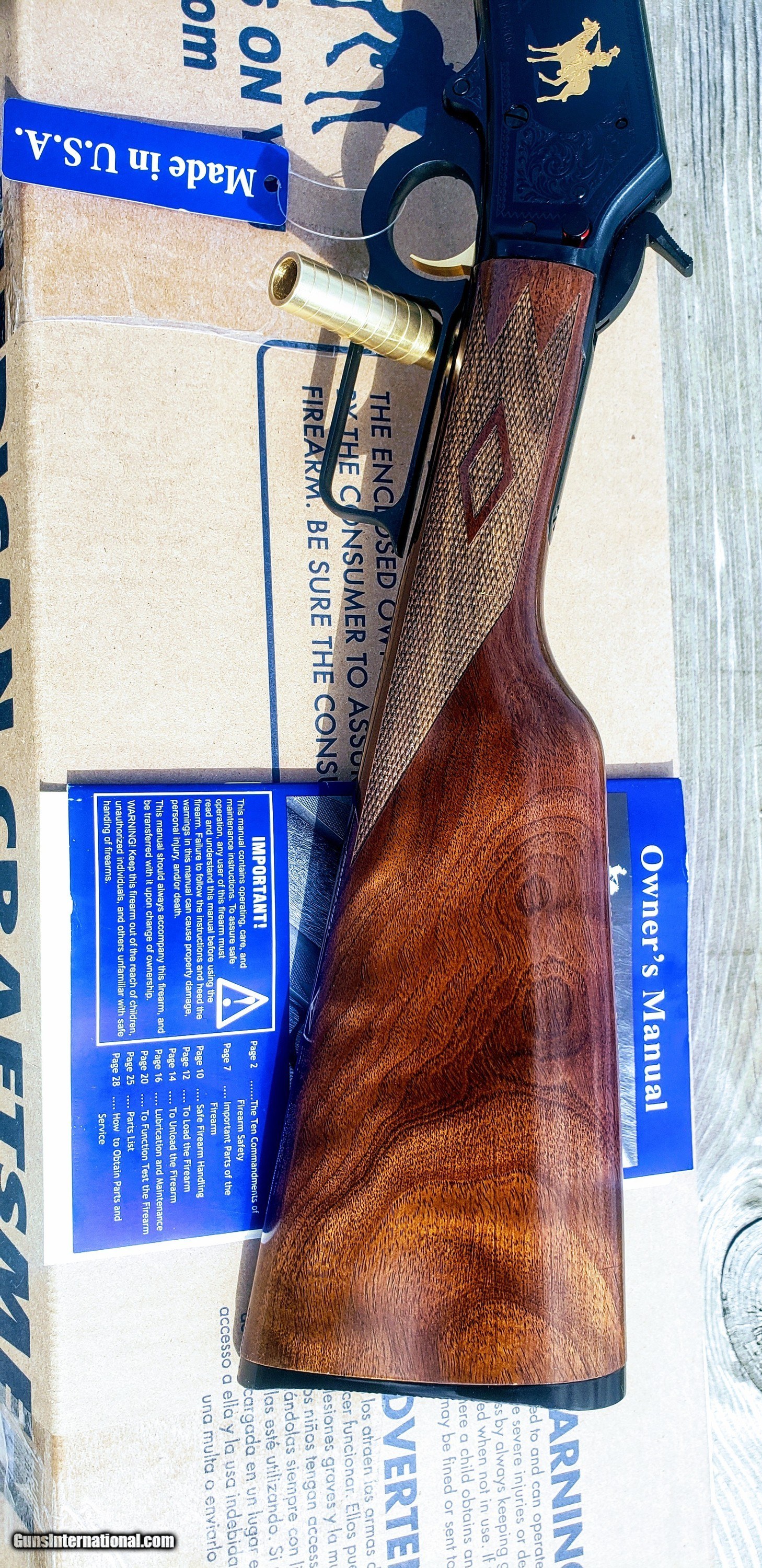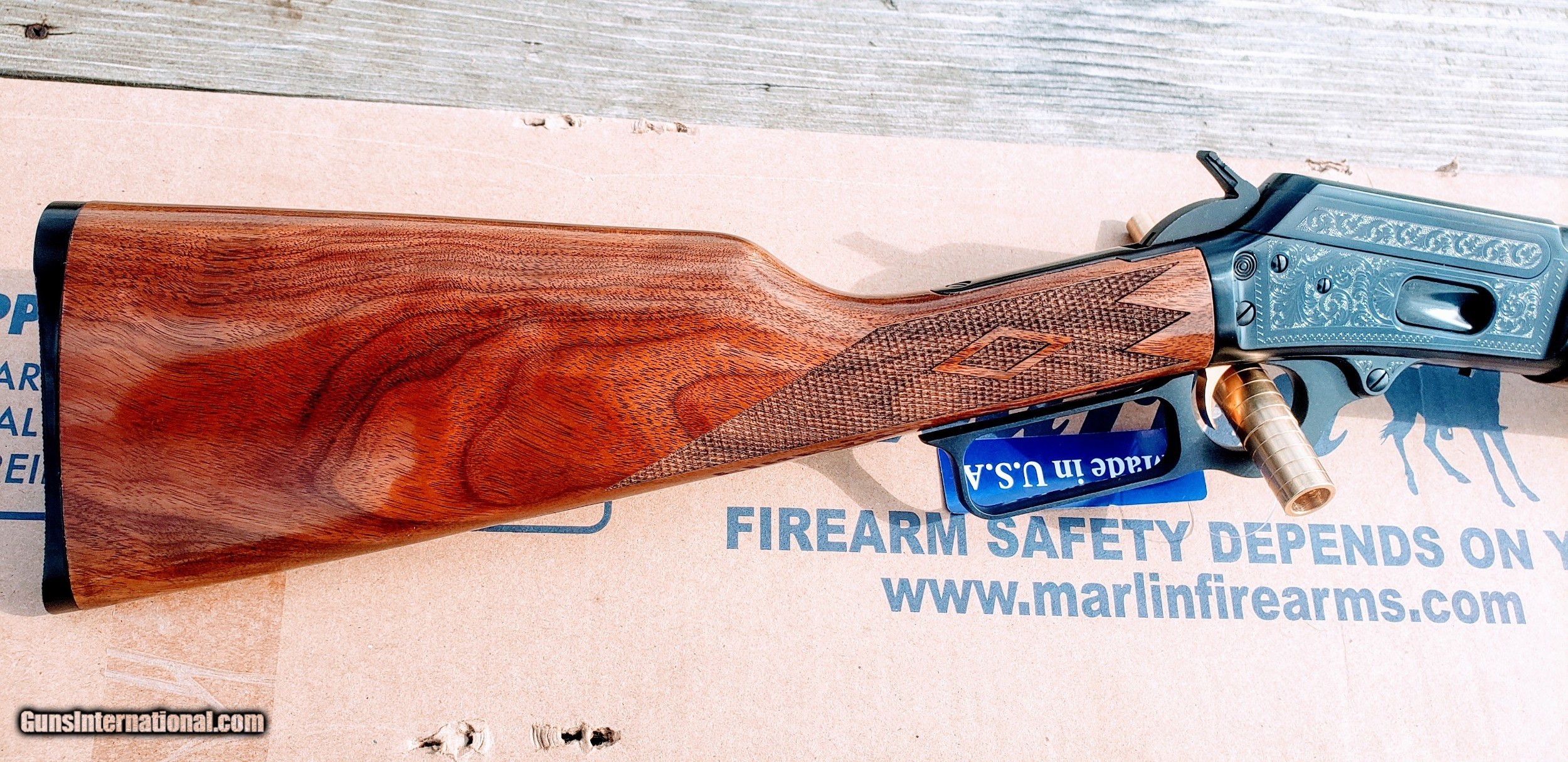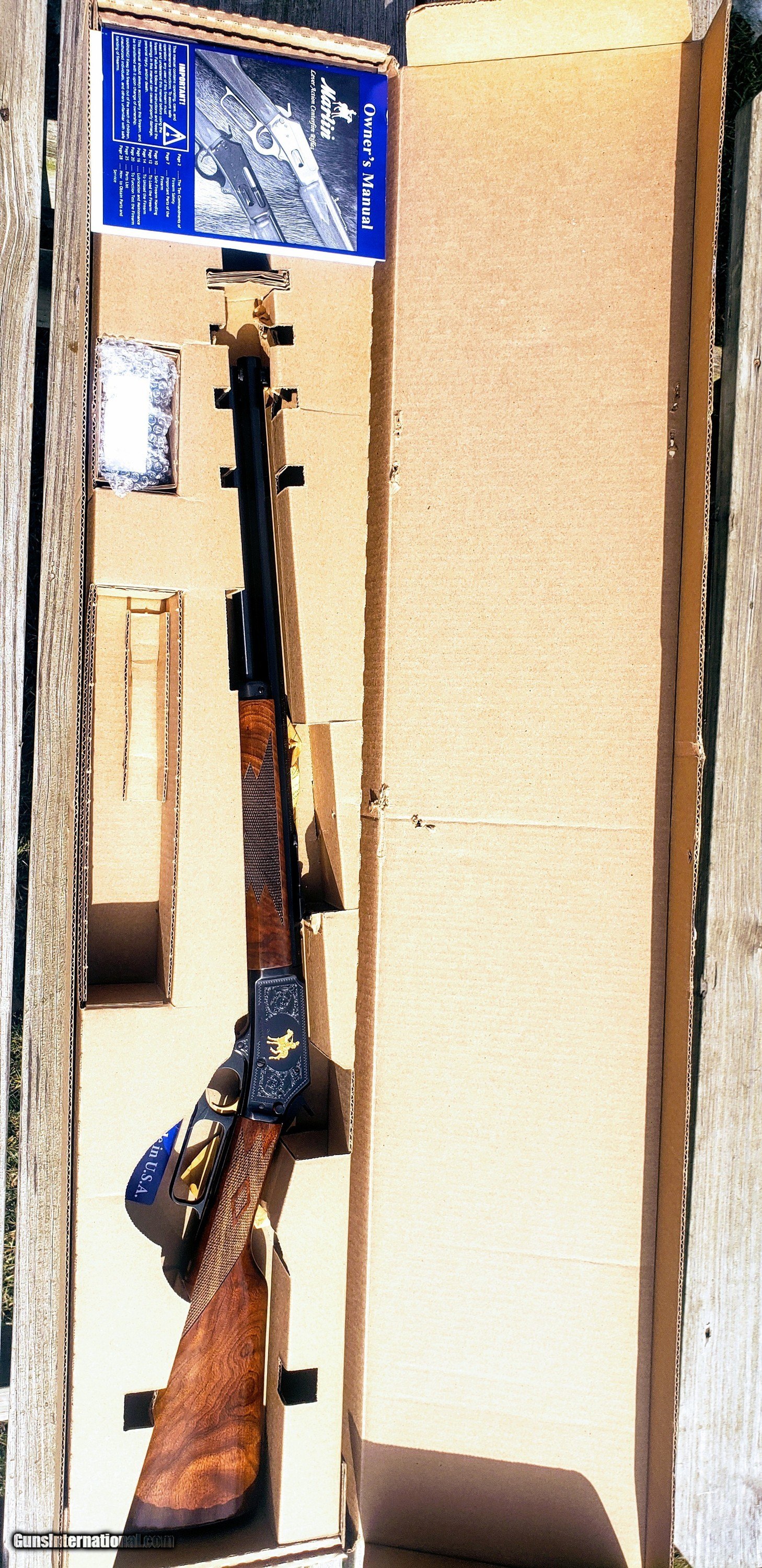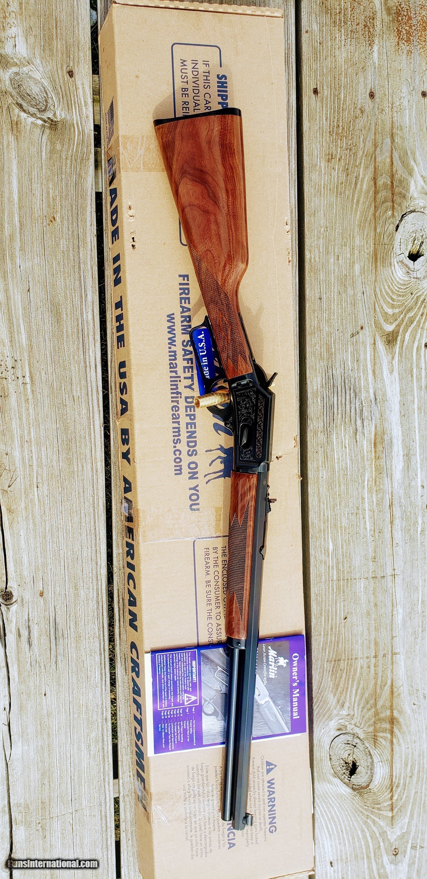 Description: MARLIN FIREARMS CO Walnut Stock Marlin 70403 1894 Walnut Stock Lever 45 Colt (LC) 20\" 10+1 American Black Walnut Stk Blued This Limited Edition 1894 Rifle has both side of receiver engraved with gold in lay and the stock is made of B-Grade American Walnut. SPECIFICATIONS: Mfg Item Num: 70403 Category: RIFLES CENTERFIRE Action :Lever Caliber :45 Colt (LC) Barrel Length :20\" Capacity :10+1 OAL :38.5\" Weight :6.5 lbs Stock Description :American Black Walnut Metal Finish :Blued Twist :1:38\" Barrel Description :Octagon Receiver Material :Carbon Steel Sights :Semi-Buckhorn R, Post Dovetail Cut F Hand :Right Stock Finish Group :Wood Metal Finish Group :Blued/Black SOLD Rifle Caliber: .45 Colt Manufacturer: Marlin Model: 1894CB45 Serial Number: Mr83000g Barrel Length: 20" octagon Condition: New in the box |