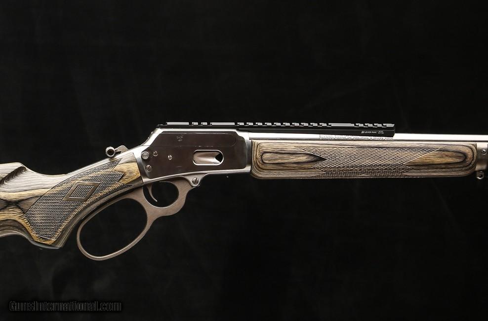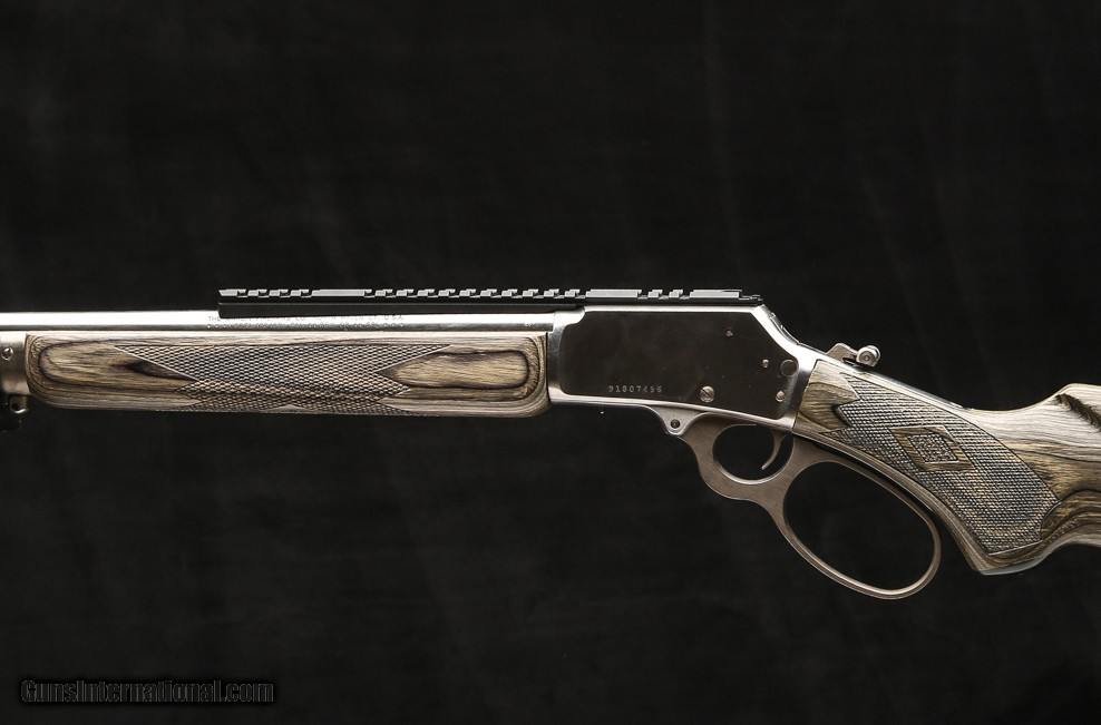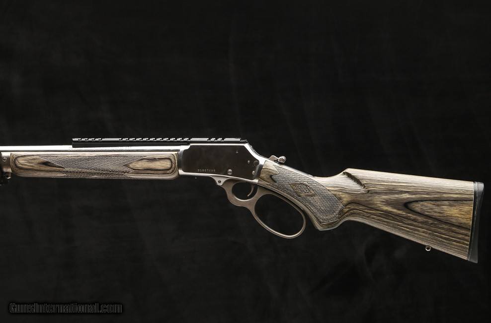 Description: Marlin 1894 SBL 44 Mag lever action features a gray laminated stock and forend with cut checkered panels, polished stainless steel barrel and receiver, a 10” picatinny rail, rifling twist is 1:20 right hand in the hammer forged barrel, 9/8 round tubular magazine, ½" black rubber butt pad, a push-button cross bolt safety, half-cock hammer, an oversized lever loop, a 16” barrel and 13.38” LOP, sling swivel studs, and a offset hammer spur. Price: $1,095.00 Contact Seller |