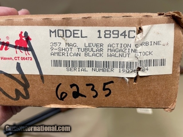 Description: Guns Listing ID: 435837 *NEW IN BOX - CONSIGNMENT* MARLIN RIFLE - NEW MODEL - 1894C CAL - 357 MAG NEW OLD STOCK LEVER ACTION WEAVER SCOPE 18\" BBL ORIGINAL BOX + MANUAL S/N 190754XX JM STAMP SOLD Manufacturer: MARLIN Model: 1894C Caliber Info: 357 MAG Condition: Used - Non-Certified Barrels: 18 BARREL Finish: WOOD |