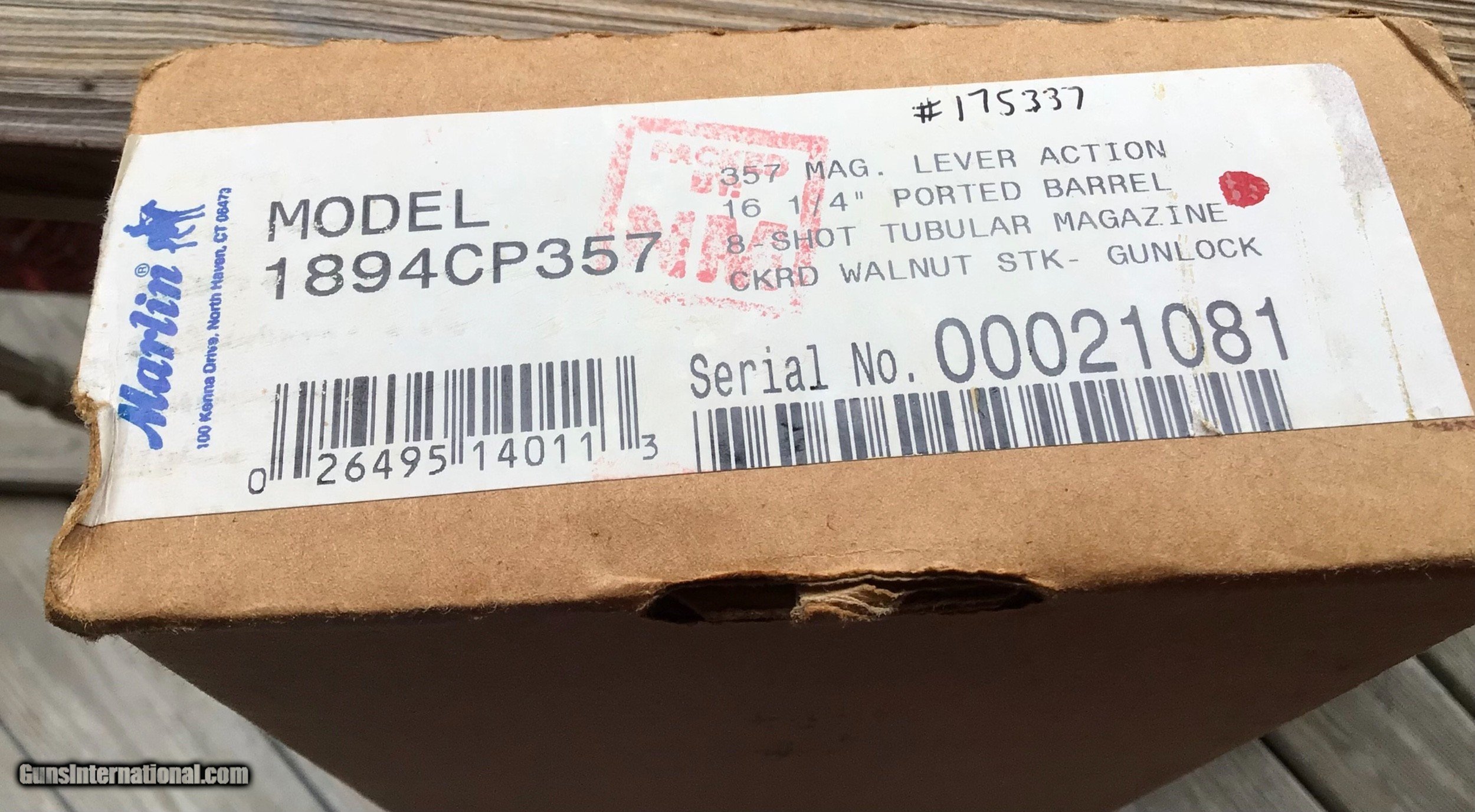 MARLIN 1894CP, 357 MAGNUM, 16 1/4” FACTORY PORTED BARREL, JM STAMPED, VERY HARD TO FIND, NEW UNFIRED 100% COND. IN THE BOX WITH OWNERS MANUAL, ETC.