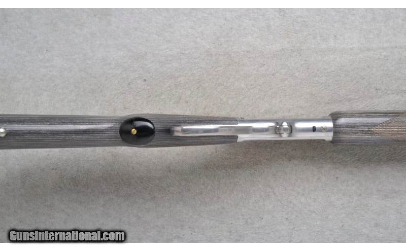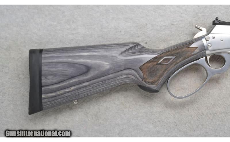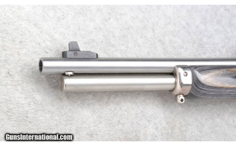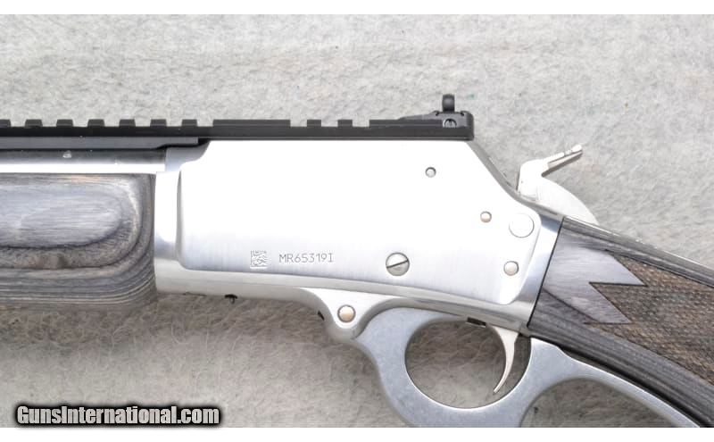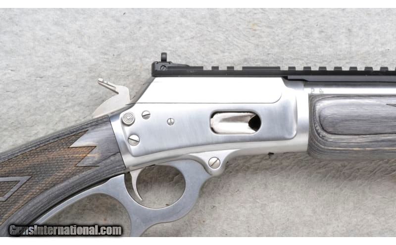 Description: This Marlin Model 1894SBL is a right hand lever action repeating rifle in .44 Magnum/.44 Special Cal. It has a 16.5 inch stainless steel barrel. A raised blade front sight and an aperture rear sight on a sight rail. The butt stock is a diamond checkered grip hardwood laminate pistol grip. The forearm is a diamond checkered grip hardwood laminate. .44 Magnum SOLD Chambers: 8 round tube magazine. Metal Condition: Excellent. A fine scratch on the left side receiver. Wood Condition: Excellent. Bore Condition: Excellent. Barrels: 16.5 inch stainless steel. Stock Dimensions: LOP 13 3/8 inches. Fore End: Diamond checkered grip hardwood laminate. Butt Pad: Black rubber recoil pad. Weight: 6 lb. 8 oz. Sights: Raised blade front with white. Aperture rear on a sight rail. Item Location: Richfield, WI |