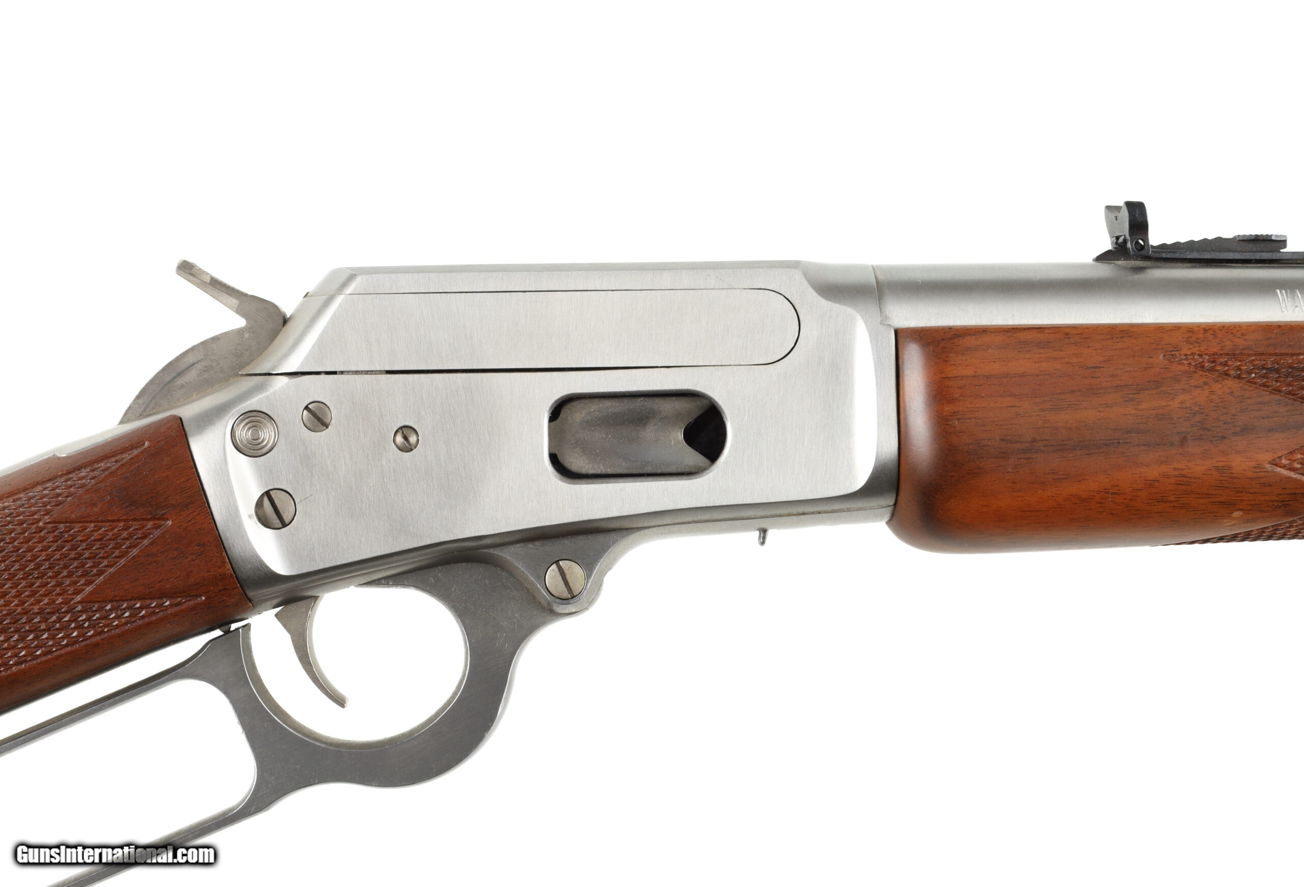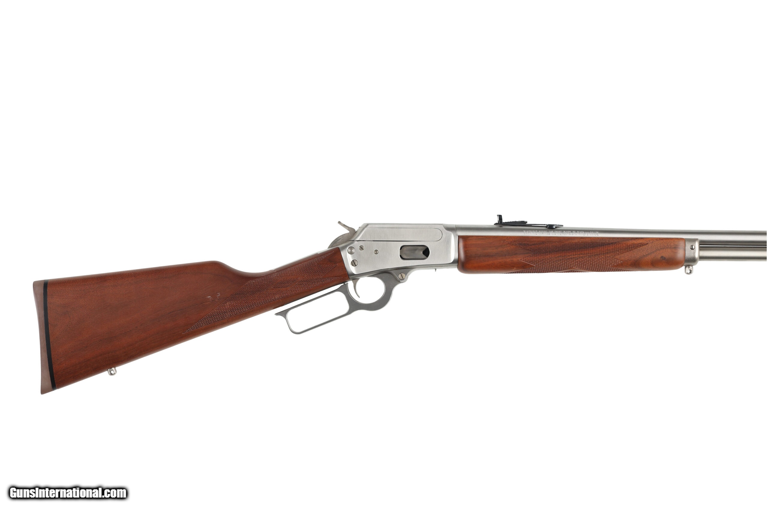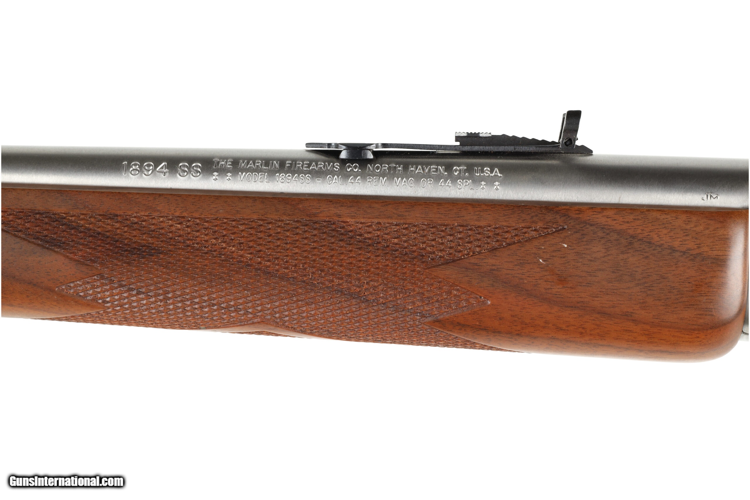 Description: This Marlin Model 1894SS is in very good overall condition, with almost no wear on the metal parts and only moderate handling marks on the stocks. Manufactured in: USA Hand: Right Hand Action Finish: Stainless Steel Metal Finish: Original Barrel Length: 20 Inches Barrel Condition: Very Good Stock Finish: Original Stock Condition: Good Type of Butt: Factory Pad Grip: Straight Grip Forend: Checkered Extra Barrels: No. SOLD Manufacturer: Marlin Model: 1894 Caliber Info: .44 Remington Magnum Condition: Preowned Metal Condition: Very Good Action: Lever Action Triggers: Single Fore End: Checkered LOP: 13 5/8 Finish: Original Weight: 6.3 lbs Extras: No. Case: NONE |
