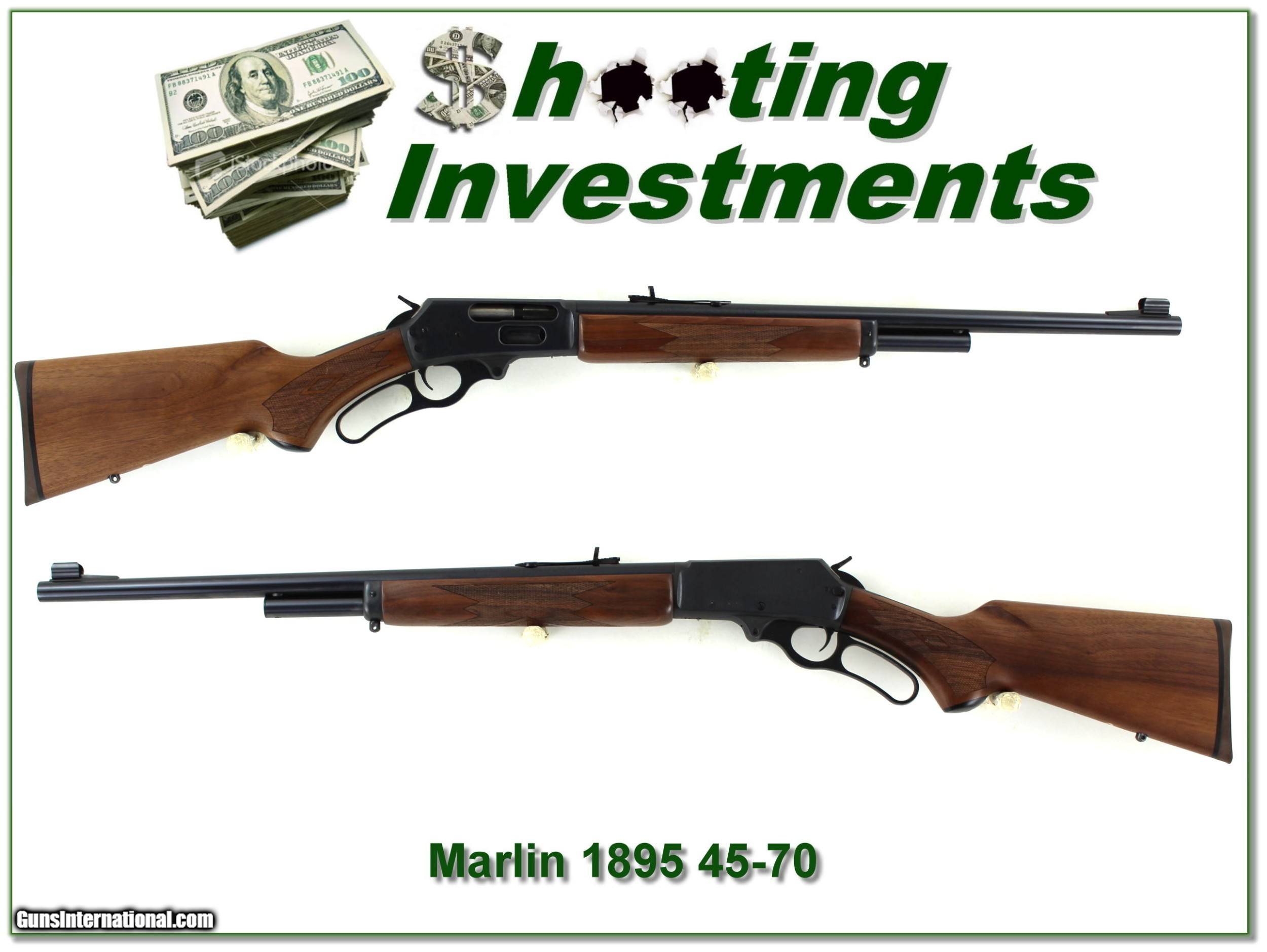 Description: Big game hunters, this is a near new condition Marlin 1895 in 45-70. Both metal and wood look new with no marks I find. From the chamber I’m sure only a few rounds ever fired. This on has a 22in barrel and comes as seen with open sights and front hood. You will look a while to find a nicer one. Shipping and insurance is $49. Please email me with any questions or larger pictures. (Consign your quality firearms with Shooting Investments for only 12%! Let me know if you have any you would like to sell!) 22-0134 Payment: Payment is by Money Order, Cashiers Check or Personal Check. I can now also accept Credit Cards (MasterCard, Visa, Discover & American Express) with a 3% convenience fee. Shipping: The shipping charge will be listed in each description. It is $49 for most long guns. Some heavy guns, over 48in boxes or those insured for over $2000 will be higher. Shipments to Alaska and Hawaii are higher because air shipment is required. Most firearms are shipped on Tuesday and Thursday and usually in 5 days of receipt of payment. We package all shipments carefully and insure them. Optics are shipped Priority Mail and most other non-firearm shipments are shipped First Class. Returns: Our return policy is simple. If for any reason you are not pleased with your purchase, you may return your item for a full refund of purchase price. Ammunition cannot be returned. It is important to us that you are happy. Guns cannot be fired or dissembled before returning them and they must be returned in the same condition as received. Notification of a return must occur with-in 3 days of receipt at your dealer. Shipping, convenience and dealer fees are not refundable and are the responsibility of the buyer. Lay-a-way: If needed, we offer a 60 day lay-a-way option on most firearms. It is 1/3 now, 1/3 in 30 days and 1/3 in 60 days. Lay-a-way firearm sales are final and if not completed the first payment cannot be returned. Consigning your firearms with Shooting Investments: We will help you get top dollar for your firearms. While most local guns shops charge 20% or more, our fee is only 12% with a minimum of $75. At your local gun shop it might take months to sell. Selling on-line provides instant access to thousands of interested buyers. You won’t find any other on-line dealer willing to sell your firearms for only 12% or listing every gun on 3 separate s. Selling through an House typically costs the seller 15% and the buyer an addition 15% (so 30%) and you have to wait several months to sell and longer to receive funds. If properly priced, we will sell your firearms in a few weeks. Send us an email or give us a call and we’ll explain how easy it is for you to get top dollar. Trading: Trading for use is really just buying your gun to re-sell. If you have a gun you want to trade, please email a picture and we will let you know what we can give or it. You will always get more if we sell it for you on consignment. Help for California Buyers: We are happy to ship to California. It is the buyer’s responsibility to make sure any item you buy is legal in your state. We are also happy to help with your purchase of a firearm from someone other than us. If you see a gun you would like to buy but the seller can’t or won’t ship to California they can ship to use and we’ll then ship it to your California dealer. The cost for this service is only $30 + shipping. Let us know if we can help! SOLD |