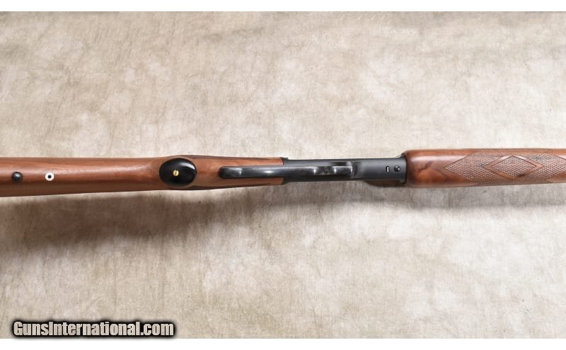 Description: Great rifle for stand and still hunting game up to deer and bear. It features .45-70 chambering, half magazine, easy to see open sights, and it doesn't appear to have been fired much if at all. .45-70 Government SOLD Chambers: 4 rounds Metal Condition: Excellent. Wood Condition: Excellent. Bore Condition: Excellent. Barrels: 22 inches Triggers: Factory trigger. Stock Dimensions: LOP: 13-5/8 inches Fore End: Well-matched checkered walnut. Butt Pad: Rubber pad. Weight: 7 lb - 6 oz. Sights: "Post and notch open sights, drilled and tapped for your choice of scope. Item Location: Rogers |