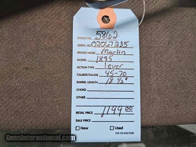 Description: Marlin Model 1895 45-70. Graded at 95%. Buyer pays shipping and insurance. Money order or cashiers check only. SOLD Rifle Caliber: .45-70 Government Manufacturer: Marlin Model: 1895 Serial Number: 02067*** Condition: 95% Action: Lever |