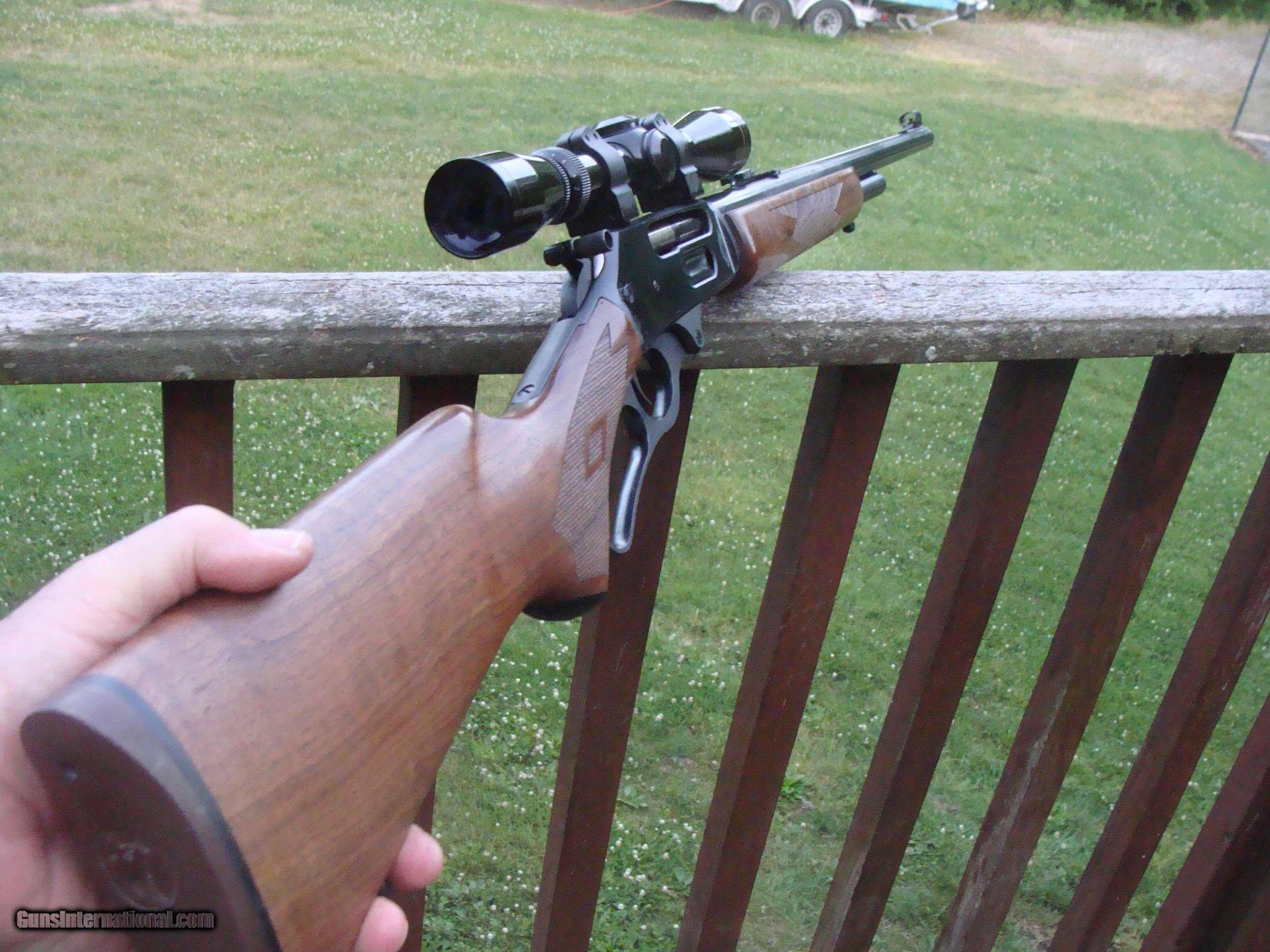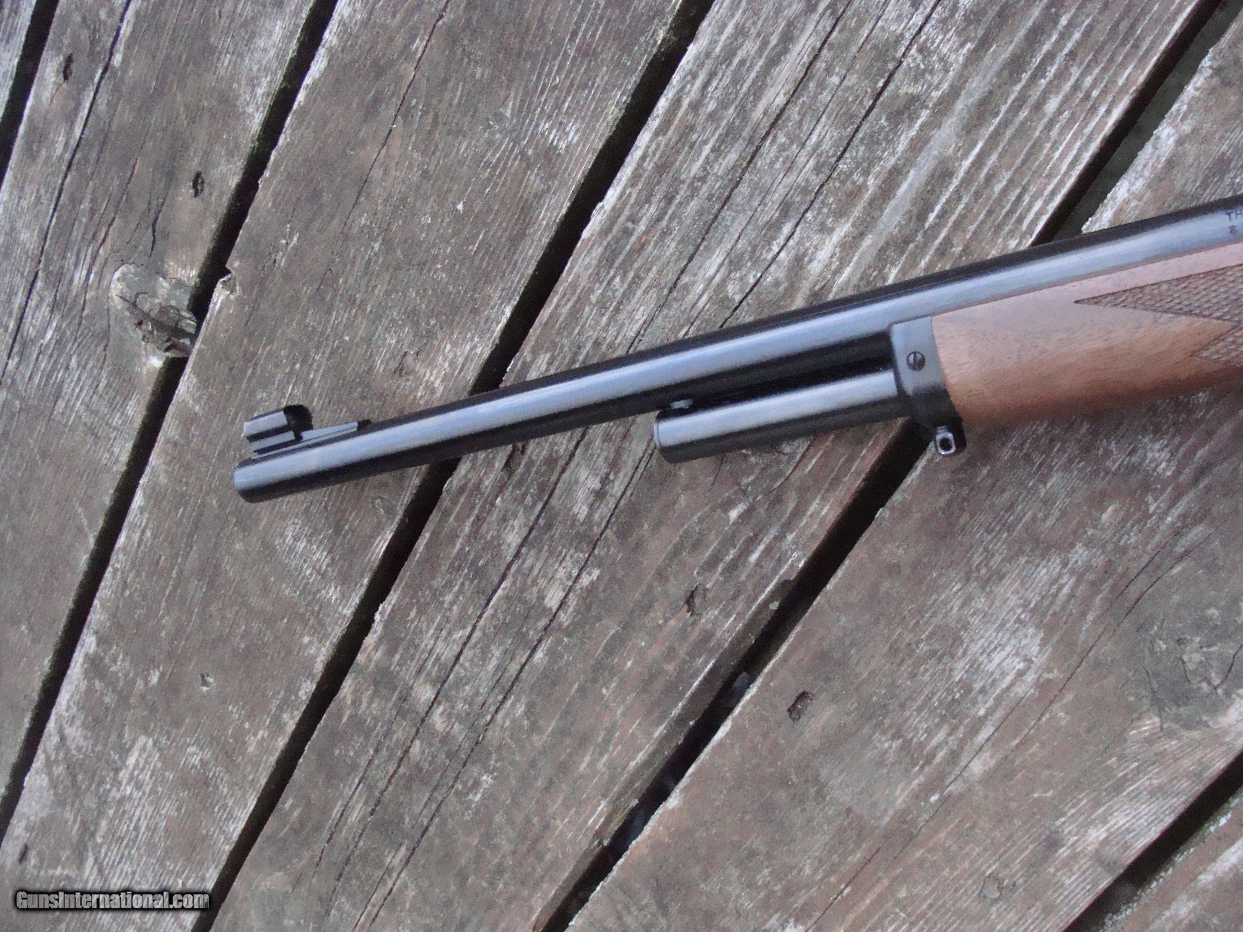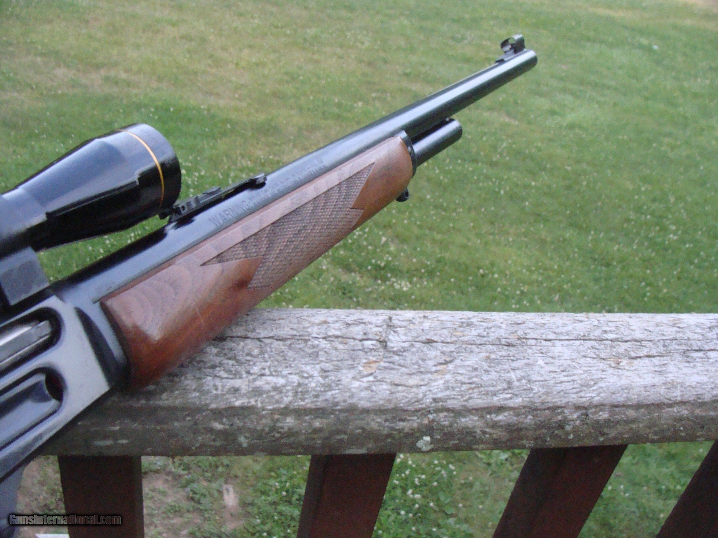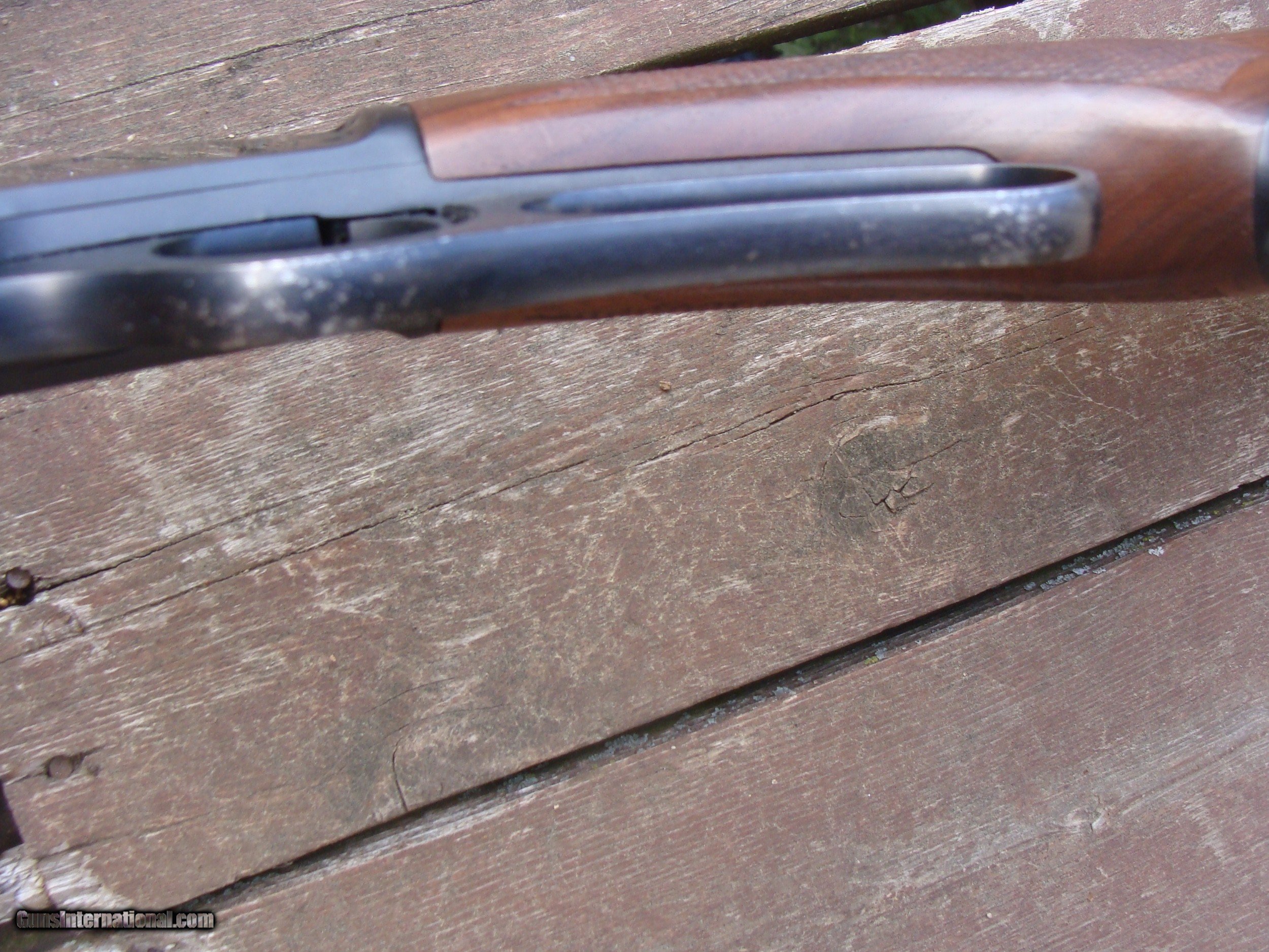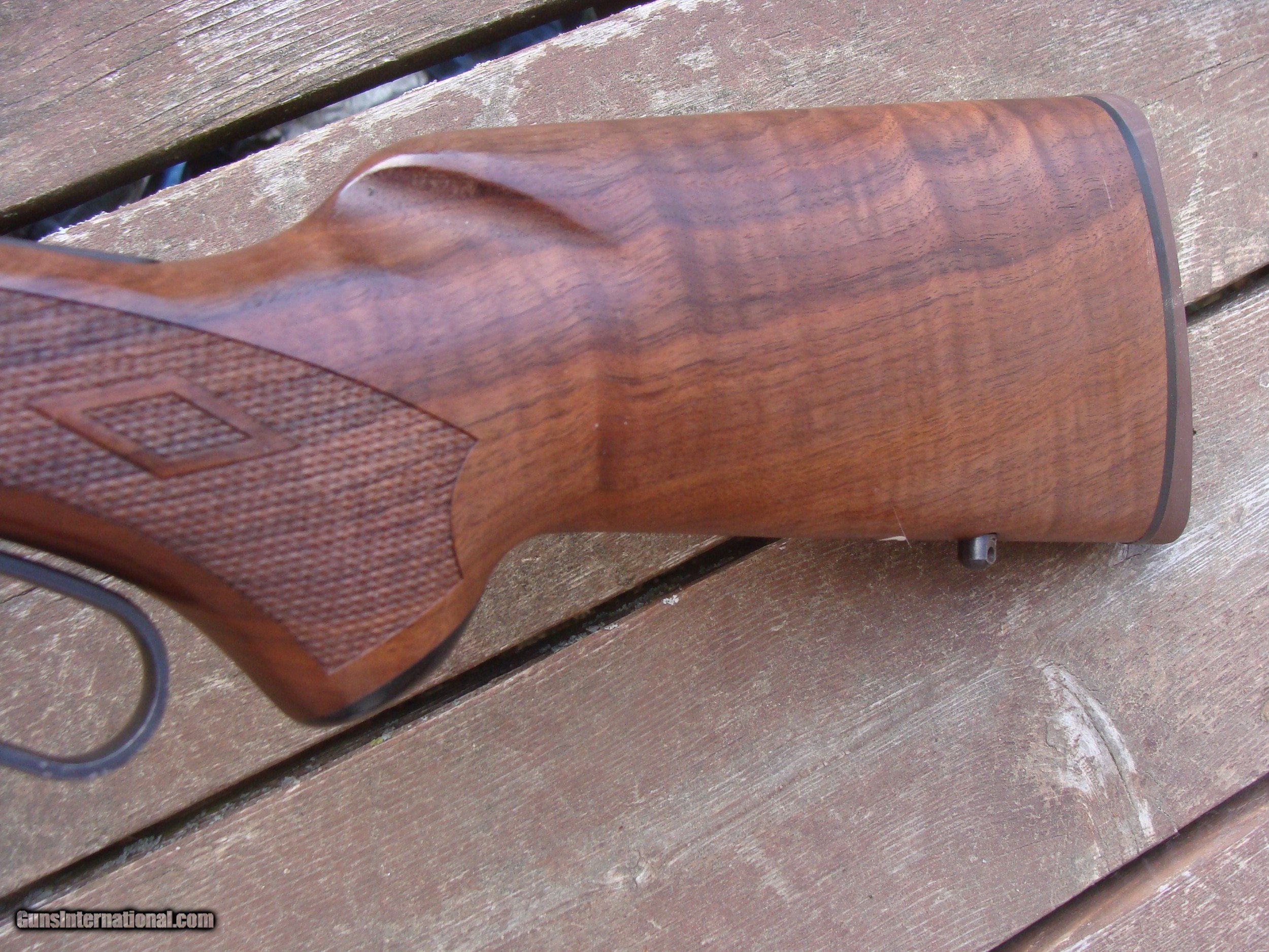 Description: This big banger is in excellent cond. and save for a few light marks mostly on the forend rear of the checkering panel and some loss of blue on underside of lever (should easily be touched up with drop or two of cold blue) is not too far from new. With modern ammo or hand loaded this is capable of handling any game on this continent or any others. Scope (Leupold Vari X 11c gloss duplex) is not included however may be purchased for an additonal 159.00 unless scope has been sold prior to the sale of the rifle. Shipping is $ 49.00 to any location in the lower 48 States WE HAVE WELL OVER 1500 SALES ON ALL SITES WITH AN A+ RATING ON ALL (WE ALSO KEEP AN INVENTORY OF OLDER PERIOD CORRECT SCOPES; CALL WITH NEEDS) WE ARE HAPPY TO TAKE CONSIGNMENT GUNS AND COLLECTIONS OR WILL BUY YOURS OUTRIGHT. WE SOMETIMES ARE EMPLOYED FOR ESTATE PURPOSES AND VALUATIONS. CT RESIDENTS MUST CONTACT US TO UNDERSTAND OUR IN STATE TRANSFER POLICIES. WE CAN TAKE A CREDIT CARD HOWEVER THERE IS A 3% ADD ON BASED ON THE TOTAL FOR USE OF A CARD. IT IS ALWAYS THE BUYERS RESPONSIBILITY TO GET US A COPY OF YOUR RECEIVING FFL'S LIC AND WE REQUIRE A COPY OF YOUR PHOTO ID BEFORE THE GUN SHIPS YOU MUST CALL YOUR FFL.WE DO NOT CALL FOR YOU. LAYAWAY PURCHASES NOT COMPLETED OR ANY RETURNED ITEM UNLESS NOT AS DESCRIBED ARE SUBJECT TO A 10% RELISTING/RESTOCKING FEE AND MUST BE RETURNED WITH NO MARKS OR SCRATCHES, SENT BACK INSURED, PRIORITY SIGNATURE REQUIRED WE DO NOT OFFER AN INSPECTION PERIOD PER SE HOWEVER GUNS MAY BE RETURNED IF NOT EXACTLY AS DESCRIBED UNDER NO CIRCUMSTANCE MAY ANY GUN TO BE RETURNED HAVE BEEN REMOVED AT ANY TIME FROM RECEIVING FFL DEALERS PREMISIS AND RETURNS MUST 1ST BE APPROVED BY US IN ADVANCE, IN WRITING SOLD |