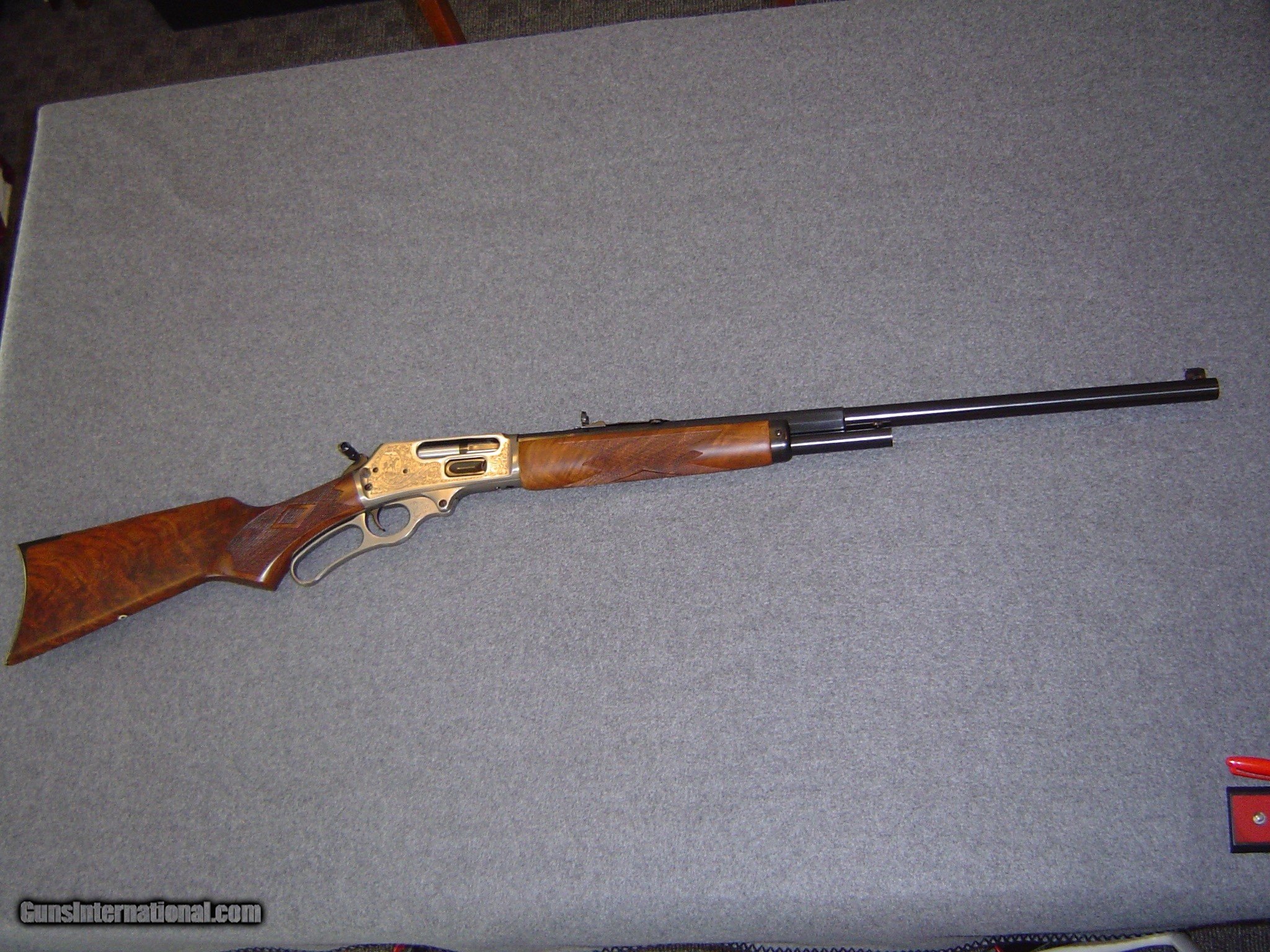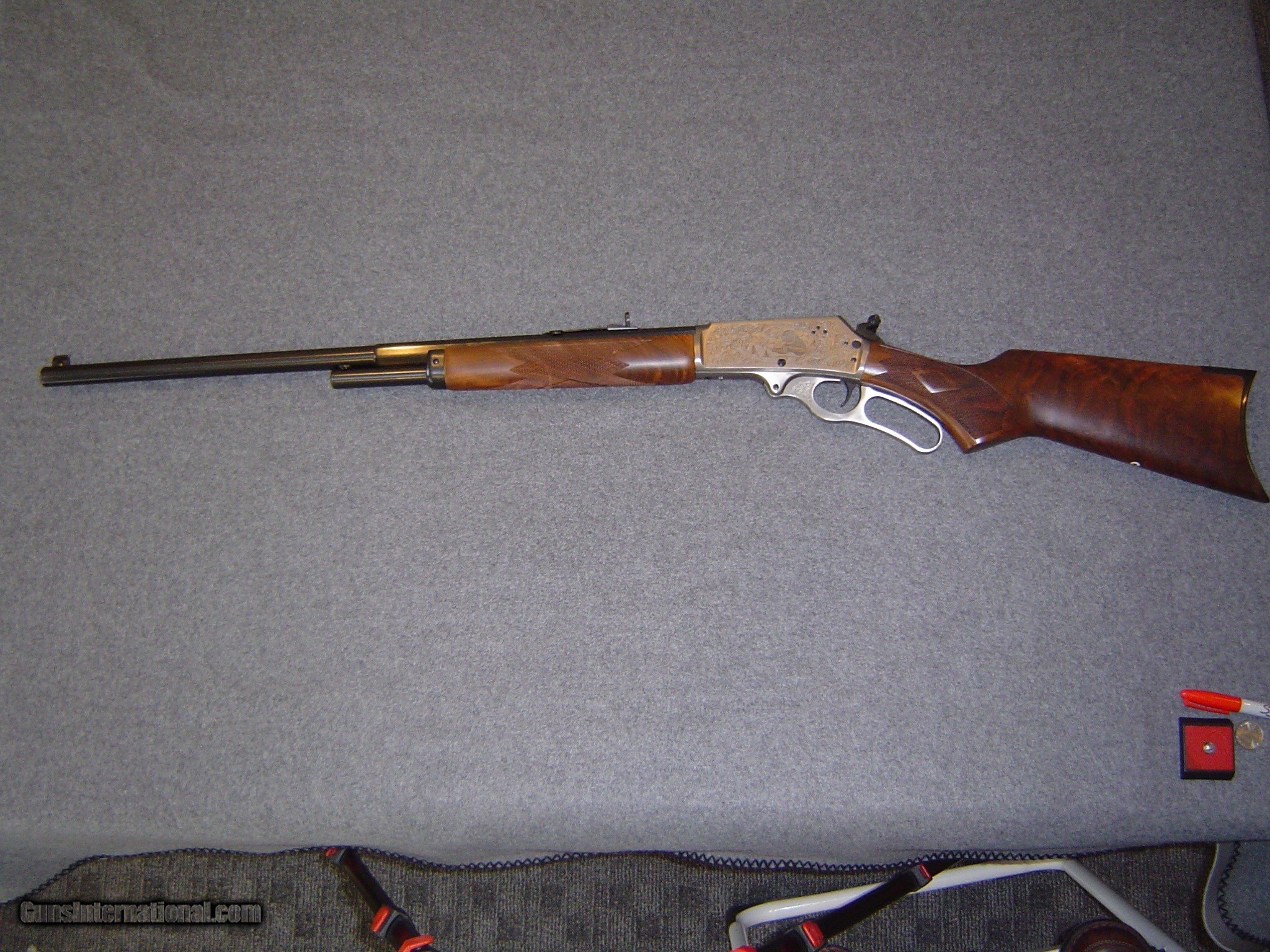 Description: Collectible: Marlin 1895 CLTD 45-70 Gov’t. JM stamped barrel. Number 1500 of the 1895 – 1995 series. Exhibition grade oil finished wood. All original in as new condition. Appears to be unfired and comes with the original owner’s manual. Payment: Payment to be made by Cashiers Check or Personal Check. Please Note: The firearm cannot be shipped until the check posts and clears the bank. Please call or email me if you have questions or need more information. Thank you for taking the time to view this add. Shipping Process: The normal shipping charge is $45 for most firearms. Firearms insured for over $1,500 are subject to an additional fee to pay for the extra insurance coverage. Shipments to Alaska and Hawaii require air shipment and will be quoted at the time of sale. Items will be packed carefully and insured at the time of shipment. Tracking information will be supplied via email after the shipment has occurred. No shipments will be made outside the United States. Return Policy: If for some reason you are not satisfied with your purchase, you may return your item for a full refund of the purchase price. Returned firearms must be received in the same condition they were in when shipped to you. Firearms cannot be fired, modified, or dissembled before returning them. We must be notified of a return within 3 days of receipt at your FFL dealer. Please Note: The cost of return shipping, insurance, and transfer fees are the responsibility of the buyer. SOLD Rifle Caliber: .45-70 Government Manufacturer: Marlin Model: 1895CLTD Serial Number: 1895-1500 Condition: Excellent Metal Condition: Excellent Wood Condition: Excellent Bore Condition: Excellent Barrel Type: Hex / Round - JM Stamped Action: Lever Stock: Wood Fore End: Wood Butt Pad: Steel Finish: Blue / Silver Engraved Sights: Buckhorn / White Diamond Manufacture Date: 1995 Engraving: Century Limited Edition Engraving Extras: Owner's Manual & Hammer Extension Item Location: SC |