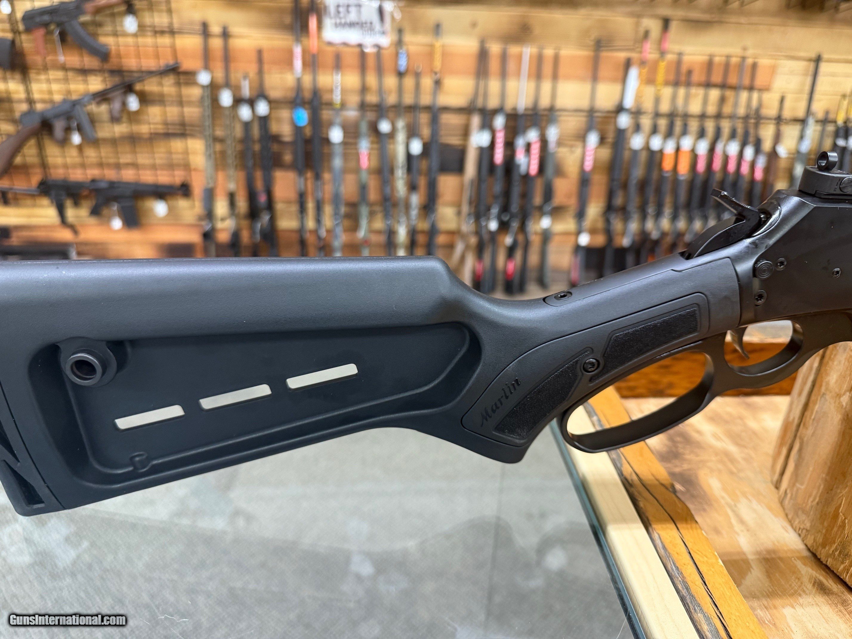 Description: Receiver, lever and trigger guard plate are CNC machined from alloy steel. Barrel is cold hammer-forged which results in ultra-precise rifling that provides exceptional accuracy and longevity. Threaded barrel, with factory-installed match polished radial muzzle break has a 11/16'' - 24 pattern to accommodate other barrel accessories. Thread protector also included. Major components feature enhanced durability due to the Graphite Black Cerakote finish. The bolt and lever feature a nitride finish for superior wear protection. Five-round, tubular magazine with a loading gate located on the receiver. Nylon-reinforced polymer stock with M-LOK attachment slots for mounting of accessories. Cheek riser included for an optimum sight picture when using an optic. Generous recoil pad that effectively absorbs recoil. Picatinny rail provides a stable mounting surface for scope rings and a variety of optics. Fiber optic front sight with a tritium ring for improved visibility in low light conditions. Anodized aluminum handguard features M-LOK attachment slots for mounting of accessories. Flush cup sockets for Quick Detach (QD) sling swivels located on the buttstock and the muzzle end of the handguard allows for comfortable carry with a two-point sling. Mid-sized finger lever has a unique flare on the bottom for more comfortable cycling. Reliably feeds a wide range of .45-70 Govt factory ammunition and bullet types. Positive, push-button, cross-bolt manual safety and traditional half-cock hammer Rifle Caliber: .45-70 Government Manufacturer: Marlin Model: 1895 Barrel Length: 16.17 Condition: NEW Stock: 736676709014 Price: $1,289.99 Contact Seller |