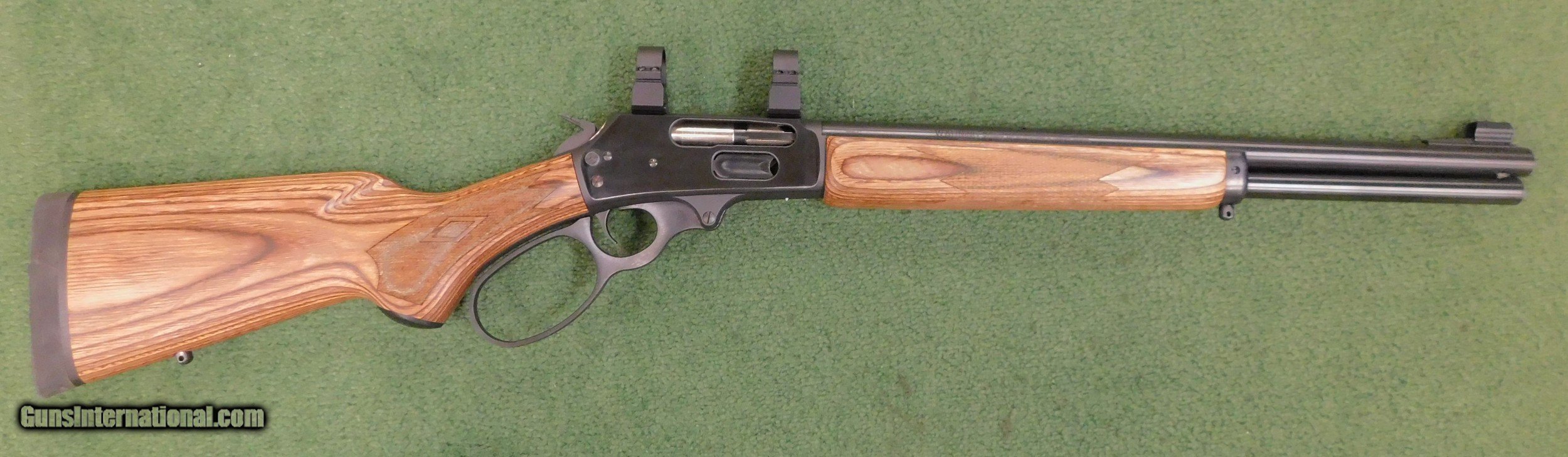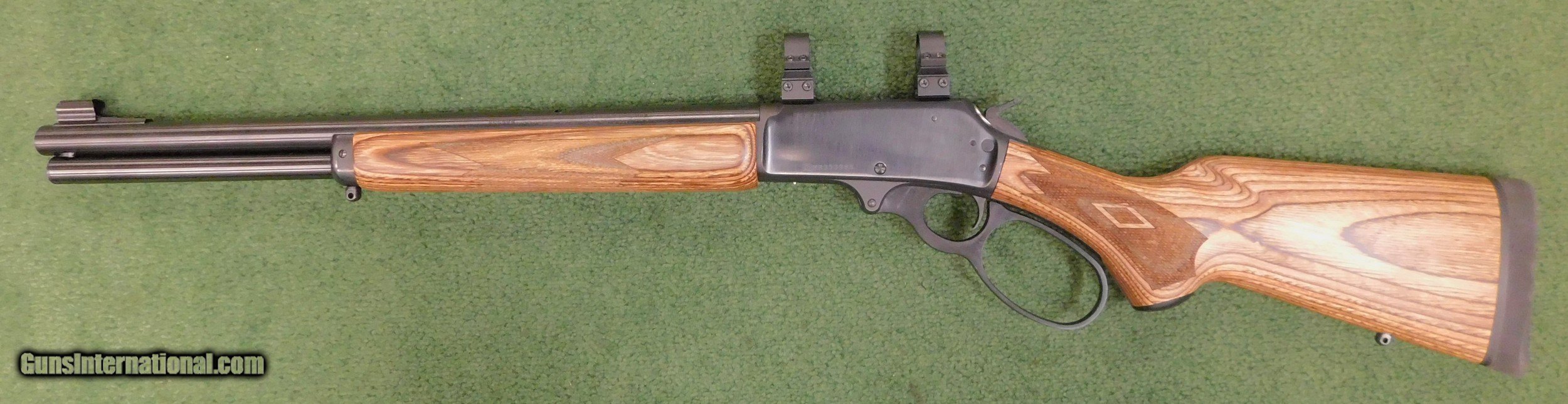 Description: Marlin model 1895 GBL, 45-70, 18 1/2 inch, large loop, laminated stock, scope mounts, no rear sight, 99%.no box. SOLD |