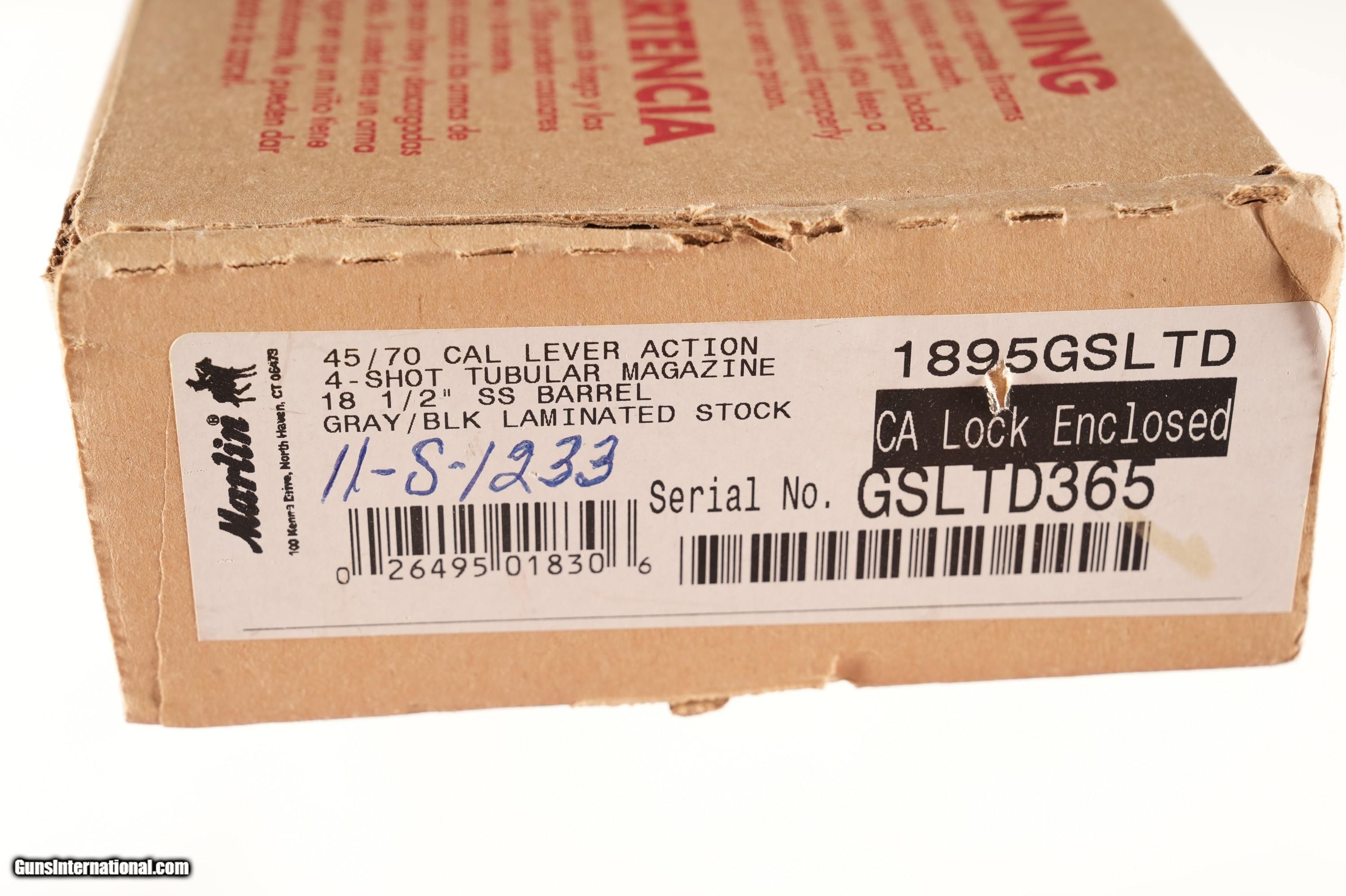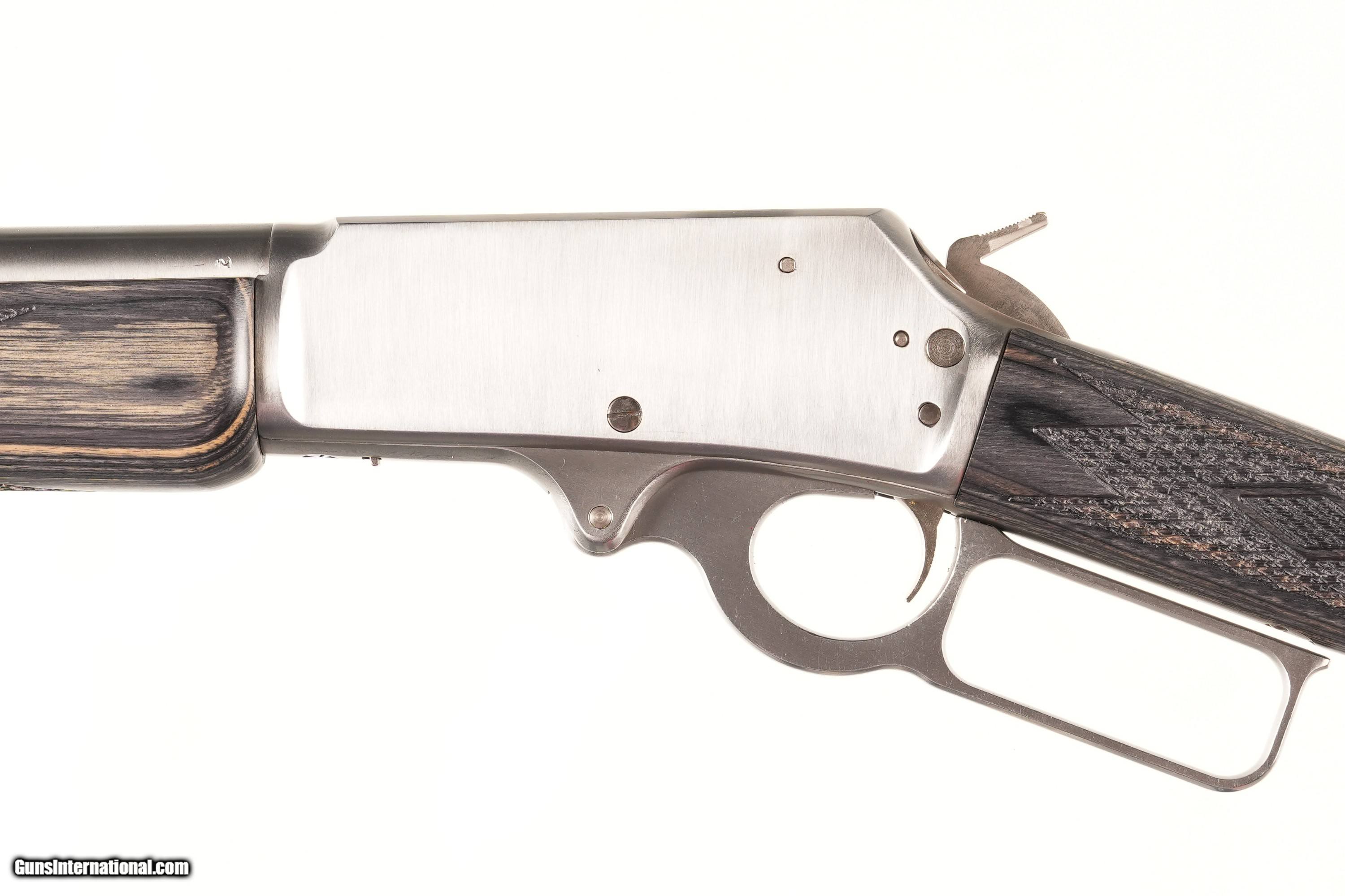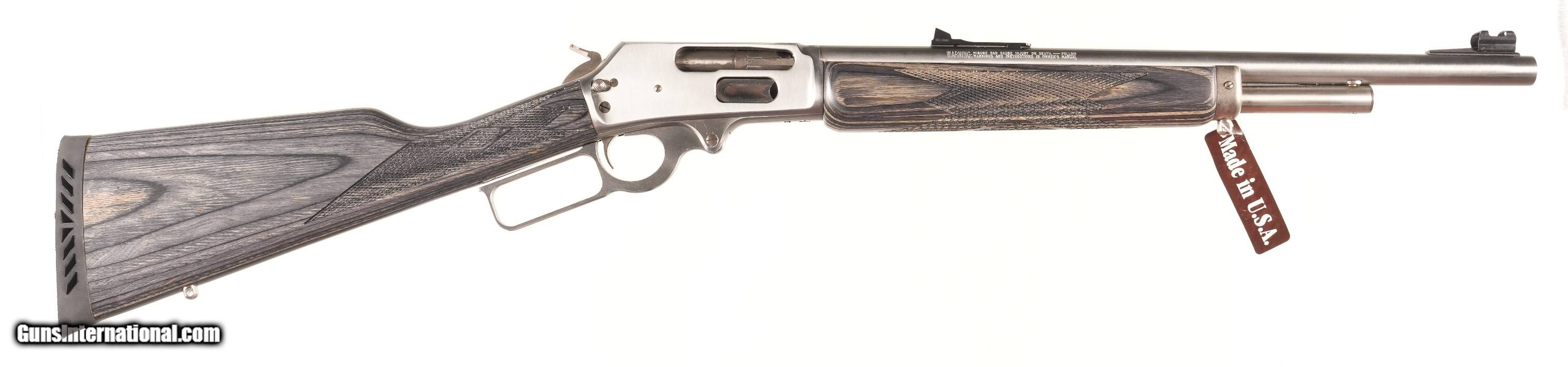 Description: Marlin Limited edition 1 of 500 produced for Davidson's Dist, Model 1895 GS with Stainless steel construction, 18 1/2" Bbl. Grey / Green laminated stocks and fiber optic sights. Comes in original numbers matching box with all paperwork and appears to be without use or handling. Mechanically excellent. • Free Shipping, No Credit Card Fees. • Lay-a-way available for this firearm. • 1/3 Down, a 1/3 in 30 Days, 1/3 in 60 Days. SOLD Manufacturer: Marlin Model: 1895 Serial Number: GSLTD365 Barrel Length: 18 1/2 |