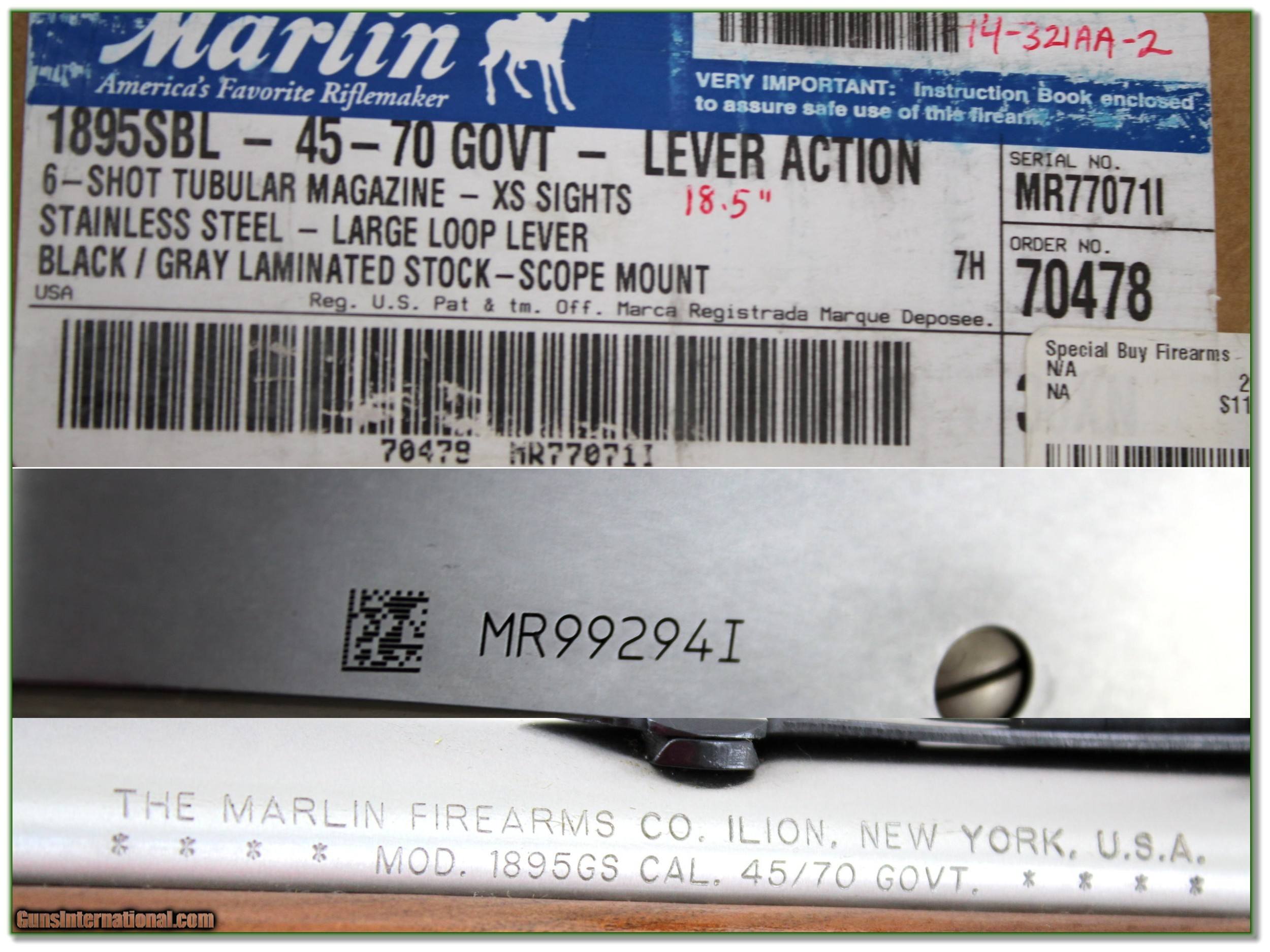 Marlin 1895 GS Stainless Walnut 45-70 near new