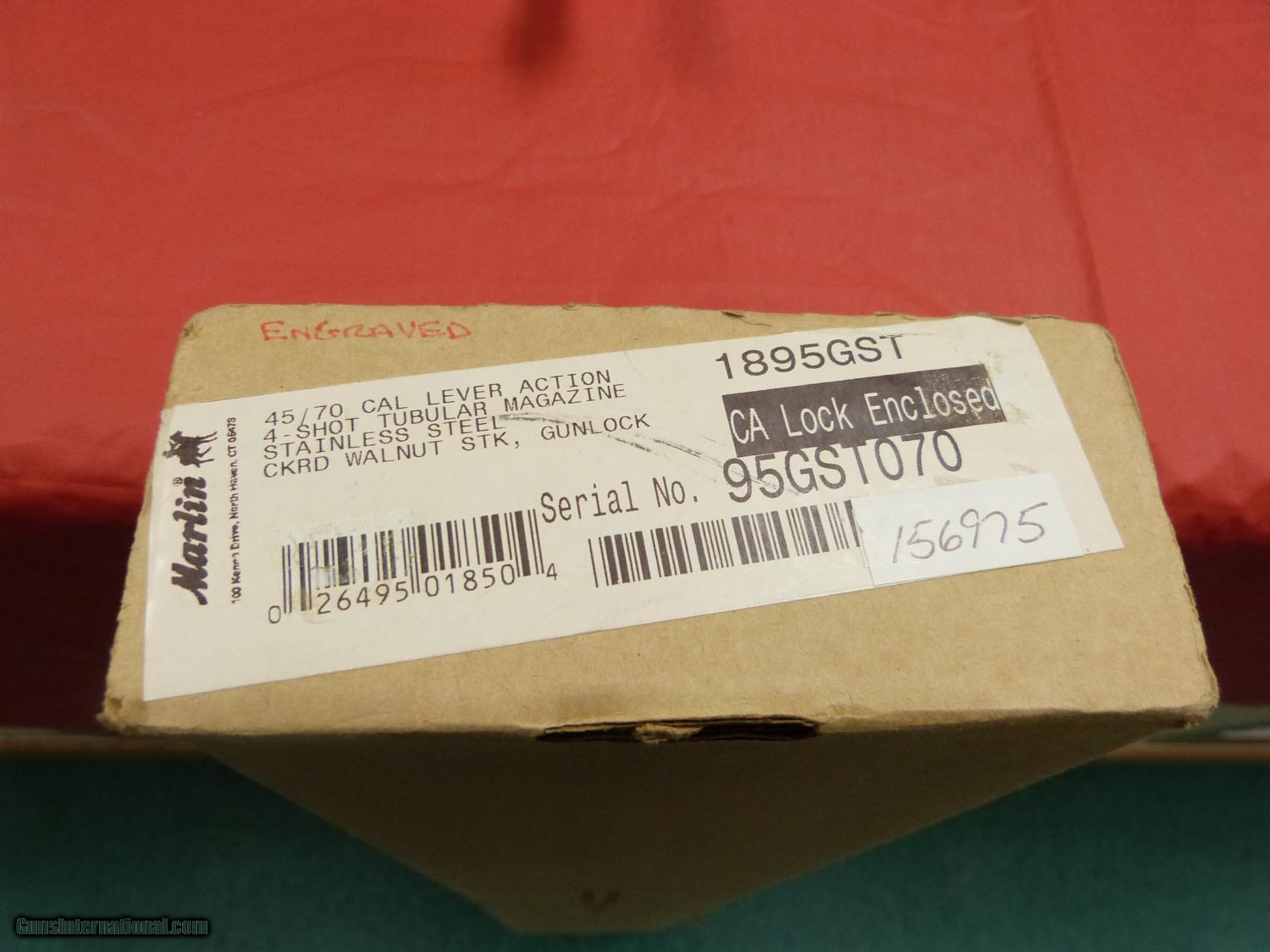 Description: Marlin's model 1895 GST Engraved, .45-70, Deeply engraved receiver and nice walnut stock. NIB $1195.00 (CC+3%) Shipping $25.00 SOLD |