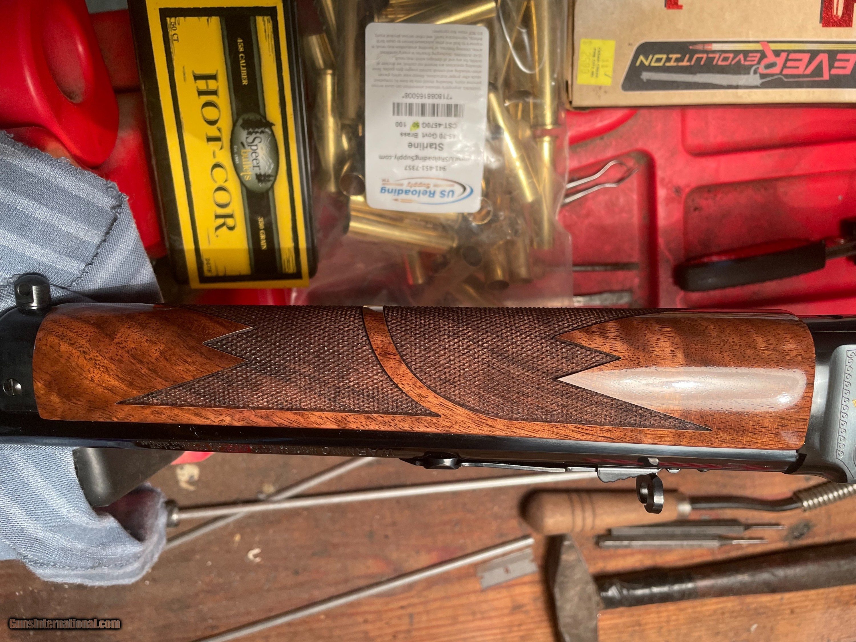 Description: NIB only factory shot...have factory box and paperwork....if interested have four boxes of factory ammo one box reload and some components that will sell and ship separately to you..private seller will include my DL to your FFL....payments accepted are money orders and personal checks( wait period) possible layaway options for this sale...lower 48 ship only... SOLD Rifle Caliber: .45-70 Government Manufacturer: Marlin Model: 1895 LTD Barrel Length: 24 Condition: Excellent Metal Condition: Excellent Wood Condition: Excellent Bore Condition: Excellent Barrel Type: Octagon Action: Lever |