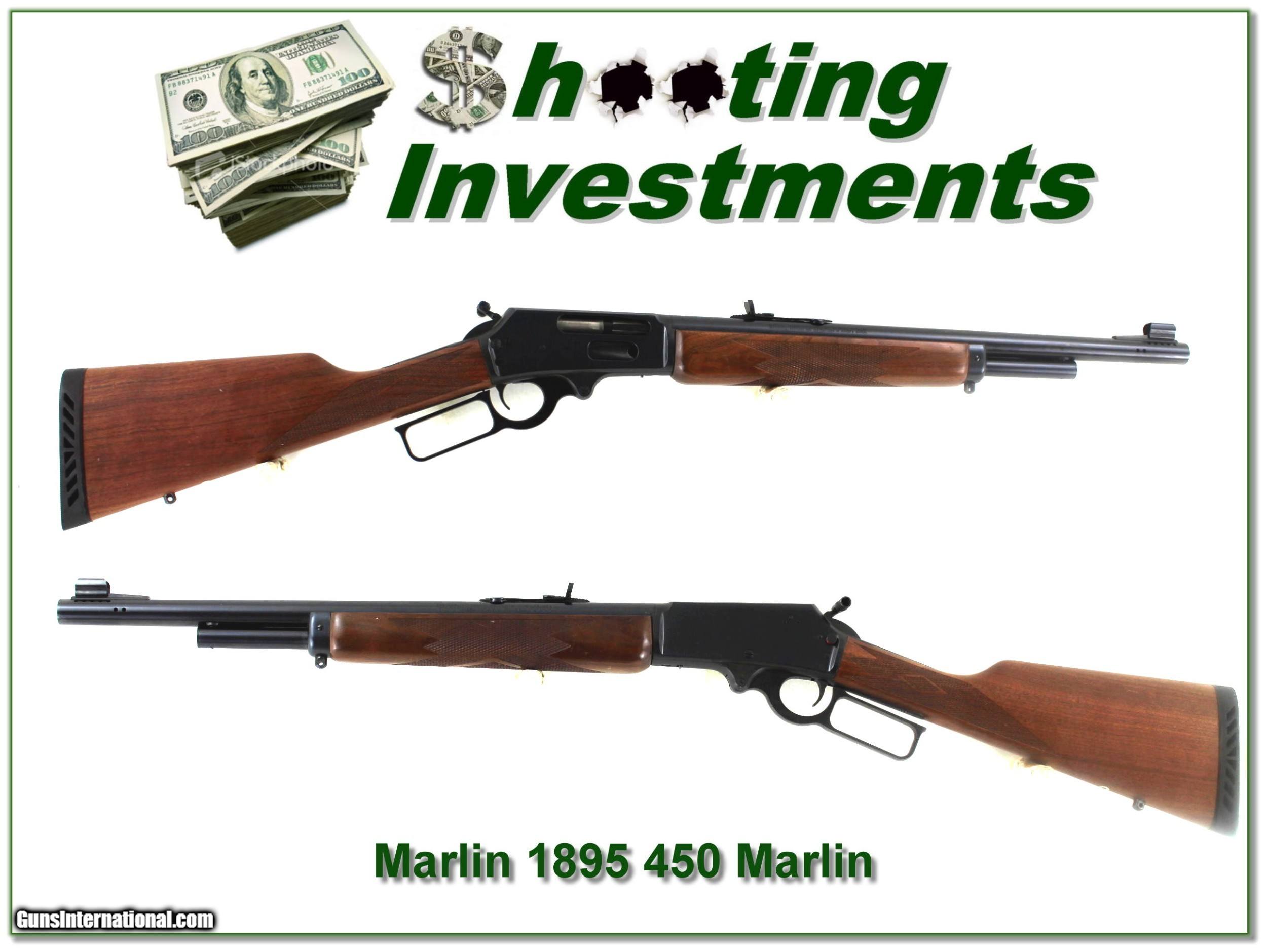 Description: Collectors and deep woods hunters, this is a 2000 made Marlin 1895M in 450 Marlin. 2000 is the year Marlin introduced this big hitter. This one has beautiful wood and the 18in Guild Gun with factory porting. The blue is excellent, and I just find a few marks on the American Walnut. It will make a classic hunting gun and is perfect for bear or bore! Shipping and insurance is $49. Please email me with any questions or larger pictures. (Consign your quality firearms with Shooting Investments for only 12%! Let me know if you have any you would like to sell!) 23-0065 Payment: Payment is by Money Order, Cashiers Check or Personal Check. I can now also accept Credit Cards (MasterCard, Visa, Discover & American Express) with a 3% convenience fee. Shipping: The shipping charge will be listed in each description. It is $49 for most long guns. Some heavy guns, over 48in boxes or those insured for over $2000 will be higher. Shipments to Alaska and Hawaii are higher because air shipment is required. Most firearms are shipped on Tuesday and Thursday and usually in 5 days of receipt of payment. We package all shipments carefully and insure them. Optics are shipped Priority Mail and most other non-firearm shipments are shipped First Class. Returns: Our return policy is simple. If for any reason you are not pleased with your purchase, you may return your item for a full refund of purchase price. Ammunition cannot be returned. It is important to us that you are happy. Guns cannot be fired or dissembled before returning them and they must be returned in the same condition as received. Notification of a return must occur with-in 3 days of receipt at your dealer. Shipping, convenience and dealer fees are not refundable and are the responsibility of the buyer. Lay-a-way: If needed, we offer a 60 day lay-a-way option on most firearms. It is 1/3 now, 1/3 in 30 days and 1/3 in 60 days. Lay-a-way firearm sales are final and if not completed the first payment cannot be returned. Consigning your firearms with Shooting Investments: We will help you get top dollar for your firearms. While most local guns shops charge 20% or more, our fee is only 12% with a minimum of $75. At your local gun shop it might take months to sell. Selling on-line provides instant access to thousands of interested buyers. You won’t find any other on-line dealer willing to sell your firearms for only 12% or listing every gun on 3 separate s. Selling through an House typically costs the seller 15% and the buyer an addition 15% (so 30%) and you have to wait several months to sell and longer to receive funds. If properly priced, we will sell your firearms in a few weeks. Send us an email or give us a call and we’ll explain how easy it is for you to get top dollar. Trading: Trading for use is really just buying your gun to re-sell. If you have a gun you want to trade, please email a picture and we will let you know what we can give or it. You will always get more if we sell it for you on consignment. Help for California Buyers: We are happy to ship to California. It is the buyer’s responsibility to make sure any item you buy is legal in your state. We are also happy to help with your purchase of a firearm from someone other than us. If you see a gun you would like to buy but the seller can’t or won’t ship to California they can ship to use and we’ll then ship it to your California dealer. The cost for this service is only $30 + shipping. Let us know if we can help! SOLD |