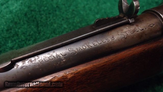 Description: This 95 is equipped with a 22" bbl and is in cal 33 Win. Receiver has light freckling throughout. There is still some case colors showing although quite dim. Bbl has most blue. Some wear by the rear sight at the carry point. The sight is Marlin but it looks like the earlier long Marlin sight has been put on which does cover up the caliber marking. A very nice sight. Front sight is the post with bead. Some damage to front sight. Bore is VG and action is nice. Wood is good overall with nice fit to both upper and lower tang. One corner missing on the right hand top corner and a small little chip at the toe on the butt plate. Some factory finish remains but mostly gone. You can't find a more solid gun than a Marlin 95. Good rifle! Leroy Merz Antique Firearms specializes in antique and vintage Winchesters and other fine American firearms. Since 1965 Mr. Merz has taken part in the world of firearms and has been a contributor to many well known reference books. Just recently we mailed the 124th edition of our privately-published catalog. We have hundreds of additional guns in every price range at our home online. Search for Merz Antiques in google. SOLD Antique: Yes |