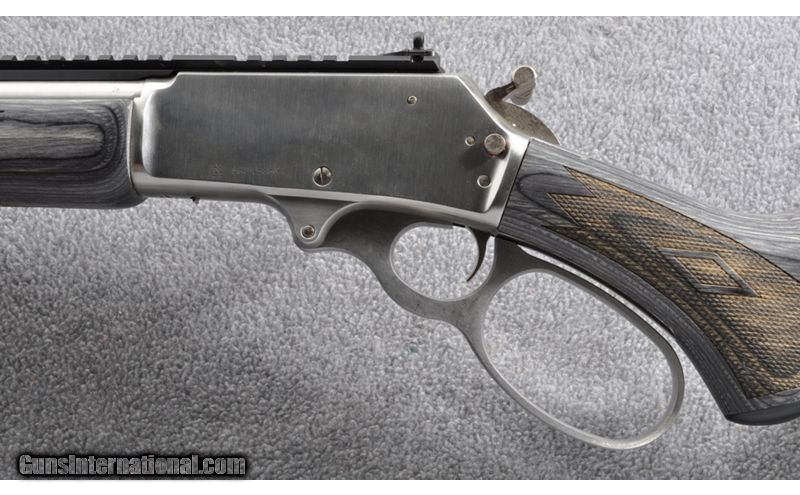 Description: 6 round, full-length tubular magazine, Big-Loop finger lever, all stainless steel barrel, lever, magazine tube & loading gate. Weighs 7 lbs. 4 oz. .45-70 Government SOLD Chambers: .45-70 Government Metal Condition: Appears near new, a small mark or two on the lever Wood Condition: Appears near new Bore Condition: Sharp & Bright rifling Barrels: 18.5" Stainless Stock Dimensions: 13.5" LOP Fore End: Checkered with nicker-plated swivel stud Butt Pad: Decelerator by Pachmayr Weight: 7 Lbs. 4 Oz. Sights: Fixed blade front, Adjustable Ghost Ring on XS LeverRail Item Location: Grand Junction, CO |