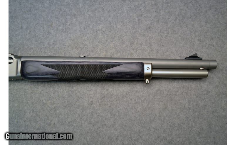 Description: Based on the same platform as the Marlin 1895™ SBL, the Marlin 1895™ Trapper boasts a shorter, more maneuverable 16" barrel, offers a bead-blasted, satin stainless finish for low glare in the field and rapid acquisition with the adjustable Skinner Sights™ receiver-mounted peep sight system. This American-made lever-action rifle was manufactured with great pride and attention to detail. .45-70 Government SOLD Barrels: 16 Weight: 6 lb Item Location: christiana |