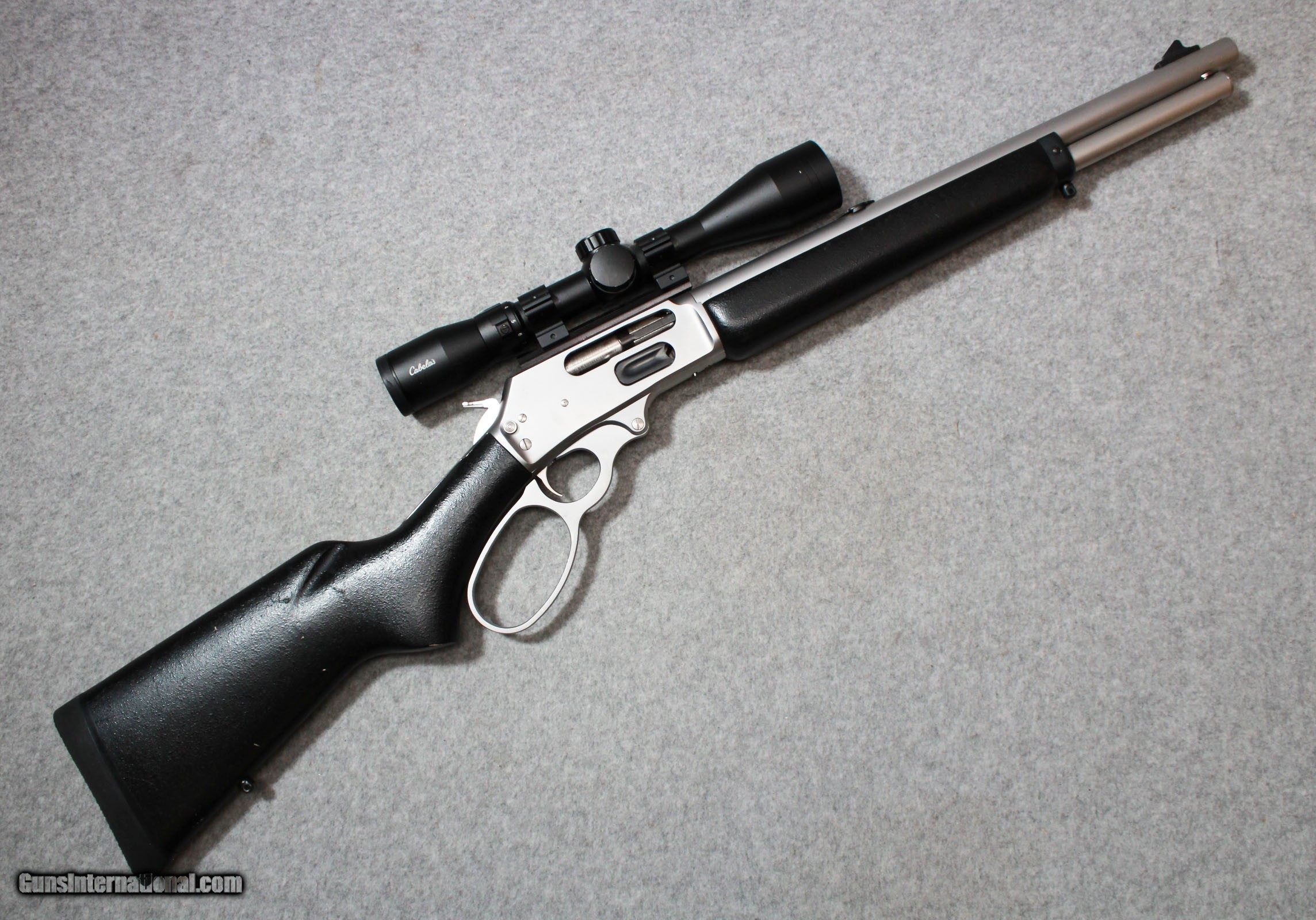 Description: Marlin 1895 TSBL lever action rifle chambered in .45-70 Government. It has a 16" barrel, a large lever loop, and sling swivel studs. The scope is a Cabela's Lever Action 3-9x40 .45-70. Free shipping to any Bass Pro Shops or Cabela's store. .45-70 Government Metal Condition: Very Good with Minor Handling Marks Wood Condition: Very Good with Minor Handling Marks Bore Condition: Bright and Clear Barrels: 16 inch Weight: 7 lbs 12 ozs Sights: Cabela's Lever Action 3-9x40 .45-70 Scope Item Location: Allen, TX Price: $999.99 Contact Seller |