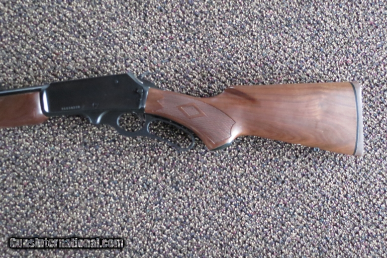 Description: Marlin 1895 45-70 Govt. 22 in. barrel with deep cut Ballard-type rifling, American black walnut pistol grip stock and forend with cut checkering. rubber rifle butt pad, swivel studs. 4 shot tube mag. hammer block safety, adj. sights. Rifle shows light use. minor wear on loading gate. Shipping $30 SOLD |