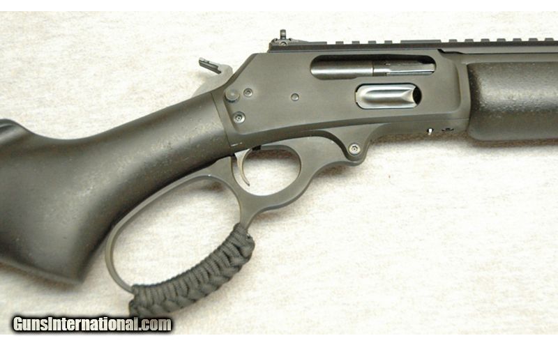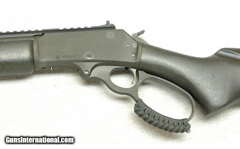 Description: Marlin Model 1895D Rifle. New condition with box. Threaded heavy barrel Marlin lever rifle with ghost ring sights, receiver rail for scope mounting. All black finish, big loop lever with wrap. .45-70 is a good choice for hunting many types of game animals at shorter ranges. .45-70 SOLD Chambers: Lever action Metal Condition: New Wood Condition: New Bore Condition: New Barrels: 16 Triggers: Factory trigger Stock Dimensions: 13 1/2 Fore End: Smooth Butt Pad: Factory recoil pad Sights: Ghost ring iron sights Item Location: La Vista, NE |