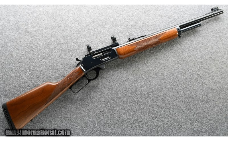 Description: The Marlin 1895 Guide Gun is a compact lever action gun with 18 1/2" barrel and straight grip stock. This one was made in 2001 by Marlin in North Haven CT. .45-70 Government SOLD Chambers: .45-70 Government in a tubular magazine lever action rifle Metal Condition: Very good Wood Condition: "Very good, small mark at the toe Bore Condition: Bright Ballard rifling Barrels: 18 1/2" Ported Triggers: Factory Stock Dimensions: 13 1/4" LOP Fore End: Checkered walnut with metal fore end tip Butt Pad: Marlin vented rubber Weight: 7 lbs. 8 oz. Sights: "Hooded blade front, sporting leaf rear, Leupold one piece scope base and rings Item Location: Grand Junction, CO |
