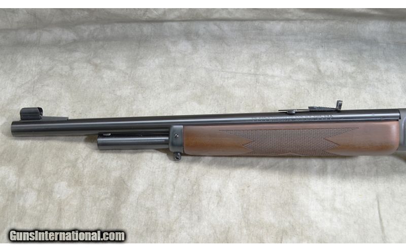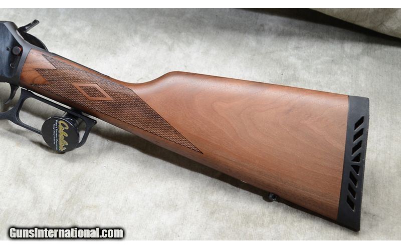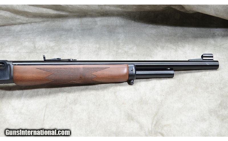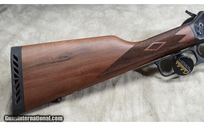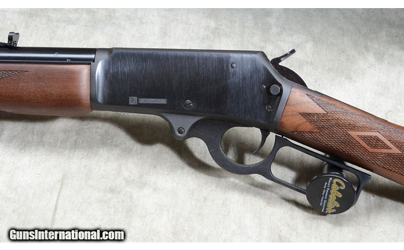 Description: Like new in the box big bore lever action with "iron" sights and scope ready. It has a straight grip stock with strong grain. .45-70 Government SOLD Chambers: 4 Metal Condition: Like new - unfired. Wood Condition: Like new - unfired. Bore Condition: Like new - unfired. Barrels: 18-1/2 inch Triggers: Factory trigger. Stock Dimensions: 13-1/2 inch LOP. Fore End: Well-matched walnut. Butt Pad: Soft ventilated pad. Weight: 6 lb - 15 oz Sights: Hooded post and semi-buckhorn open sights. Drilled and tapped for scope. Item Location: Rogers |