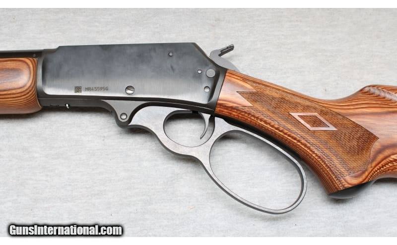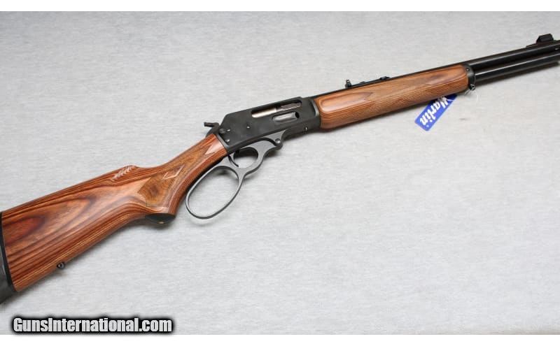 Description: Excellent condition, light wear and handling marks. Classic Marlin lever action rifle - 18" heavy barrel, blued finish, smooth action with big loop lever, iron sights and drilled & tapped for optic mounting. Laminated checkered hardwood stock and forend, sling attachments installed. .45-70 Government SOLD Chambers: Lever action Metal Condition: Excellent Wood Condition: Excellent Bore Condition: Bright Barrels: 18 Triggers: Factory Stock Dimensions: 13 1/2" LOP Fore End: Checkered Butt Pad: Decelerato pad Sights: Iron sights Item Location: La Vista, NE |