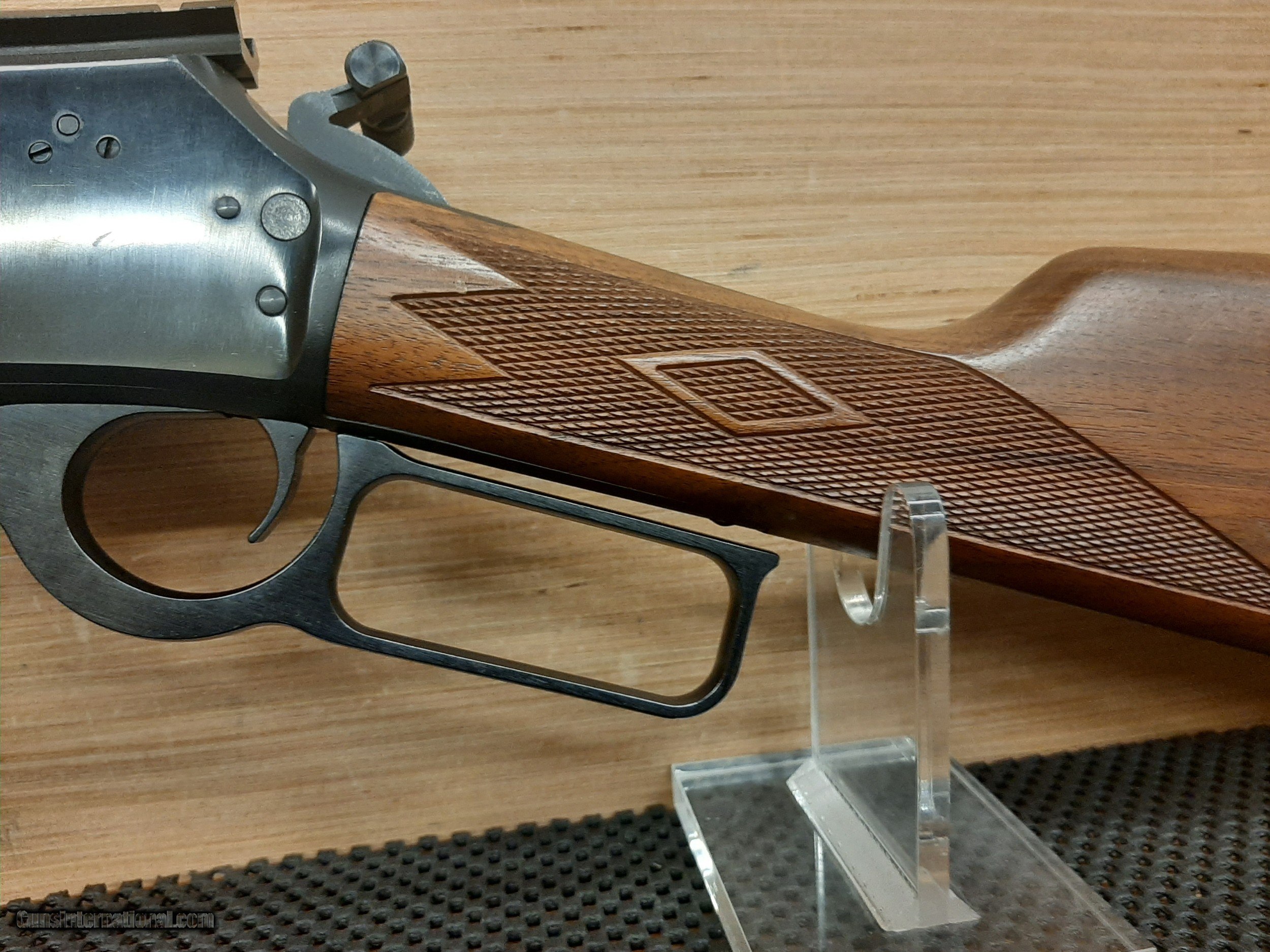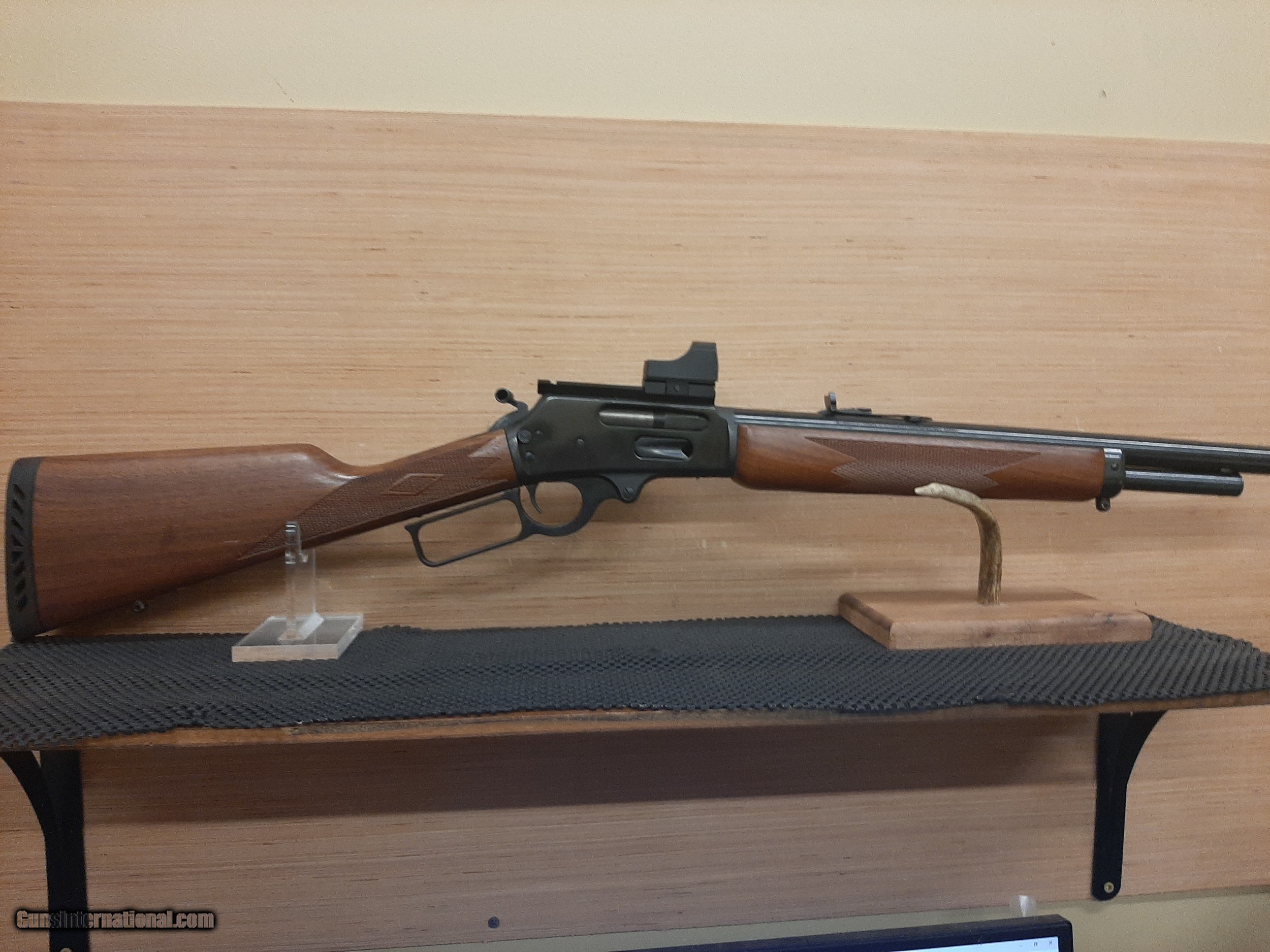 Description: USED GOOD CONDITION MARLIN 1895M .450 MARLIN -- 18.50" PORTED BARREL -- WALNUT STOCK 4+1 RND HAS A BUSHNELL FIRST STRIKE SIGHT ON IT JM BARREL STAMP ****PLEASE CALL IN THE WITH THE SELLER’S INVENTORY NUMBER IF INQUIRING ABOUT A FIREARM****** WE DO NOT SHIP FIREARMS AND/OR FIREARMS’ PARTS OUT OF THE 50 UNITED STATES, SO DON’T ASK PRICE REFLECTS PAYMENT BY MONEY ORDER / CASHIERS CHECK. A 3% PREMIUM IS ADDED FOR CREDIT CARDS. WE DO ACCEPT PERSONAL OR BUSINESS CHECKS, BUT THERE IS A GRACE PERIOD OF 10 BUSINESSS DAYS ON THEM. Shipping is $40 for handgun and $30 for long gun. Shipping to Alaska and Hawaii will be more based on weight of firearm. WE DO OFFER LAYAWAY PLANS FOR 30,60, OR 90 DAYS. THERE IS A $5.00 CHARGE FOR EVERY 30 DAYS ITEM IS ON LAYAWAY. WE ALSO REQUIRE A 20% DOWN PAYMENT ON TOTAL OF LAYAWAY SALE. LAYAWAYS ARE NON- REFUNDABLE. HERE IS HOW THIS PROCESS WORKS. YOU WOULD CALL US AT 540-337-9218 WITH LISTER # TO PURCHASE THE GUN. THEN ONCE I HAVE RECEIVED PAYMENT AND AN FFL (FEDERAL FIREARMS LICENSE) FROM A LICENSED DEALER IN YOUR AREA OF YOUR CHOICE. WE WILL THEN SHIP THE GUN TO THEM. YOU WOULD THEN PICK UP THE GUN AT YOUR LOCAL DEALER AND DO PAPER WORK THERE. Please have your FFL Dealers contact information when you call. DOMINION OUTDOORS 15 ANGELA COURT FISHERSVILLE, VA 22939 540-337-9218 540-337-2422 fax M – F 9 to 6 ETZ Sat 9 – 4 ETZ ****PLEASE CALL IN THE WITH THE SELLER’S INVENTORY NUMBER**** ***PLANO HARD CASES AVAIABLE FOR PURCHASE $19.99 WITH THE PURCHASE OF A FIREARM** *** Online prices compared to in store prices will vary. *** SOLD |