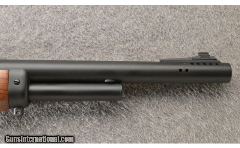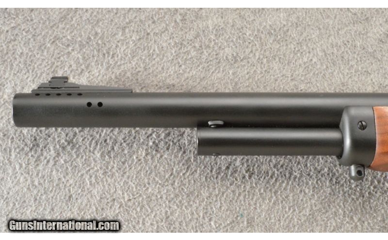 Description: This is a beautiful and exceptionally clean factory-ported Marlin Model 1895M carbine in .450 Marlin caliber. This model features a factory-ported 18.5" inch barrel, a 4-shot magazine tube, a straight-grip factory checkered Walnut stock set, a ventilated factory recoil pad, a folding buckhorn rear sight, and a crossbolt hammer block safety. This particular gun appears to have been used very little. The metal finish is, rating 97%. The bore is mirror bright with no pitting, or erosion. The Ballard-style rifling shows "like new" sharp lands and grooves. The factory checkered Walnut stock set is in excellent condition. Both the forearm and buttstock are free from any cracks, repairs, or major damage, showing only some tiny handling/storage marks under close inspection. The checkered panels on the forearm and wrist are crisp and clean. The factory installed Marlin-branded recoil pad is perfectly fit to the butt and tight to the wood. If you have been looking for a high power lever action carbine for big game or bear country this .450 Marlin 1895M carbine would be the perfect choice. .450 Marlin SOLD Chambers: Lever action repeater. Metal Condition: 97% Wood Condition: 99% Bore Condition: Bright crisp rifling. Barrels: 18.5" barrel. Triggers: Single. Stock Dimensions: LOP 13.25". Fore End: Checkered walnut. Butt Pad: Rubber. Weight: 6.75 lbs Sights: "Blade front, adjustable rear. Item Location: Owatonna, MN |