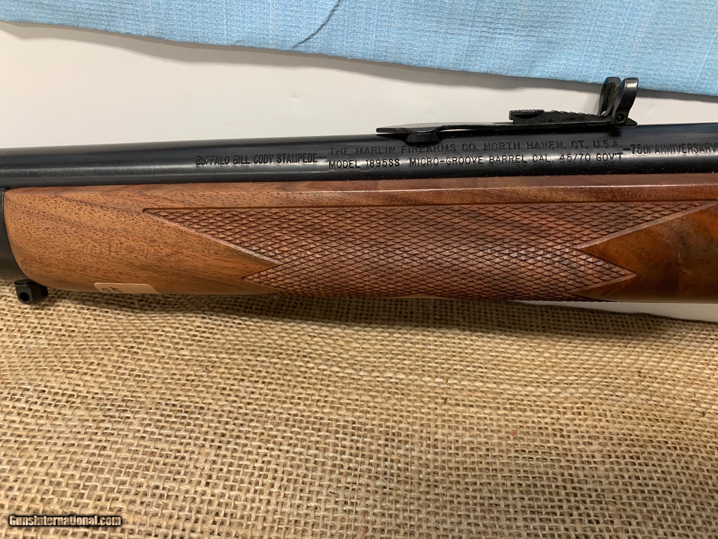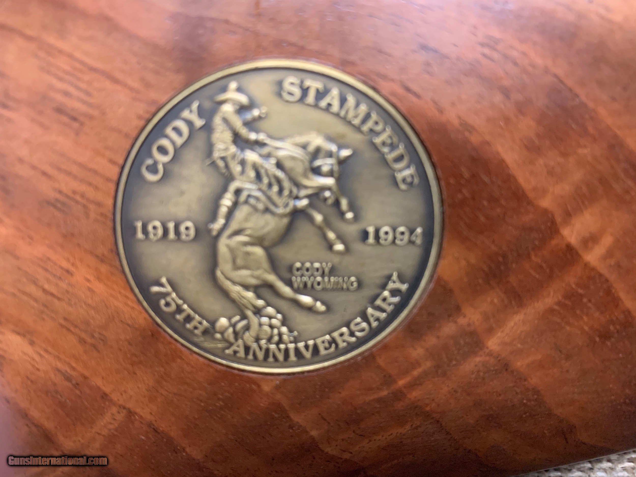 Description: Marlin 1895ss. Cody Stampede 75th Aniversary Commemorative. I have not seen one of these and have been looking for three years all over the web. This has upgraded wood and coin in stock along with Barrel inscription showing that is is also a commemorative gun. Rifle is un fired in box and as added bonus it is serial # Cody 0045. It is a 45-70 3% CHARGE on credit card usage. I believe they made 200 of these. Still has inspection sticker. Sold Pending Funds SOLD Rifle Caliber: .45-70 Government Manufacturer: Marlin Model: 1895ss Serial Number: Cody 0045 Barrel Length: 20” Condition: New Metal Condition: New Wood Condition: New Bore Condition: New |
