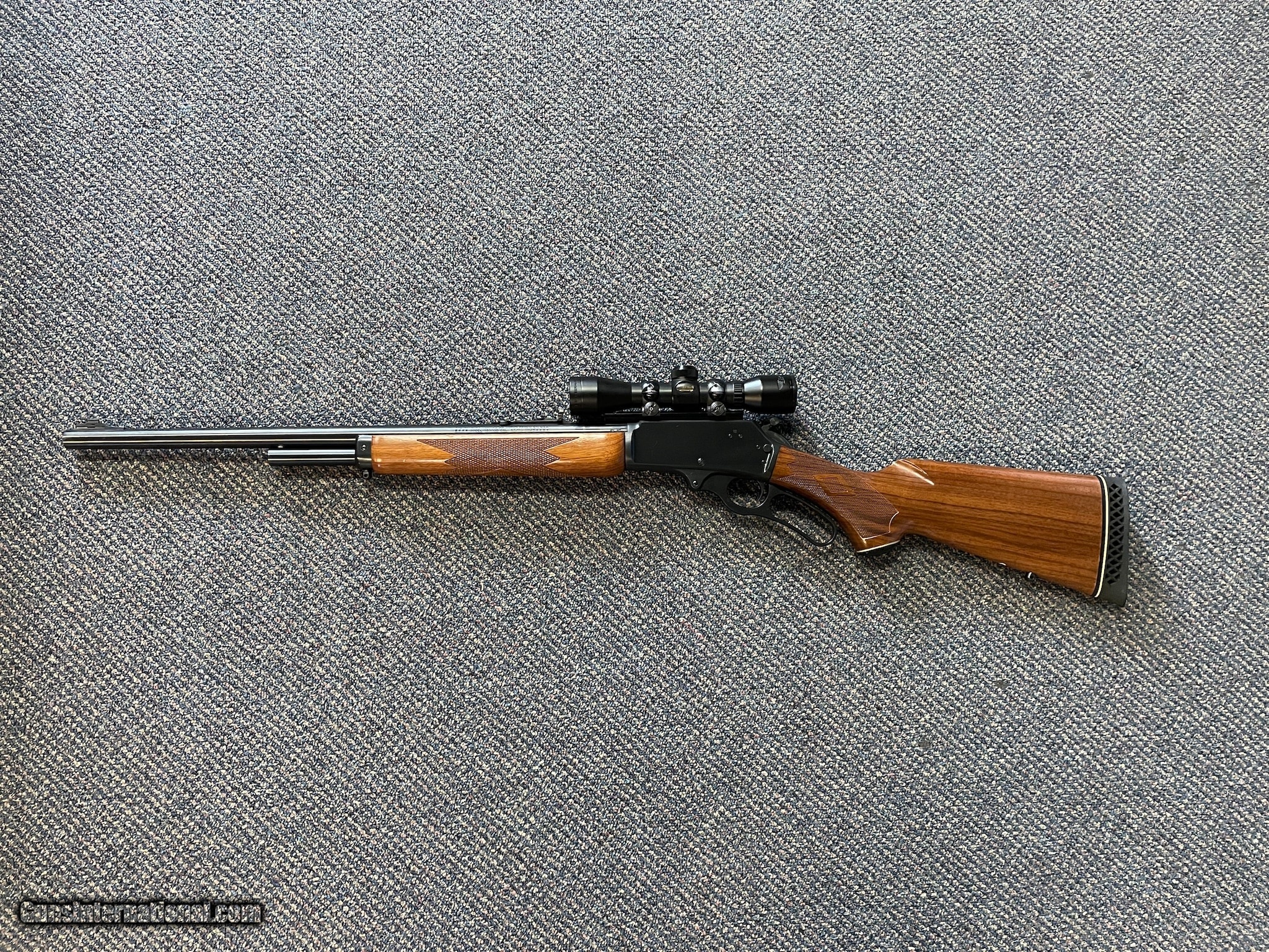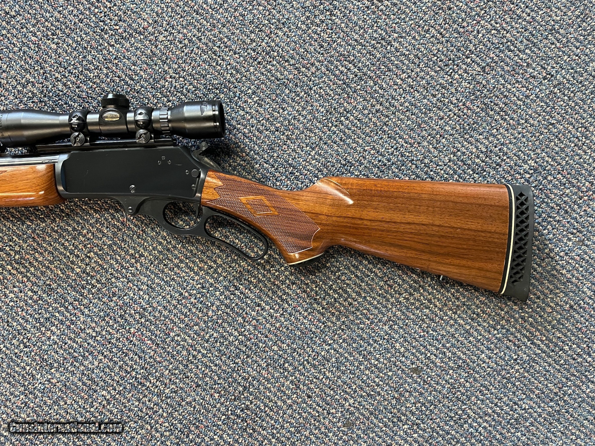 Description: Guns Listing ID: 318411 Has 22 inch barrel with a good bore. Lever action, 4 shot, magazine fed rifle. Blade front and semi buckhorn rear sight. Includes BSA Deer Hunter rifle scope. Checkered walnut stocks with White line rubber recoil pad. Metal has bright blue finish. Wood with very minor handling marks. SN: 03107801. Condition: Very Good. SOLD Manufacturer: MARLIN Model: 1895ss JM Stamp, Micro Grove, Tang Serial Number, BSA Scope Caliber Info: 45-70 Condition: Used - Non-Certified Barrels: 22 BARREL Finish: WALNUT, BLUED |