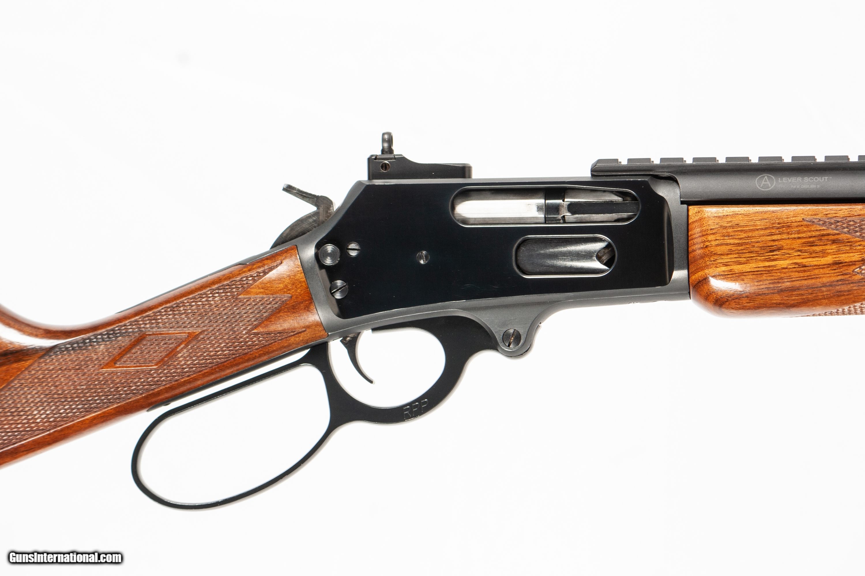 Description: Marlin 1895M chambered for 450 marlin with an 18 1/2 inch ported barrel that has a bright & shiny bore scout rail Ranger Point Precsion large loop ghost ring sights and the original box. This firearm is in excellent condition and is covered by Dury's Lifetime Warranty.
