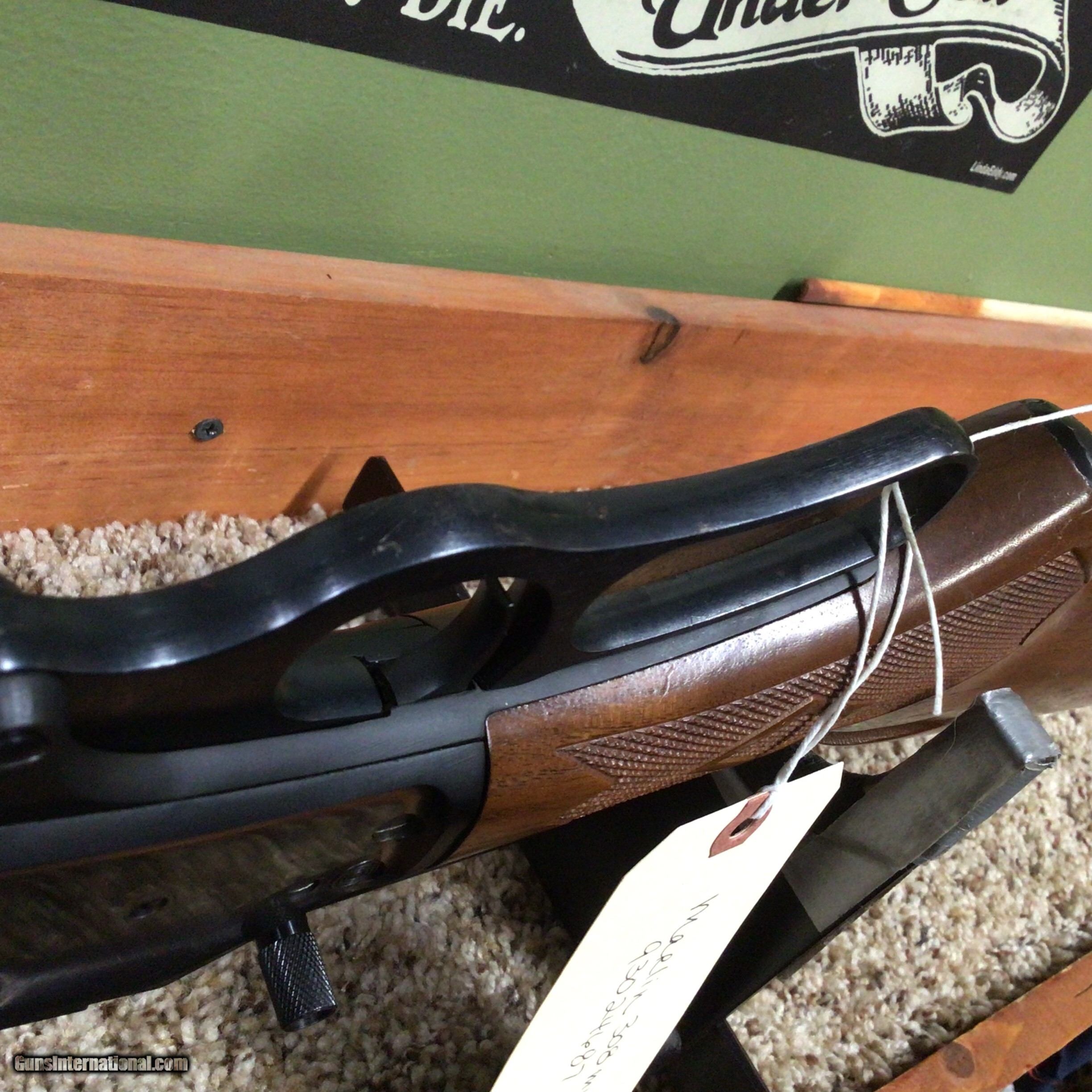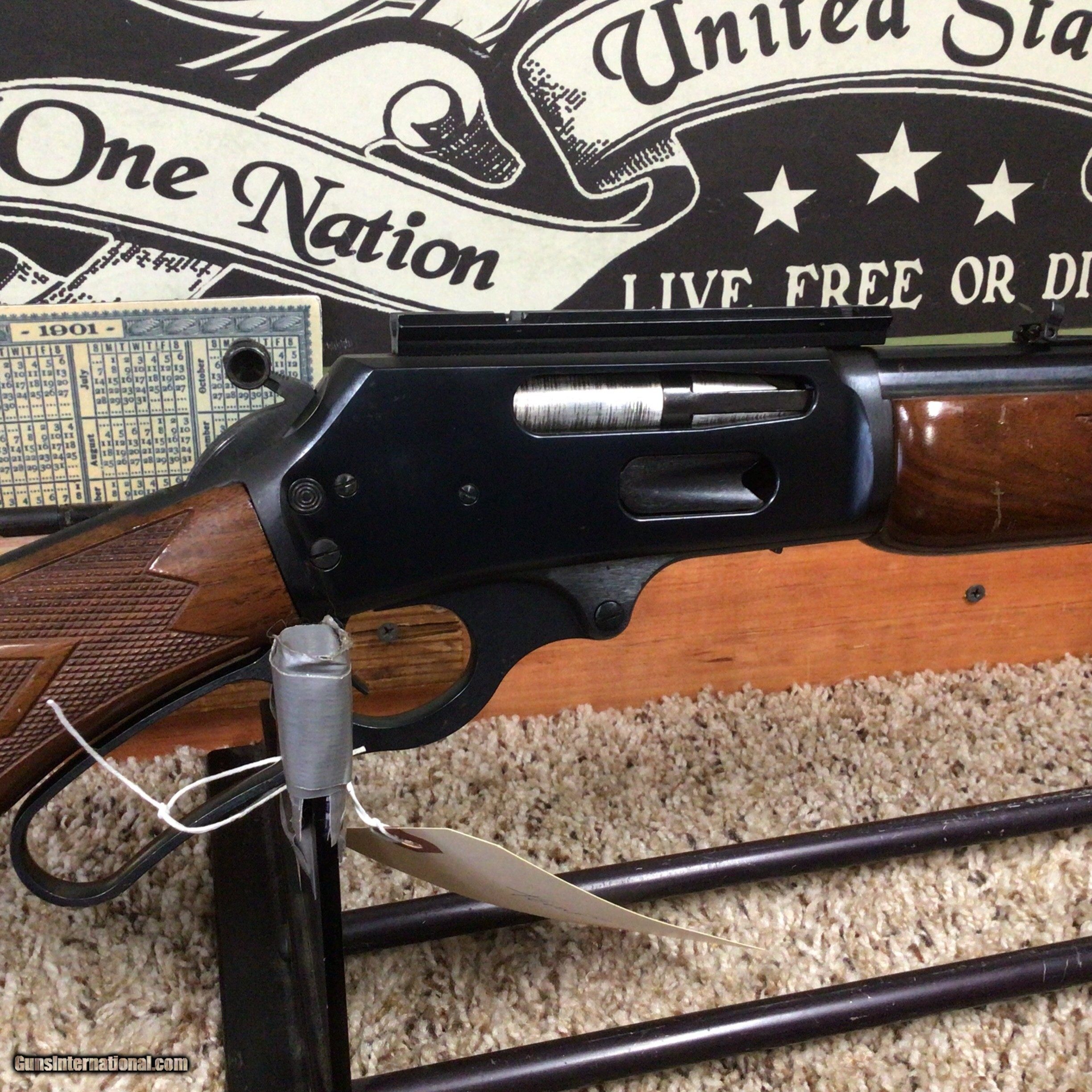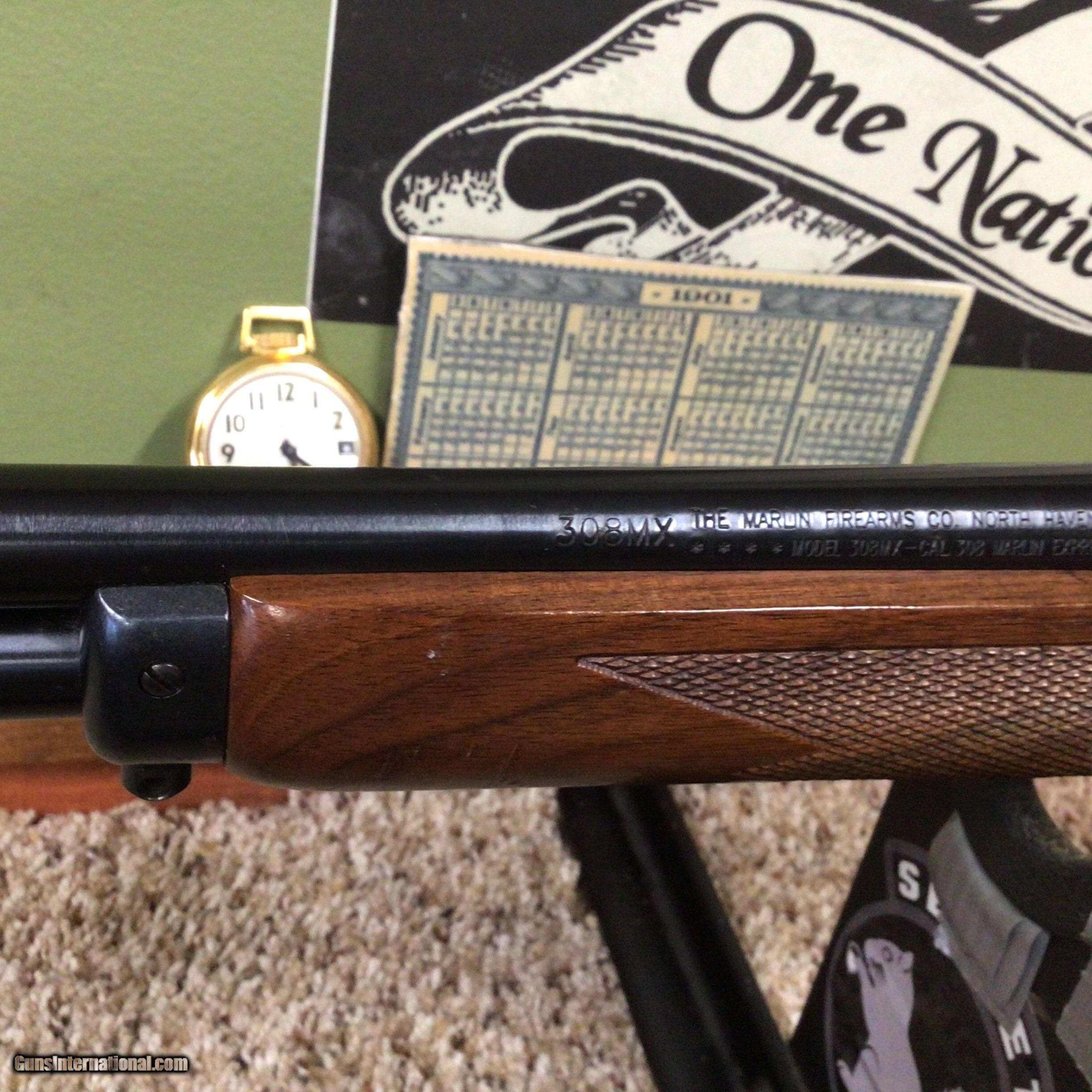 Description: For sale we have a Marlin 308 MX marked JM. It's a .308 Marlin Express. It has a 22 inch barrel and a hooded front sight, open rear sight, checkered walnut pistol grip stock, cross bolt safety, sling studs and rubber butt plate. The rifle has been hunted with and shows some scratches in the wood. The barrel bluing is good but shows some very minor pitting, mostly on the lever. It has a Weaver style scope base. Any questions give us a call 412-554-7891 SOLD |