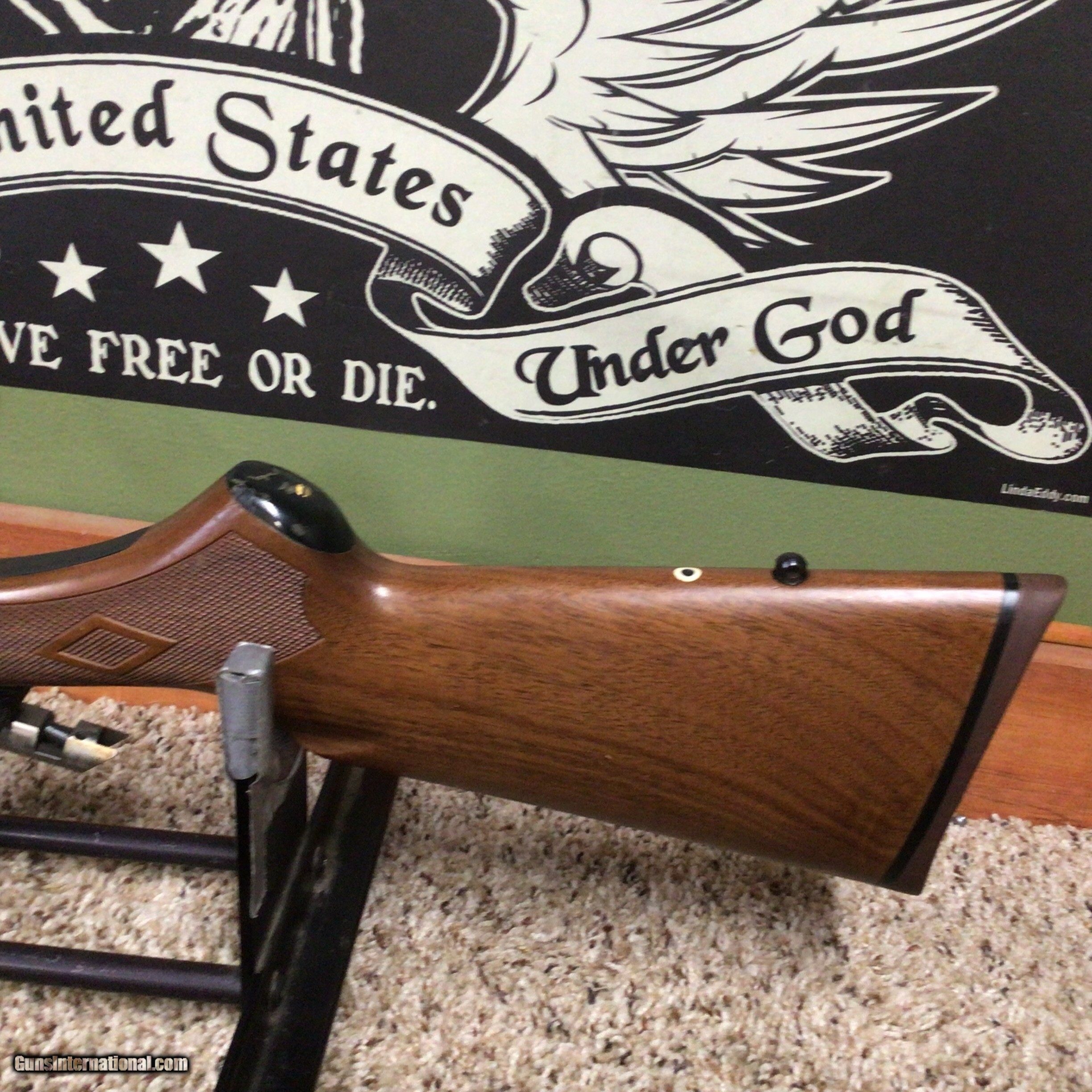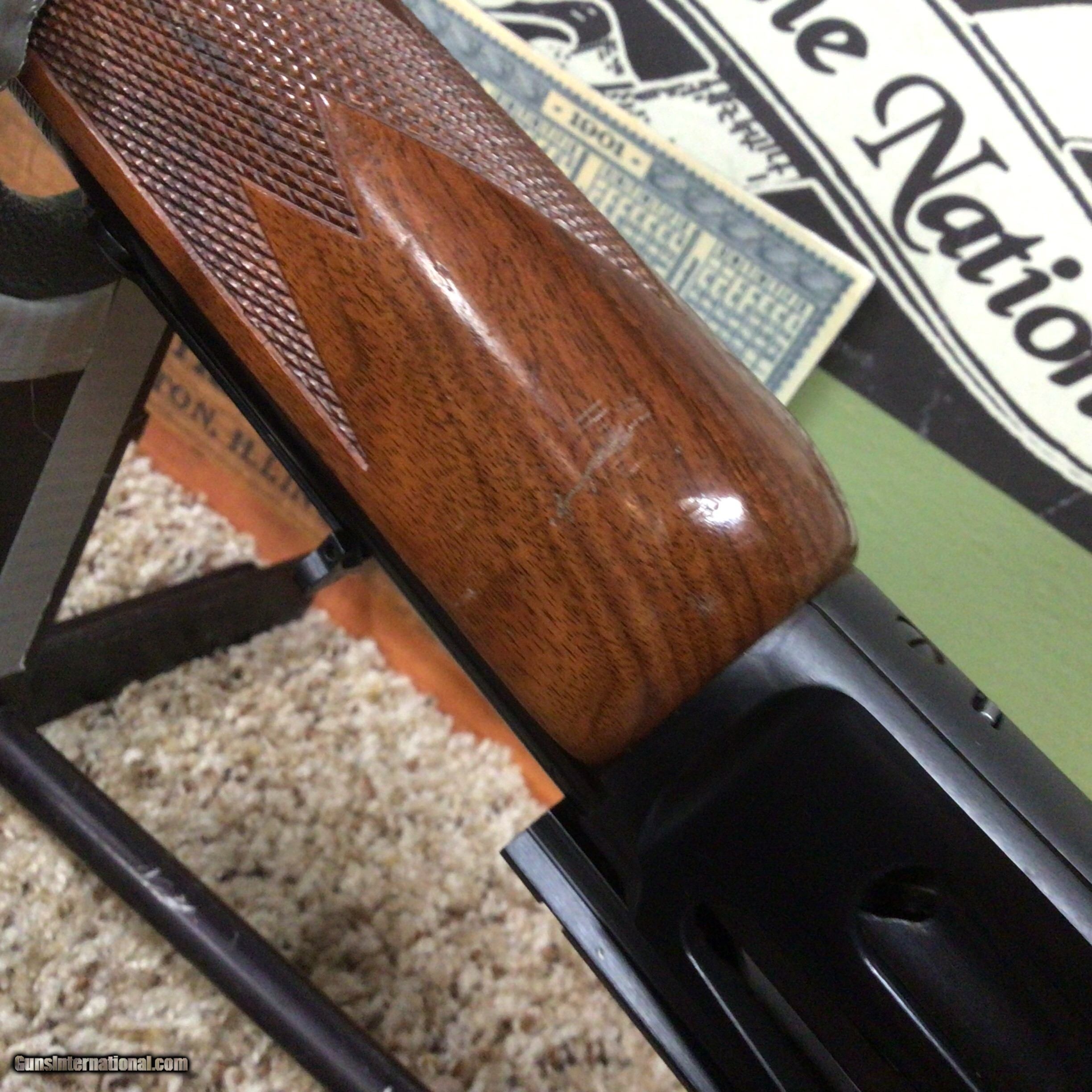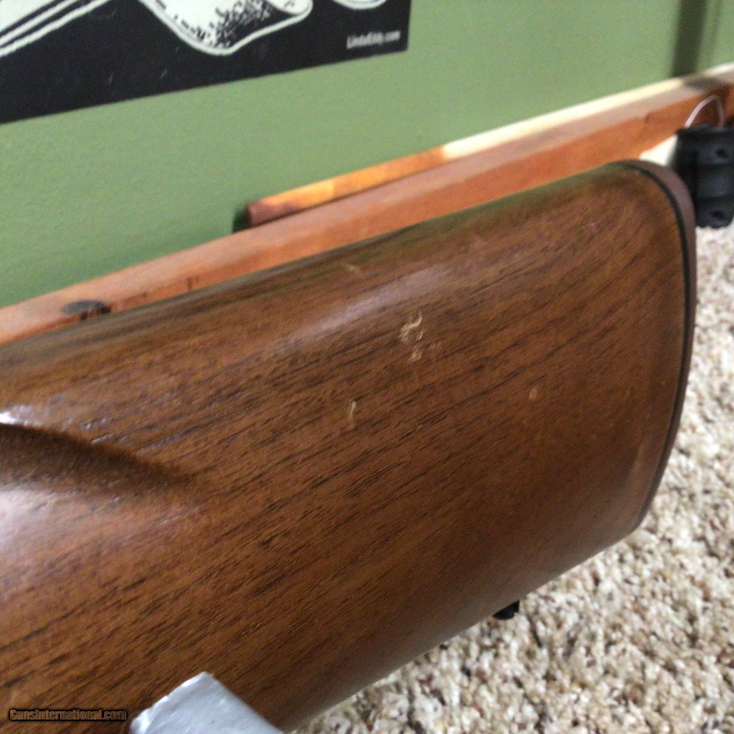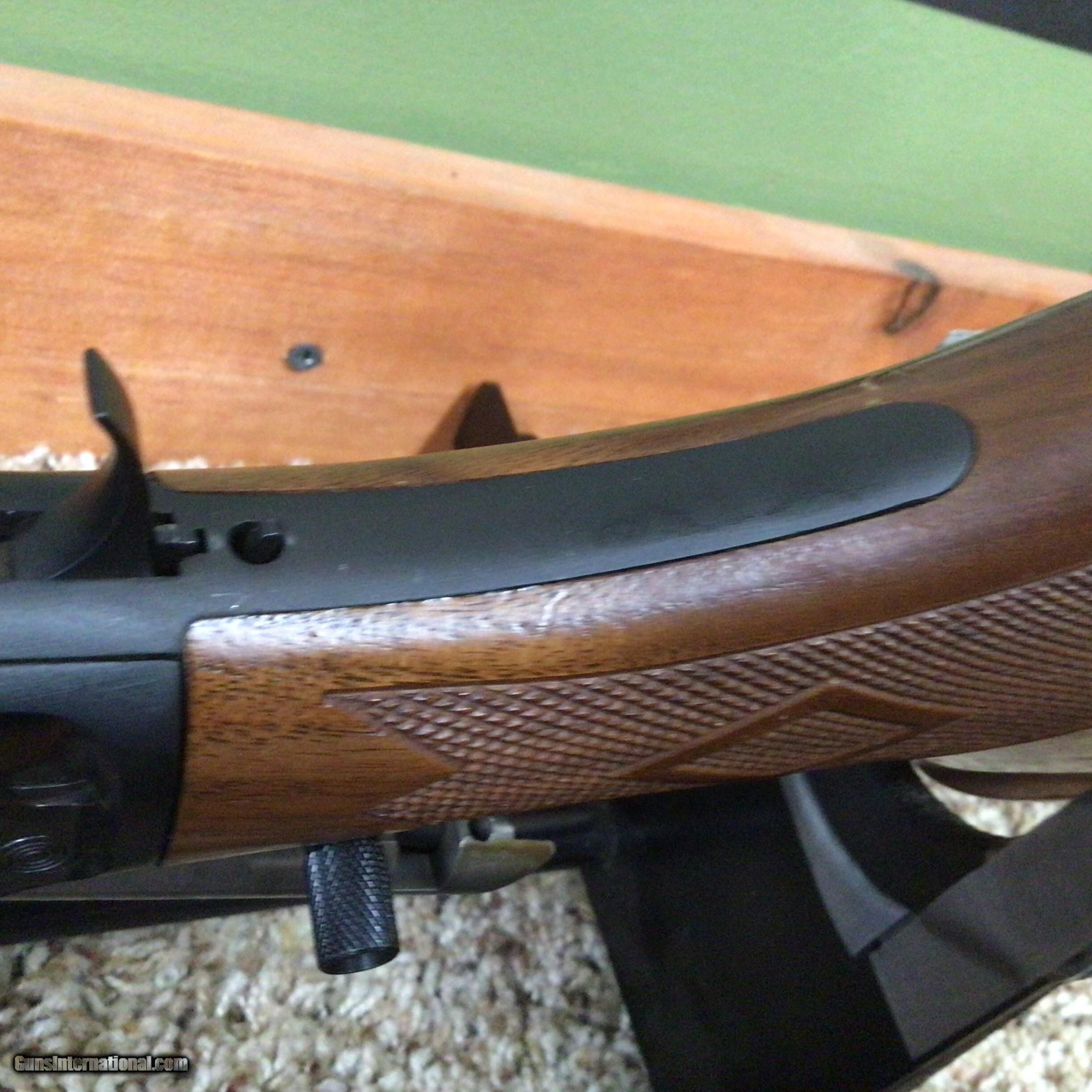 Description: For sale we have a Marlin 308 MX marked JM. It's a .308 Marlin Express. It has a 22 inch barrel and a hooded front sight, open rear sight, checkered walnut pistol grip stock, cross bolt safety, sling studs and rubber butt plate. The rifle has been hunted with and shows some scratches in the wood. The barrel bluing is good but shows some very minor pitting, mostly on the lever. It has a Weaver style scope base. Any questions give us a call 412-554-7891 SOLD |
