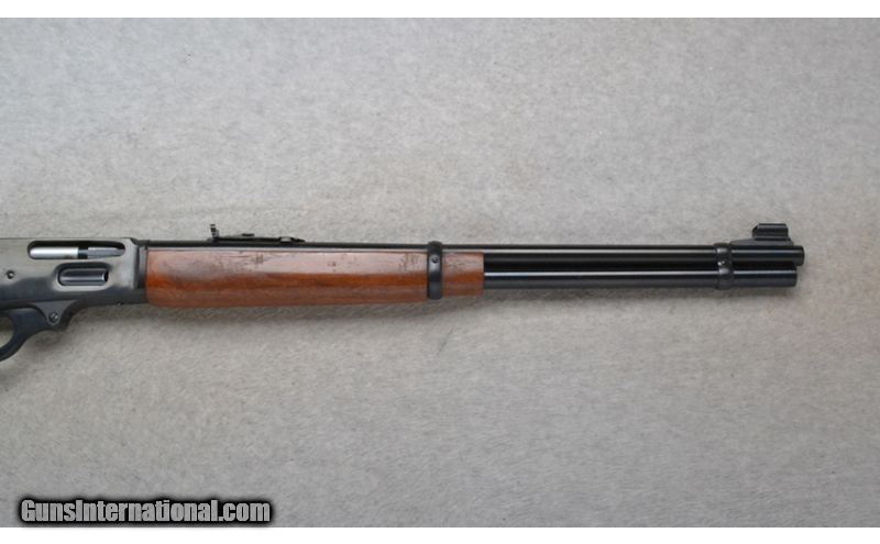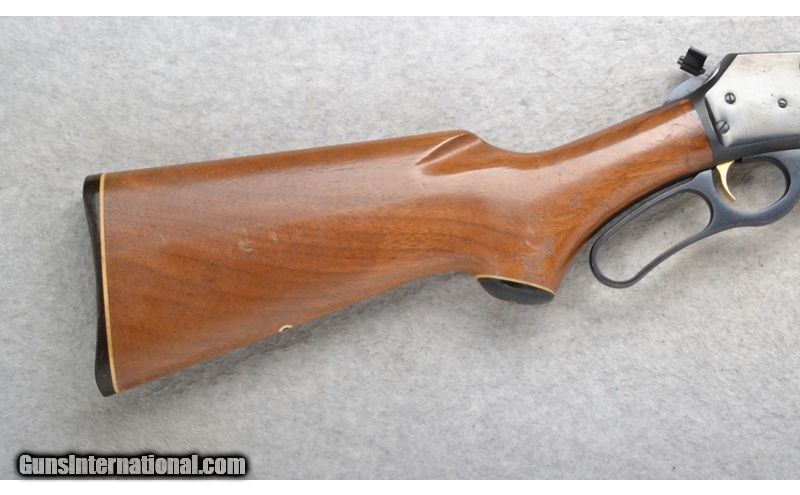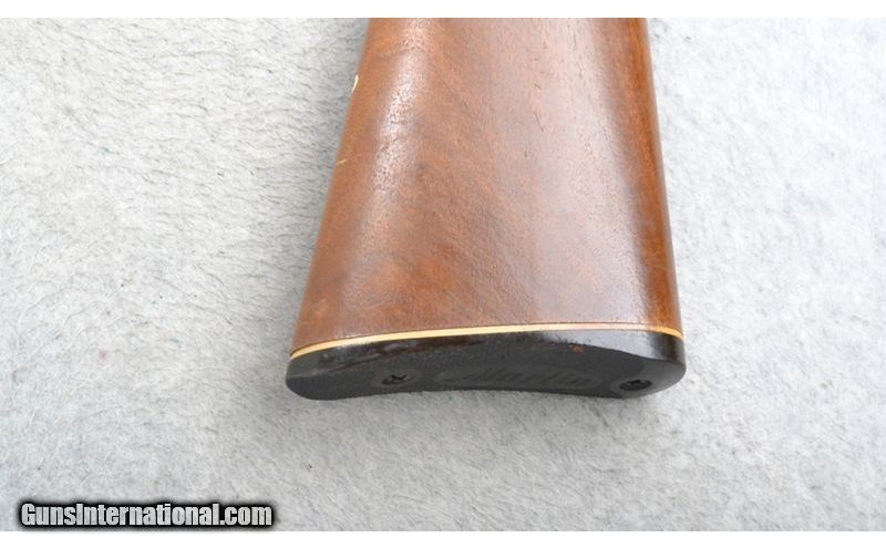 Description: This Marlin Model 336 is a right hand lever action repeating rifle in .30-30 Win. Cal. It has a 20 inch Micro-Groove barrel. A hooded front blade sight and an adjustable notch middle sight. It is drilled and tapped. The butt stock is a smooth grip hardwood pistol grip with a black cap. The forearm is a smooth grip hardwood with a barrel band. S/N 24048148 (1976). .30-30 Winchester SOLD Chambers: Tube Magazine. Metal Condition: Fair. Has some freckling and surface handling marks. Wood Condition: Fair. Has handling and use marks. Previous owners name is lightly scratched on left side butt stock. Bore Condition: Excellent. Barrels: 20 inch Micro-Groove barrel. Stock Dimensions: LOP 13 1/4 inch. Fore End: Smooth grip hardwood with a barrel band. Butt Pad: Marlin checkered black plate. Weight: 6 lb. 14 oz. Sights: Hooded front blade. Adjustable notch middle. Drilled and tapped. Item Location: Richfield, WI |