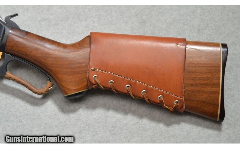 Description: Marlin 336 chambered in .30-30 WIN is in excellent condition. It features a 20" blued barrel and a leather wrap around the stock. It shows handling marks on the barrel and pitting on the frame. .30-30 Winchester SOLD Metal Condition: Excellent condition with handling marks Wood Condition: Excellent condition with handling marks Bore Condition: Clean and shiny Barrels: 20 Stock Dimensions: LOP 13 1/2 Fore End: Smooth wooden fore end Butt Pad: Textured Marlin butt plate Weight: 7 lb 3 oz Sights: Adjustable rear sight Item Location: Fort Worth, TX |