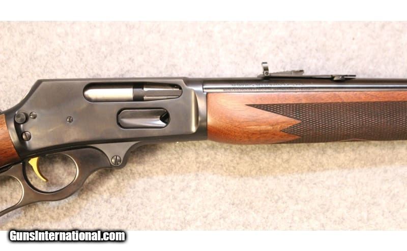 Description: This Marlin 336 chambered in .30-30 Winchester features, blued receiver, walnut stock, adjustable semi-buckhorn sights, rubber recoil pad, sling studs, and checkered foregrip. .30-30 Winchester SOLD Metal Condition: Excellent Wood Condition: Excellent Bore Condition: Bright Barrels: 20 Inches Weight: 7.2 lbs. Item Location: Hoffman Estates, IL |