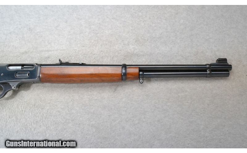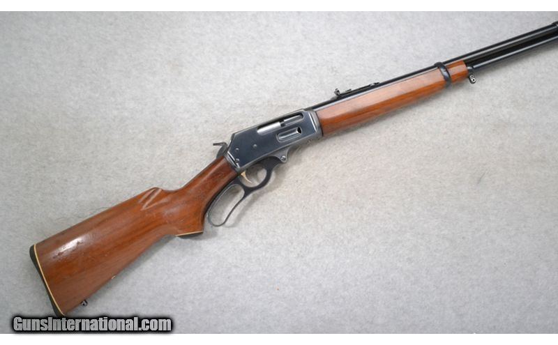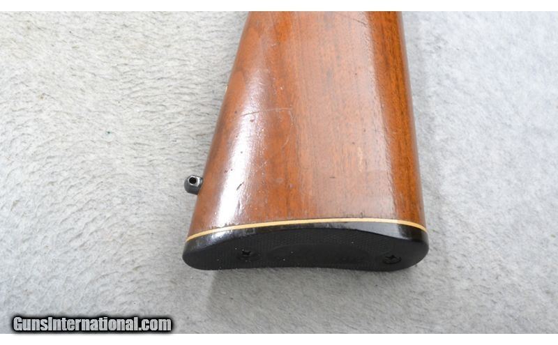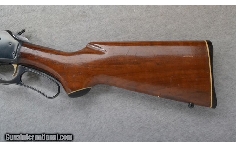 Description: This Marlin Model 336 is a right hand lever action repeating rifle in .35 Rem. Cal. It has a 20 inch Micro-Groove barrel. A hooded front blade sight and an adjustable notch middle sight. It is drilled and tapped for a scope mount. The butt stock is a smooth grip walnut pistol grip with a black cap. The forearm is a smooth grip walnut with a barrel band. Manufactured 1975. .35 Remington SOLD Chambers: Tube magazine. Metal Condition: Good. Has minor surface blemishes and a minor freckling spots. Wood Condition: Good. Many handling marks and minor wear. Bore Condition: Excellent. Barrels: 20 inch Micro-Groove barrel. Stock Dimensions: LOP 13 1/4 inches. Fore End: Smooth grip walnut with a barrel band. Butt Pad: Marlin checkered black plate. Weight: 7 lb. 0 oz. Sights: Hooded front blade. Adjustable notch middle. Drilled and tapped. Item Location: Richfield, WI |