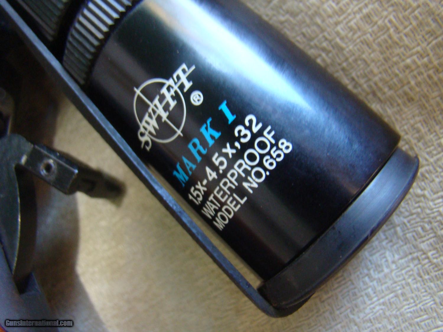 Description: Marlin 336 appears to be 99.9% new. I believe this is a 1980 production, may be unfired. Breechface is mint. Swift Mark 1 scope 1.5x 4.5 x 32. Scope covers. Quick detachable swivels and leather sling. SOLD |