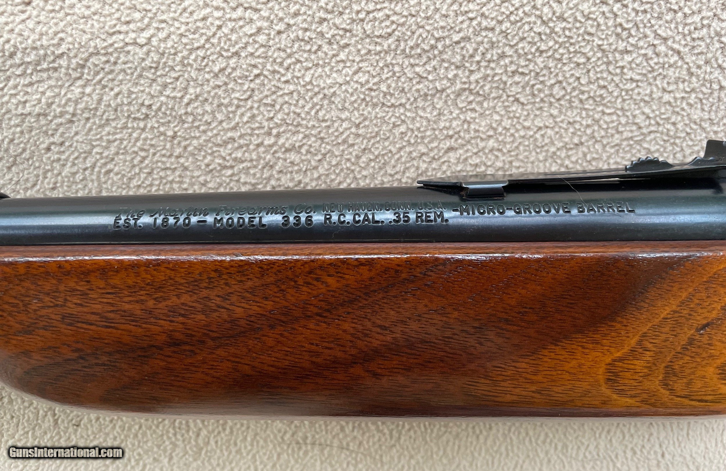 Description: Marlin 336 chambered for 35 Remington. 20" barrel with micro groove rifling. Bore is bright. Wood and metal shows some hunting/ use marks. Sling studs mounted. Rear stud is mounted in the Marlin bullseye Has a scope base installed. $50 shipping. SOLD Rifle Caliber: .35 Remington Manufacturer: Marlin Model: 336 Serial Number: M15776 Barrel Length: 20 inches Condition: Good Metal Condition: Good Wood Condition: Good Bore Condition: Brite |