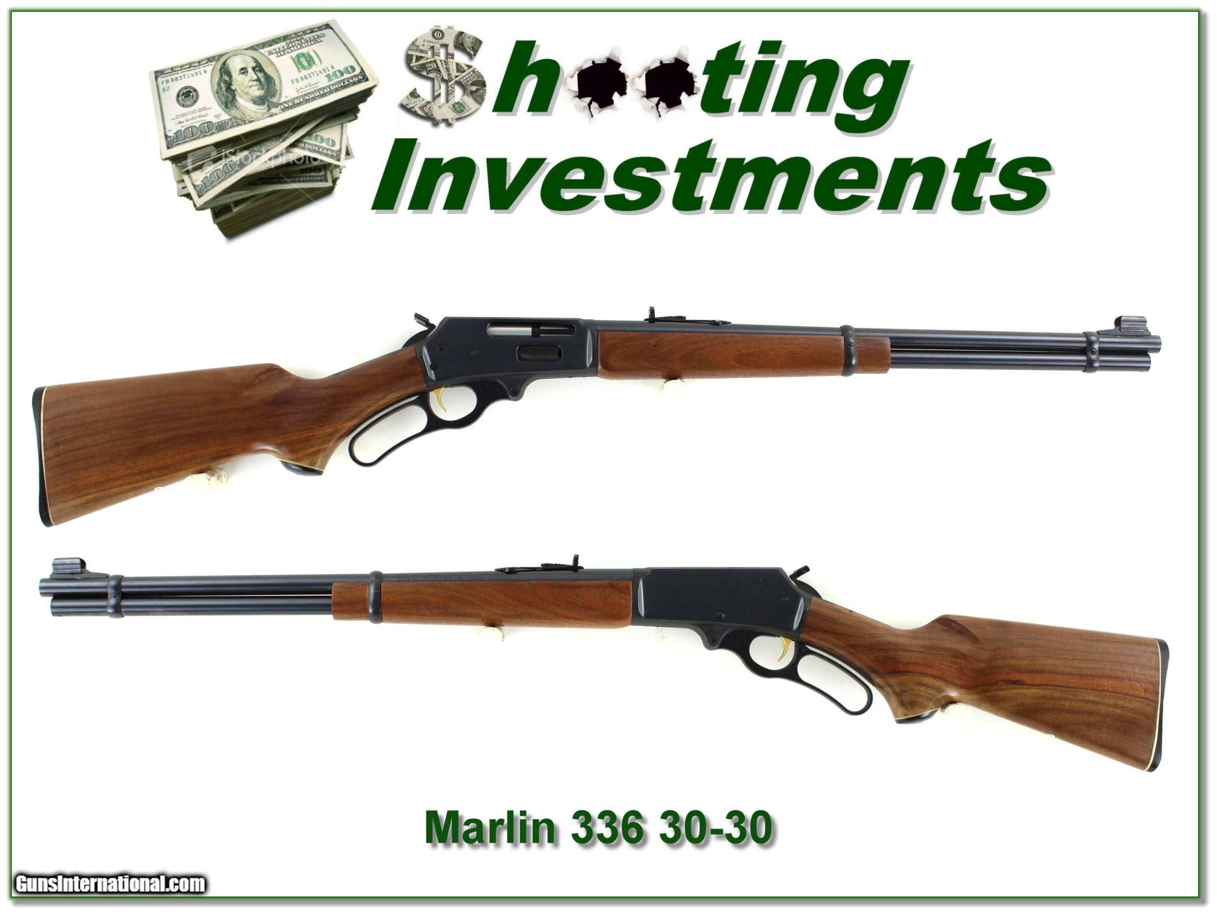 Description: Shooters and collectors, this is a near new condition 1980 made Marlin 336 in 30-30. It is a pre-crossbolt safety and JM marked Marlin. The has outstanding wood colors. Blue is like new and no scope ever mounted. It comes with a hammer extension and I’m sure only a few rounds fired. I find no marks of note. It is a real Shooting Investment! Shipping and insurance is $39. Please email me with any questions or larger pictures. (Consign your quality firearms with Shooting Investments for only 12%! Let me know if you have any you would like to sell!) 21-0656 Payment: Payment is by Money Order, Cashiers Check or Personal Check. I can now also accept Credit Cards (MasterCard, Visa, Discover & American Express) with a 3% convenience fee. Shipping: The shipping charge will be listed in each description. It is $39 for most firearms. Some heavy guns or those insured for over $2000 will be higher. Shipments to Alaska and Hawaii are higher because air shipment is required. Most firearms are shipped on Tuesday and Thursday and usually in 5 days of receipt of payment. We package all shipments carefully and insure them. Optics are shipped Priority Mail and most other non-firearm shipments are shipped First Class. Returns: Our return policy is simple. If for any reason you are not pleased with your purchase, you may return your item for a full refund of purchase price. Ammunition cannot be returned. It is important to us that you are happy. Guns cannot be fired or dissembled before returning them and they must be returned in the same condition as received. Notification of a return must occur with-in 3 days of receipt at your dealer. Shipping, convenience and dealer fees are not refundable and are the responsibility of the buyer. Lay-a-way: If needed, we offer a 60 day lay-a-way option on most firearms. It is 1/3 now, 1/3 in 30 days and 1/3 in 60 days. Lay-a-way firearm sales are final and if not completed the first payment cannot be returned. Consigning your firearms with Shooting Investments: We will help you get top dollar for your firearms. While most local guns shops charge 20% or more, our fee is only 12% with a minimum of $75. At your local gun shop it might take months to sell. Selling on-line provides instant access to thousands of interested buyers. You won’t find any other on-line dealer willing to sell your firearms for only 12% or listing every gun on 3 separate s. Selling through an House typically costs the seller 15% and the buyer an addition 15% (so 30%) and you have to wait several months to sell and longer to receive funds. If properly priced, we will sell your firearms in a few weeks. Send us an email or give us a call and we’ll explain how easy it is for you to get top dollar. Trading: Trading for use is really just buying your gun to re-sell. If you have a gun you want to trade, please email a picture and we will let you know what we can give or it. You will always get more if we sell it for you on consignment. Help for California Buyers: We are happy to ship to California. It is the buyer’s responsibility to make sure any item you buy is legal in your state. We are also happy to help with your purchase of a firearm from someone other than us. If you see a gun you would like to buy but the seller can’t or won’t ship to California they can ship to use and we’ll then ship it to your California dealer. The cost for this service is only $30 + shipping. Let us know if we can help! SOLD |