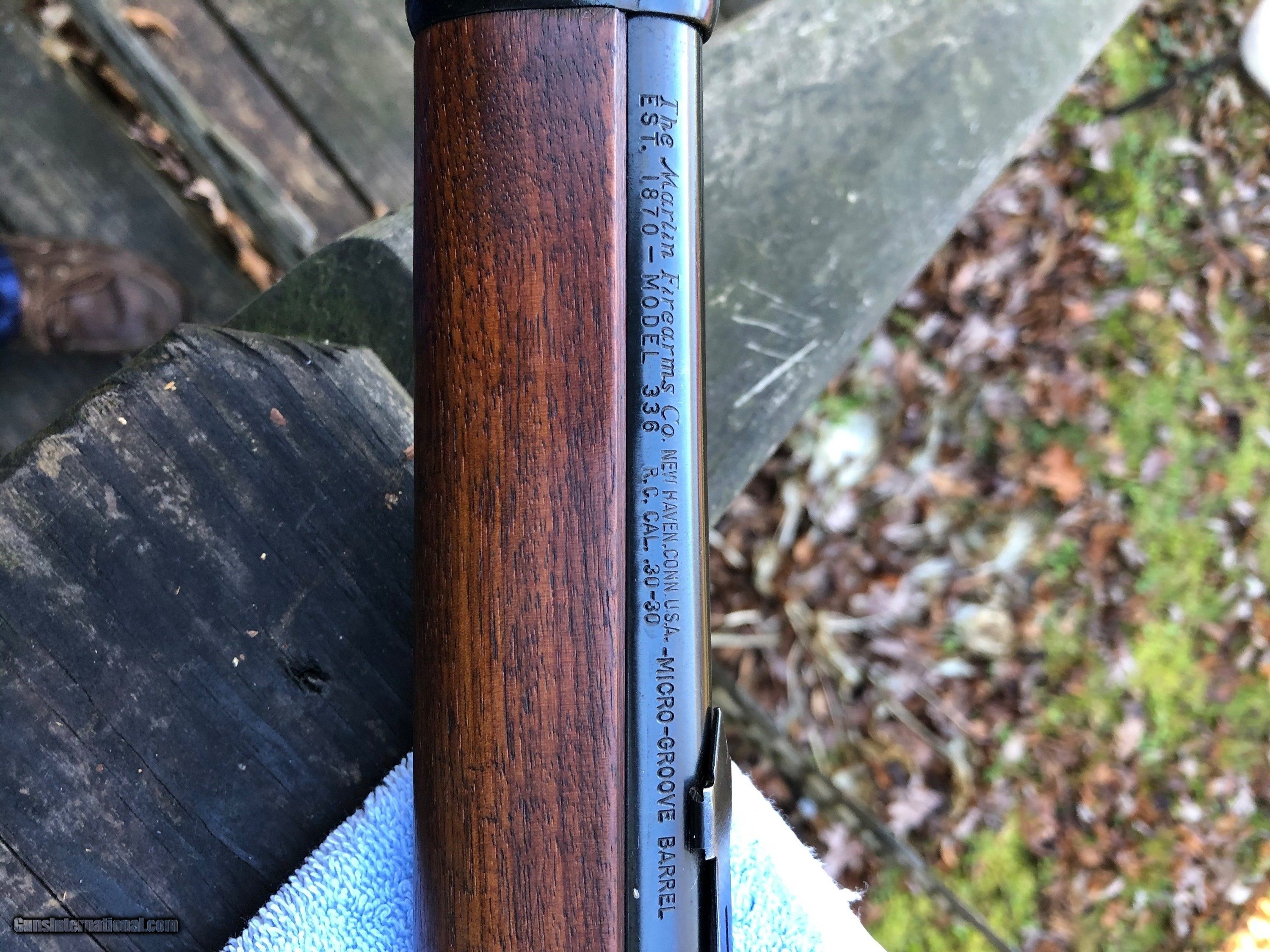 Description: Here's a very nice Marlin 336 R.C. .30-30 that has the JM stamp. The rifle is in excellent condition. The metal is 90 + percent with some blueing loss at the muzzle. There are a couple of small handling marks. The bore is excellent. The wood is excellent with a couple of small handling marks. Please ask questions prior to purchasing. Please make sure that your FFL Dealer will accept this weapon from a NON FFL DEALER. Postal Money Order will be the method of payment. SOLD |