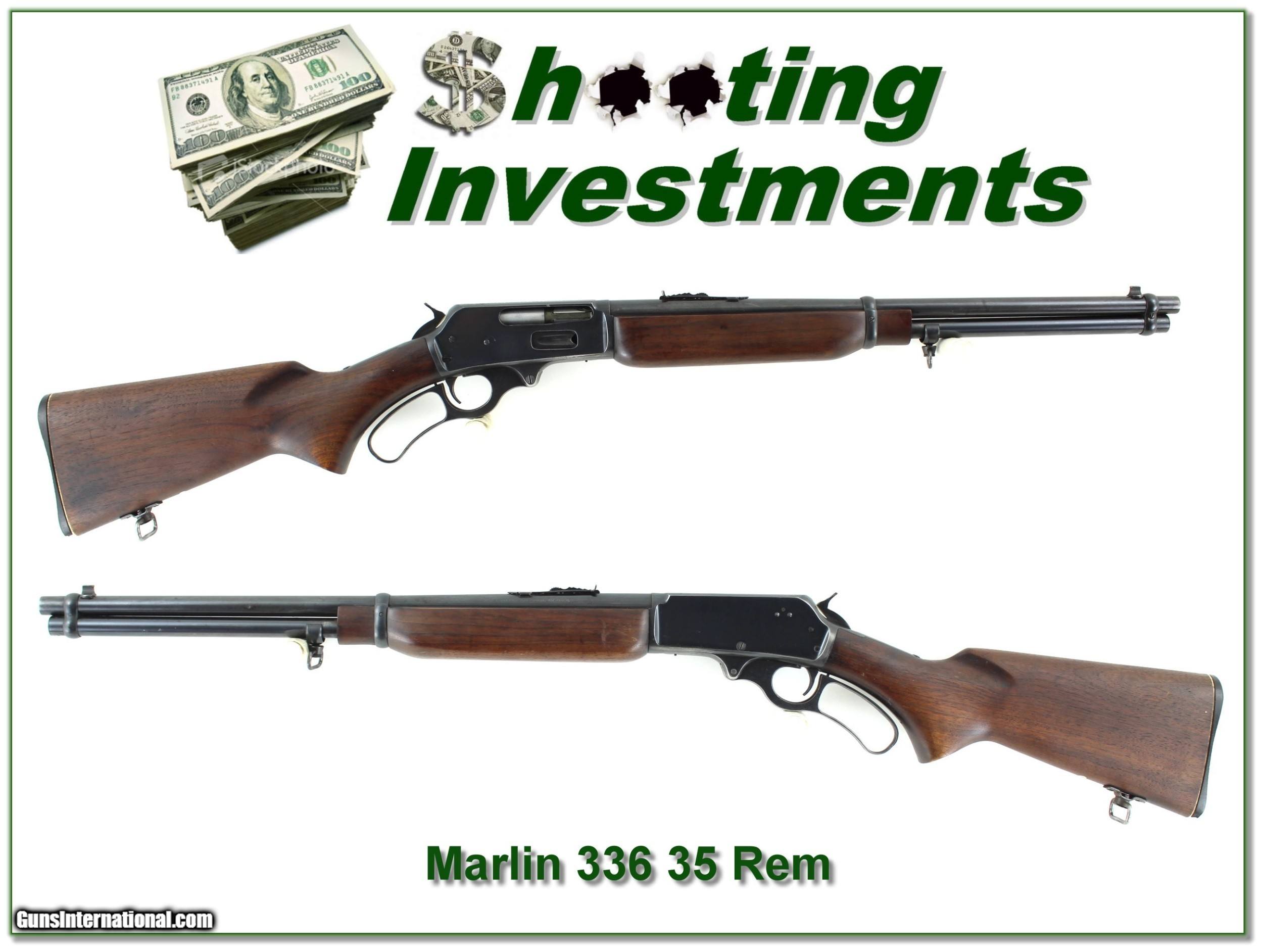 Description: This is a 1952 made Marling 336 in 35 Remington. It is in excellent used condition. It is JM marked and pre-safety gun! The wood is excellent just light marks. The blue is thinning on the receiver carry points with no rust or pitting. The receiver is a waffle top drilled and tapped for bases. It will make a classic early Marlin! Shipping and insurance is $39. Please email me with any questions or larger pictures. (Consign your quality firearms with Shooting Investments for only 12%! Let me know if you have any you would like to sell!) 20-1342 Payment: Payment is by Money Order, Cashier’s Check or Personal Check. I can now also accept Credit Cards (MasterCard, Visa, Discover & American Express) with a 3% convenience fee. Shipping: The shipping charge will be listed in each description. It is $39 for most firearms. Some heavy guns or those insured for over $2000 will be higher. Shipments to Alaska and Hawaii are higher because air shipment is required. Most firearms are shipped on Tuesday and Thursday and usually in 5 days of receipt of payment. We package all shipments carefully and insure them. Optics are shipped Priority Mail and most other non-firearm shipments are shipped First Class. Returns: Our return policy is simple. If for any reason you are not pleased with your purchase, you may return your item for a full refund of purchase price. Ammunition cannot be returned. It is important to us that you are happy. Guns cannot be fired or dissembled before returning them and they must be returned in the same condition as received. Notification of a return must occur with-in 3 days of receipt at your dealer. Shipping, convenience and dealer fees are not refundable and are the responsibility of the buyer. Lay-a-way: If needed, we offer a 60 day lay-a-way option on most firearms. It is 1/3 now, 1/3 in 30 days and 1/3 in 60 days. Lay-a-way firearm sales are final and if not completed the first payment cannot be returned. Consigning your firearms with Shooting Investments: We will help you get top dollar for your firearms. While most local guns shops charge 20% or more, our fee is only 12% with a minimum of $75. At your local gun shop it might take months to sell. Selling on-line provides instant access to thousands of interested buyers. You won’t find any other on-line dealer willing to sell your firearms for only 12% or listing every gun on 3 separate s. Selling through an House typically costs the seller 15% and the buyer an addition 15% (so 30%) and you have to wait several months to sell and longer to receive funds. If properly priced, we will sell your firearms in a few weeks. Send us an email or give us a call and we’ll explain how easy it is for you to get top dollar. Trading: Trading for use is really just buying your gun to re-sell. If you have a gun you want to trade, please email a picture and we will let you know what we can give or it. You will always get more if we sell it for you on consignment. Help for California Buyers: We are happy to ship to California. It is the buyer’s responsibility to make sure any item you buy is legal in your state. We are also happy to help with your purchase of a firearm from someone other than us. If you see a gun you would like to buy but the seller can’t or won’t ship to California they can ship to use and we’ll then ship it to your California dealer. The cost for this service is only $30 + shipping. Let us know if we can help! SOLD |