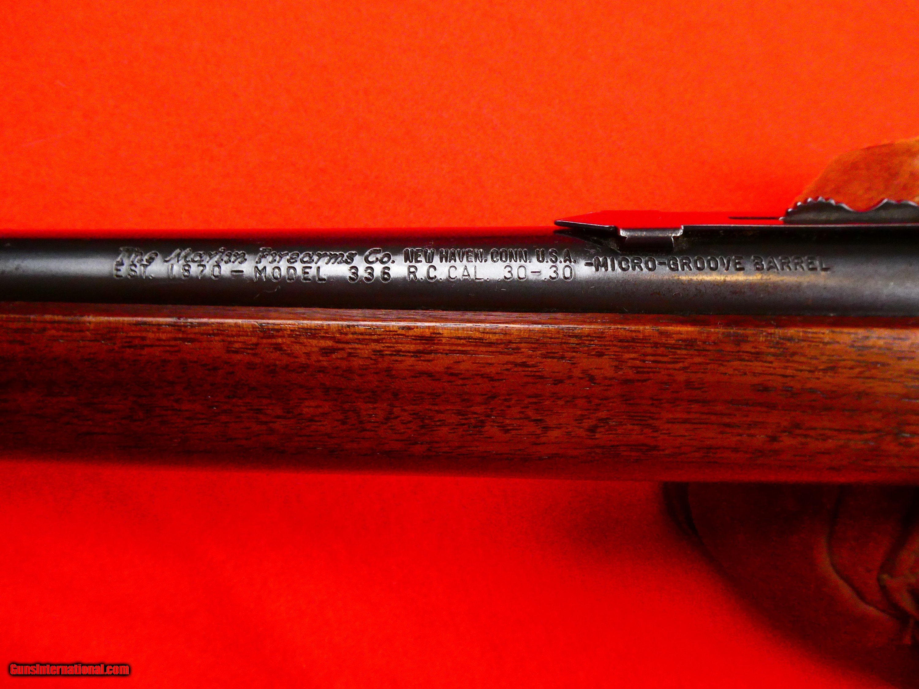 Description: **SOLD** Marlin Model 336 RC .30-30 lever action carbine, Ser # W 203XX, Made in 1963, 20 inch barrel, Open sights, JM stamped, Bluing and stocks are very nice, Bore is excellent, Very high condition 336. Layaway Available SOLD |