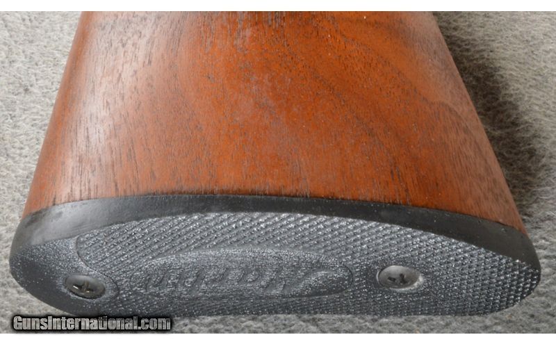 Description: This is a nice solid Marlin model 336 RC in .30-30 Win. The 20" blue barrel has some finish wear and the receiver a few spots. The walnut stock and forearm has some minor field marks. All in all a very nice Pre Remington rifle. .30-30 Winchester SOLD Chambers: Lever action repeater. Metal Condition: Very good with some spotting and wear on the barrel. Wood Condition: Very good with a few field marks. Bore Condition: Bright and shiny. Barrels: 20" blue with sights. Triggers: Single blue. Stock Dimensions: 13 1/4" LOP. Fore End: Beavertail style walnut. Butt Pad: Matching walnut with a pistol grip sling stud and black butt plate. Weight: 7 lbs 4 oz. Sights: Notch rear with an elevator and a front blade with bead. Item Location: Owatonna, MN |