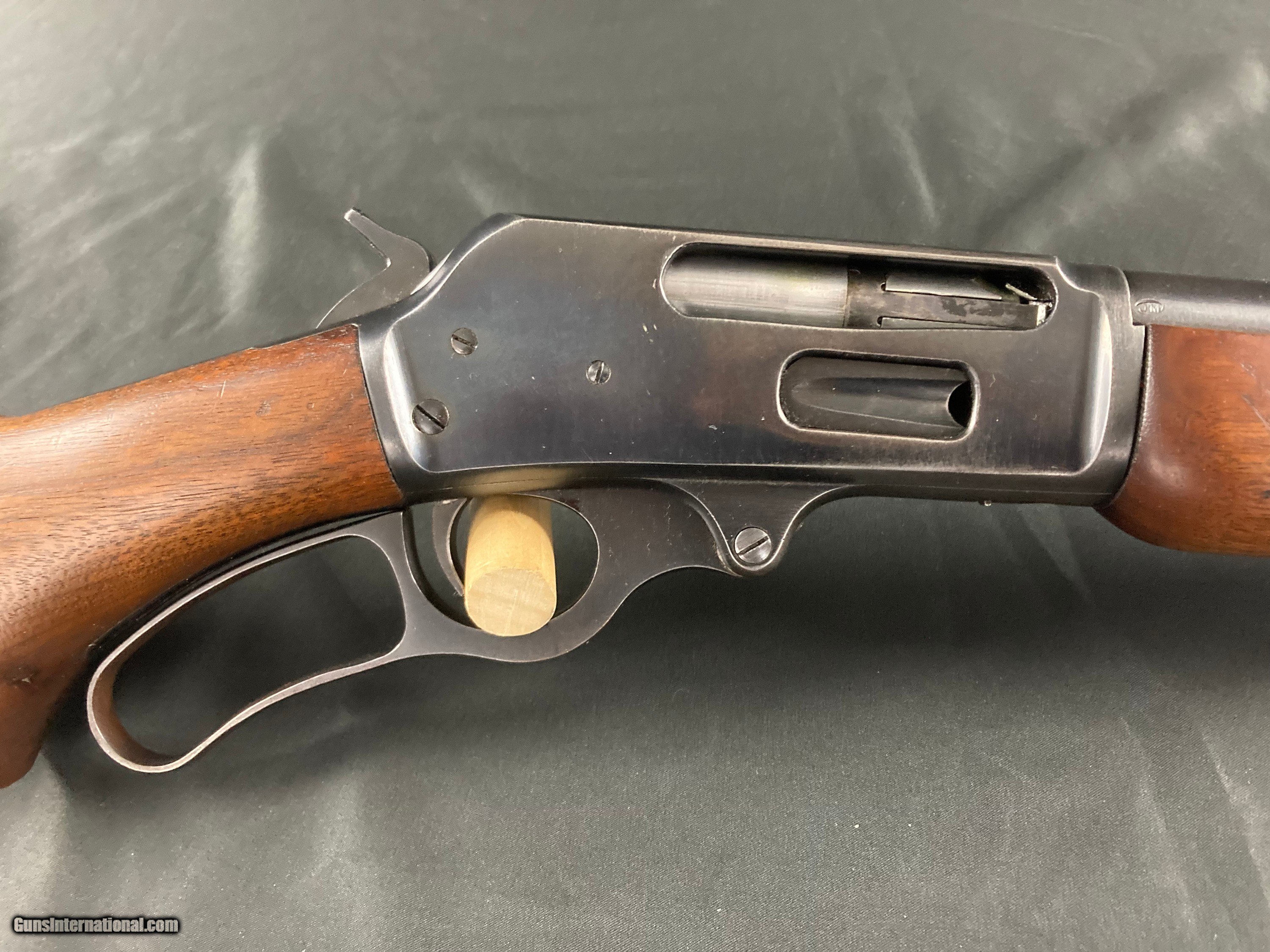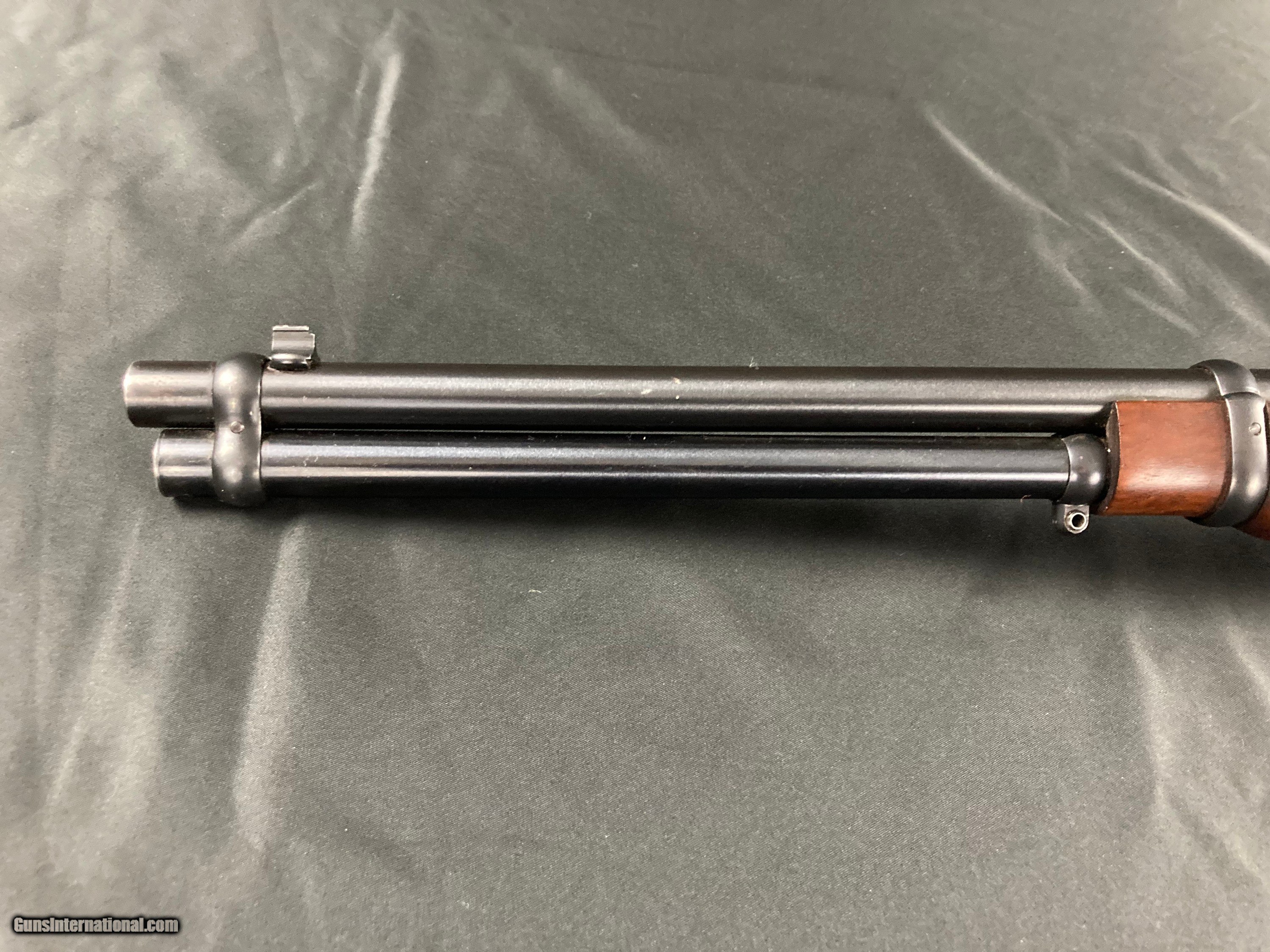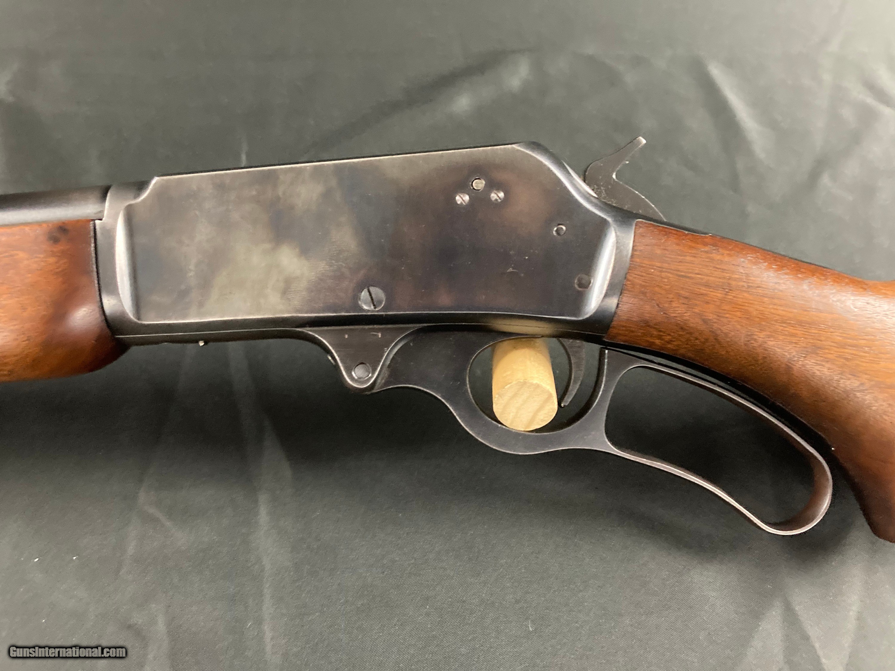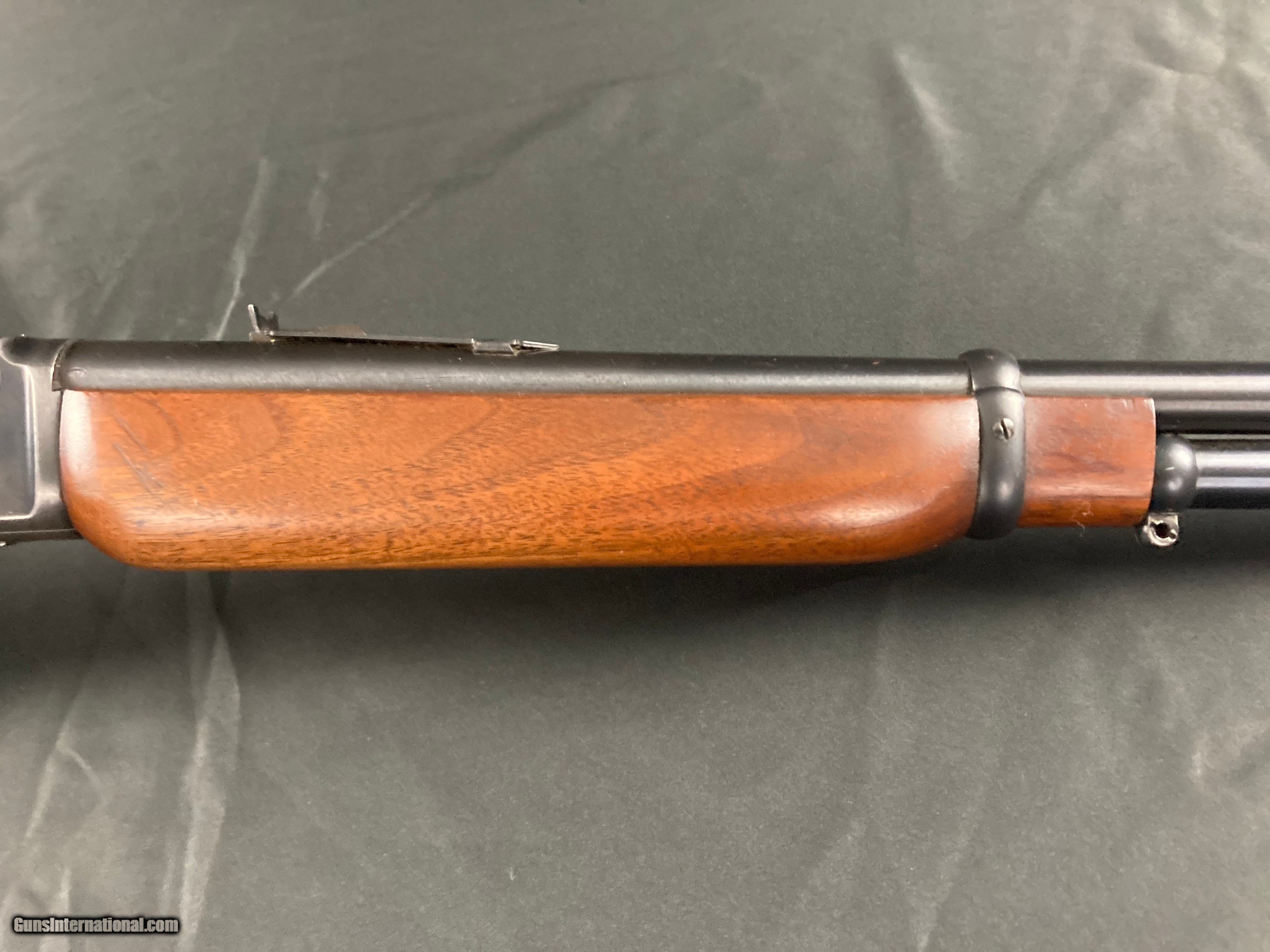 Description: Early first model not drilled for scope, 20" barrel, all original except for swivel nubs added, excellent bore and action, 90% blue, slight edge wear and some blue wear on the bottom of the receiver, excellent wood SOLD Rifle Caliber: .30-30 Winchester |