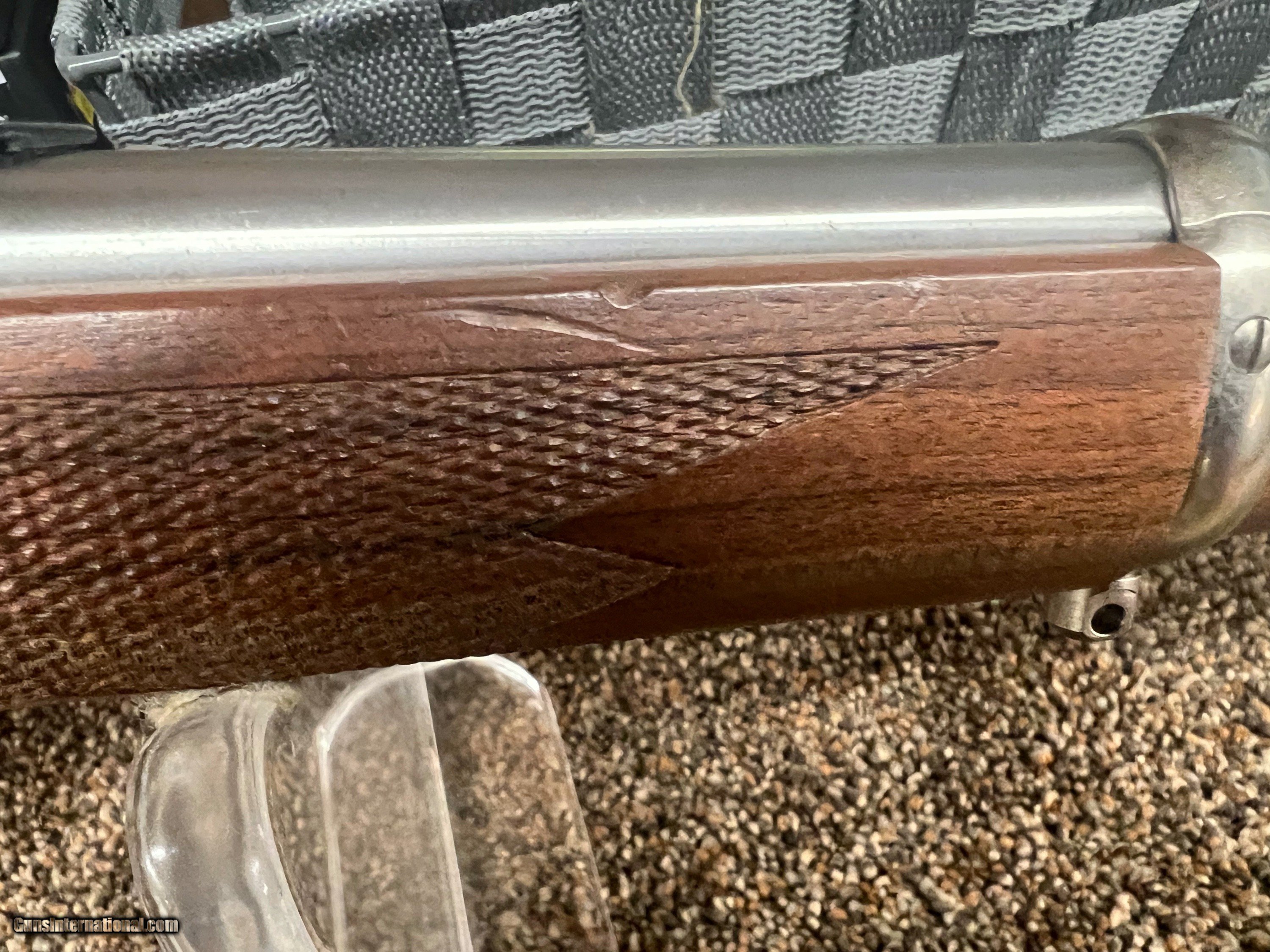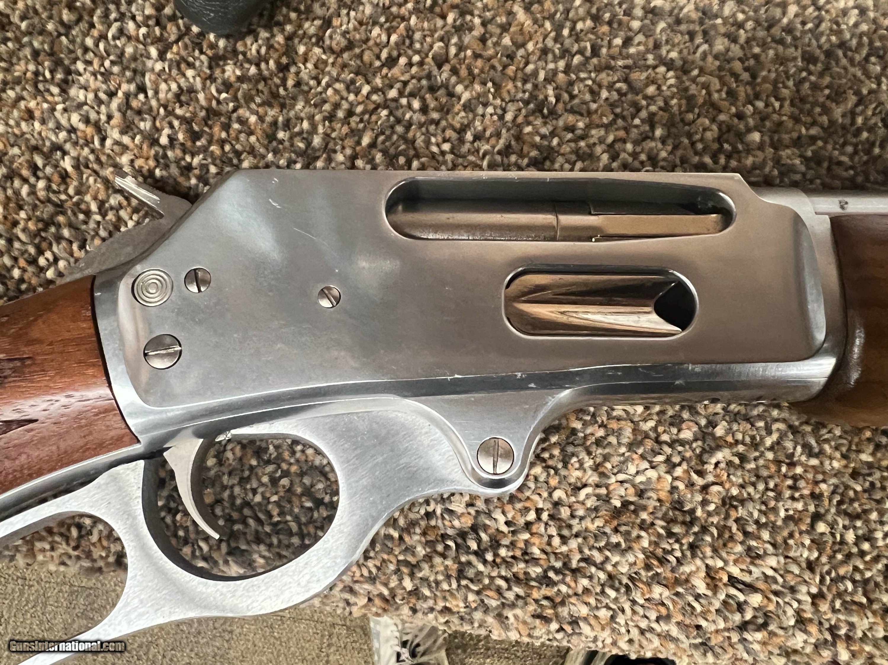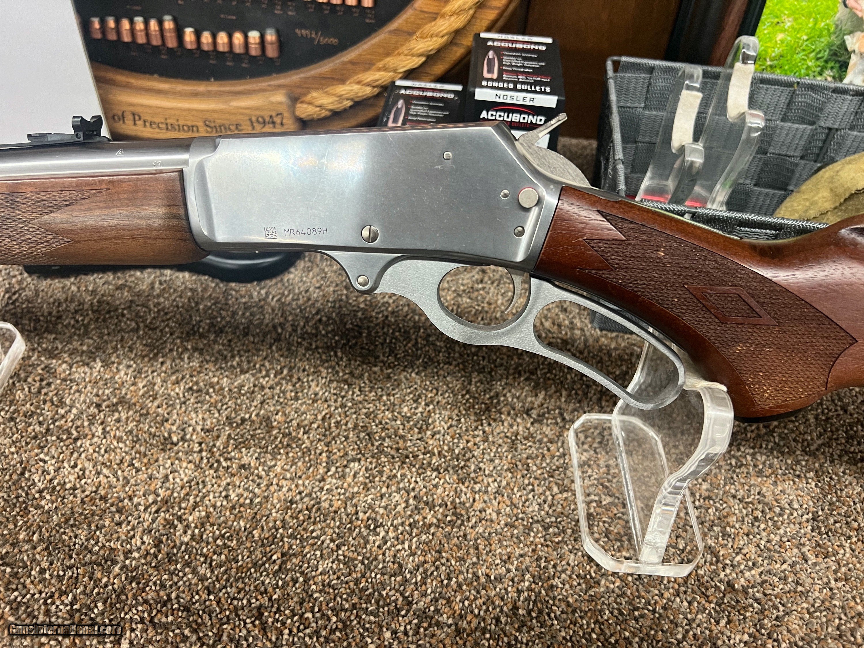 Description: Here's a nice lightly used Marlin 336SS 30-30 win, exc bore, 20" barrel, open sights, impressed checkering, crossbolt safety, Remington marked, does have some light marks on the wood and a few scratches on the receiver as pictured. 60.00 shipping, 2.99% credit card fee, PA residents add 6% sales tax. SOLD Rifle Caliber: .30-30 Winchester |