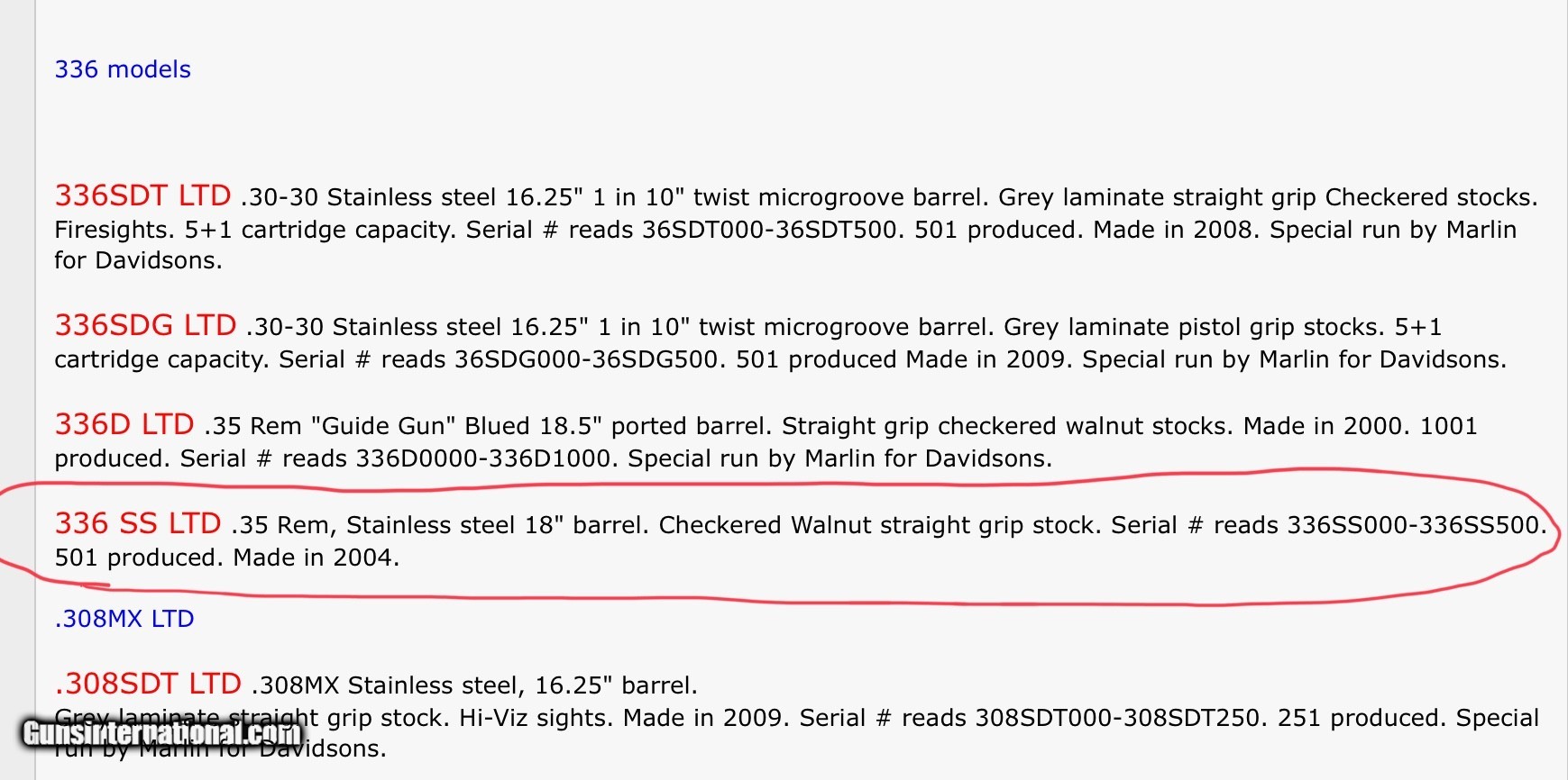 MARLIN 336 SS LTD-35 Remington-LNIB