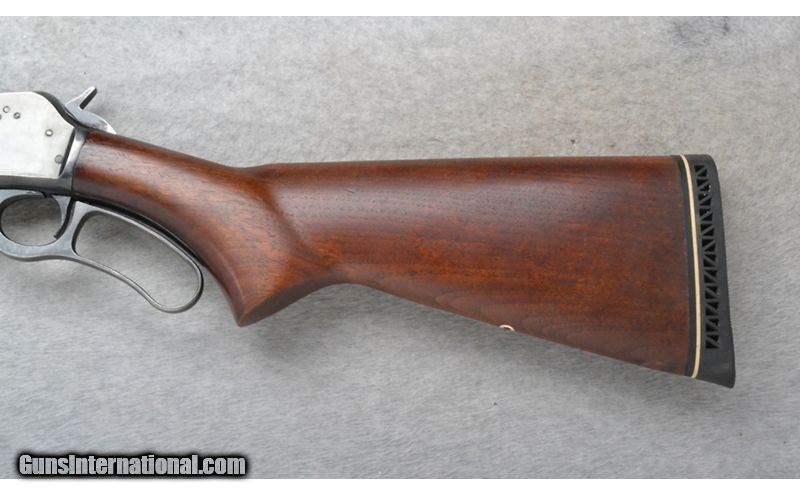 Description: This Marlin Model 336A is a right hand lever action repeating rifle in .30-30 Win. Cal. It has a 24 inch barrel. A blade front sight and an adjustable notch middle sight. The butt stock is a smooth grip walnut pistol grip. The forearm is a smooth grip walnut with a steel cap. S/N H14015 (1951). .30-30 Winchester SOLD Curio/Relic: Yes Chambers: Tube magazine. Metal Condition: Good. Has some light blue wear. Wood Condition: Good. Minor handling marks and minor wear. Bore Condition: Excellent. Barrels: 24 inch. Stock Dimensions: LOP 14 inches. Fore End: Smooth grip walnut with a steel cap. Butt Pad: Pachmayr White Line rubber recoil pad. Weight: 7 lb. 4 oz. Sights: Raised blade front. Adjustable notch middle. Item Location: Richfield, WI |
