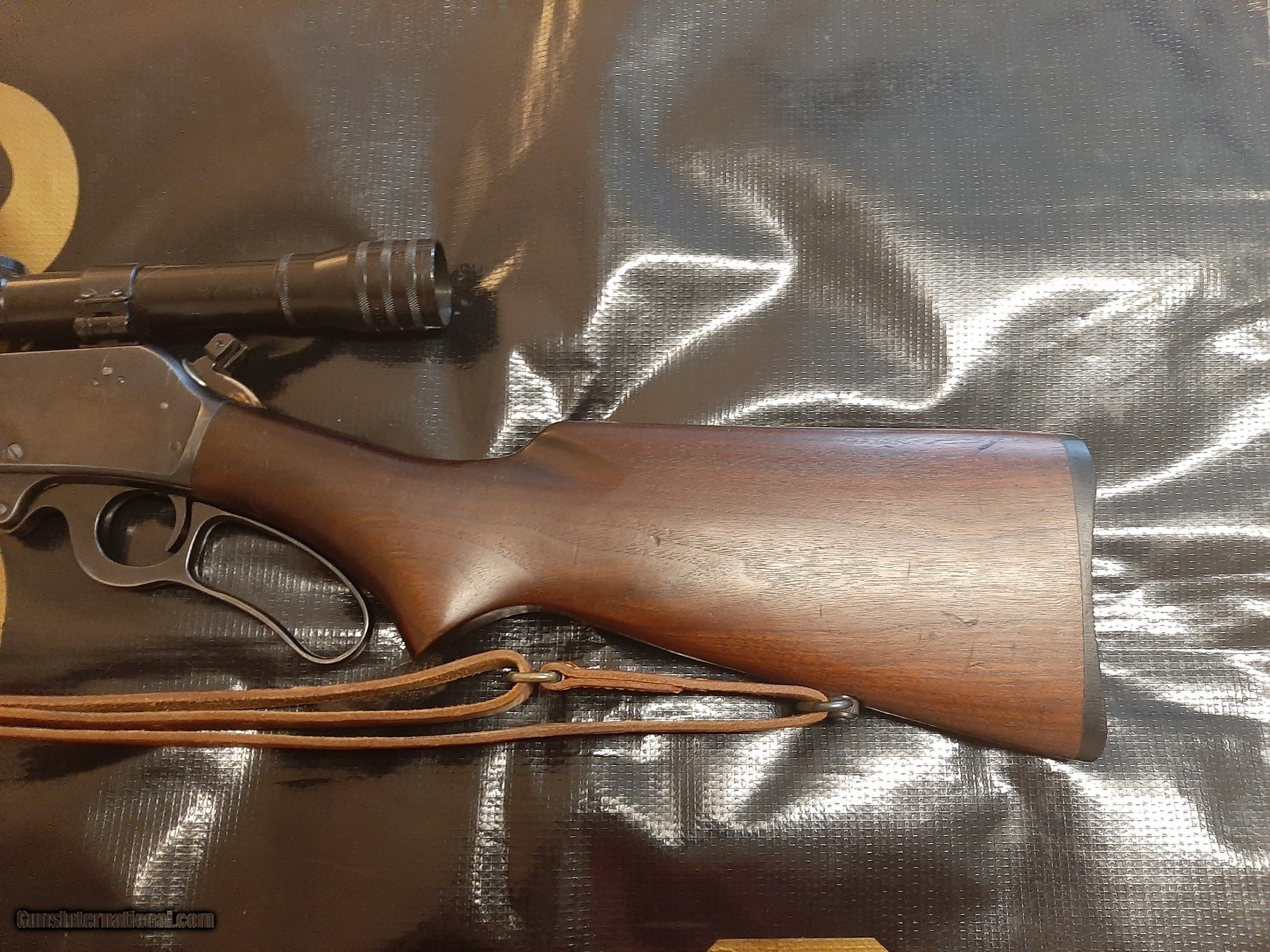 Description: Marlin 336RC 30-30 that comes with 4X Kollmorgen scope with fine crosshairs. It is JM Stamped serial number E 405XX. Missing rear sight, last owner started a checkering pattern but gave up quickly, thankfully. Credit Cards add 3%. Shipping and Insurance is 65.00. SOLD Rifle Caliber: .30-30 Winchester |